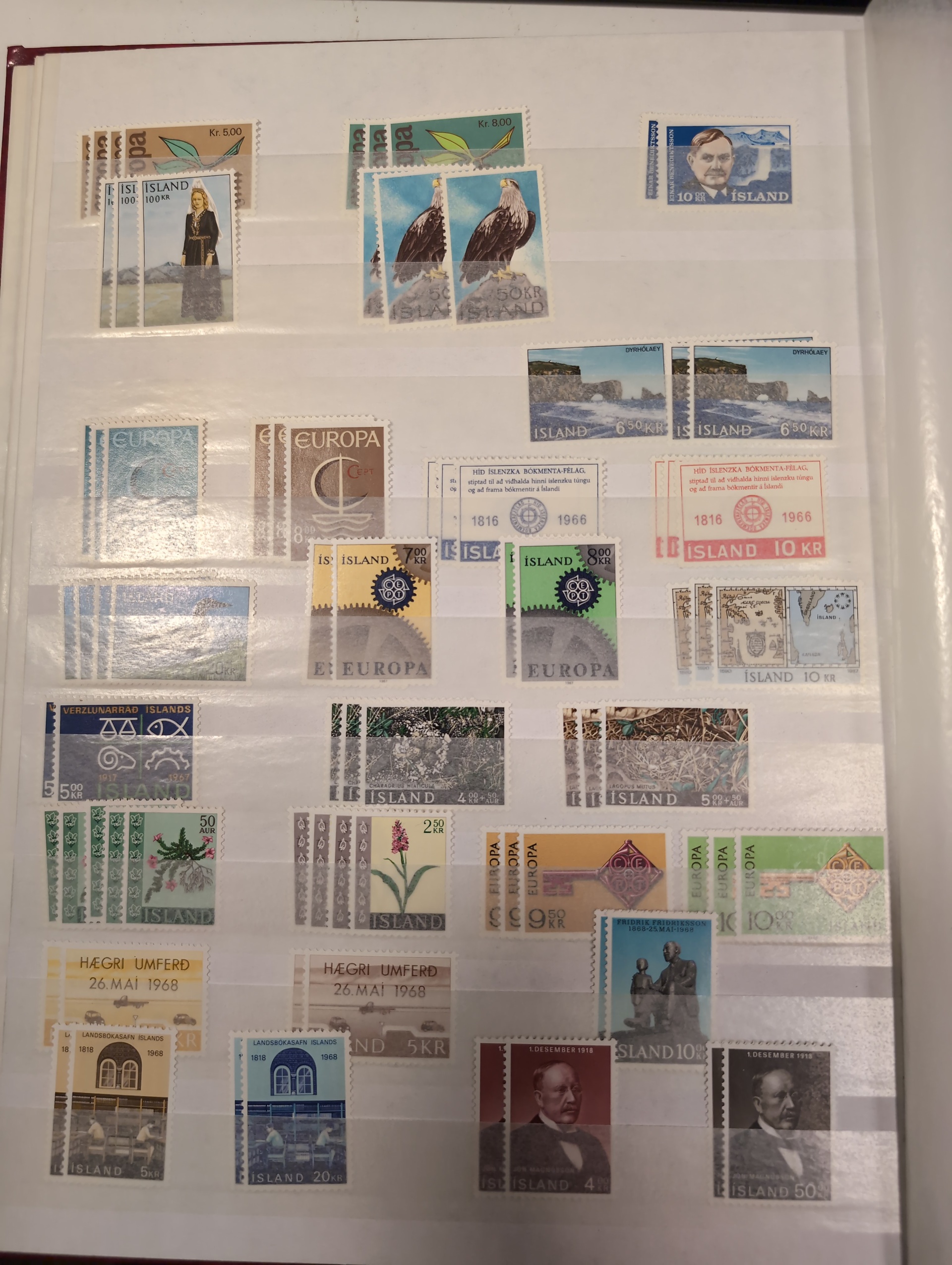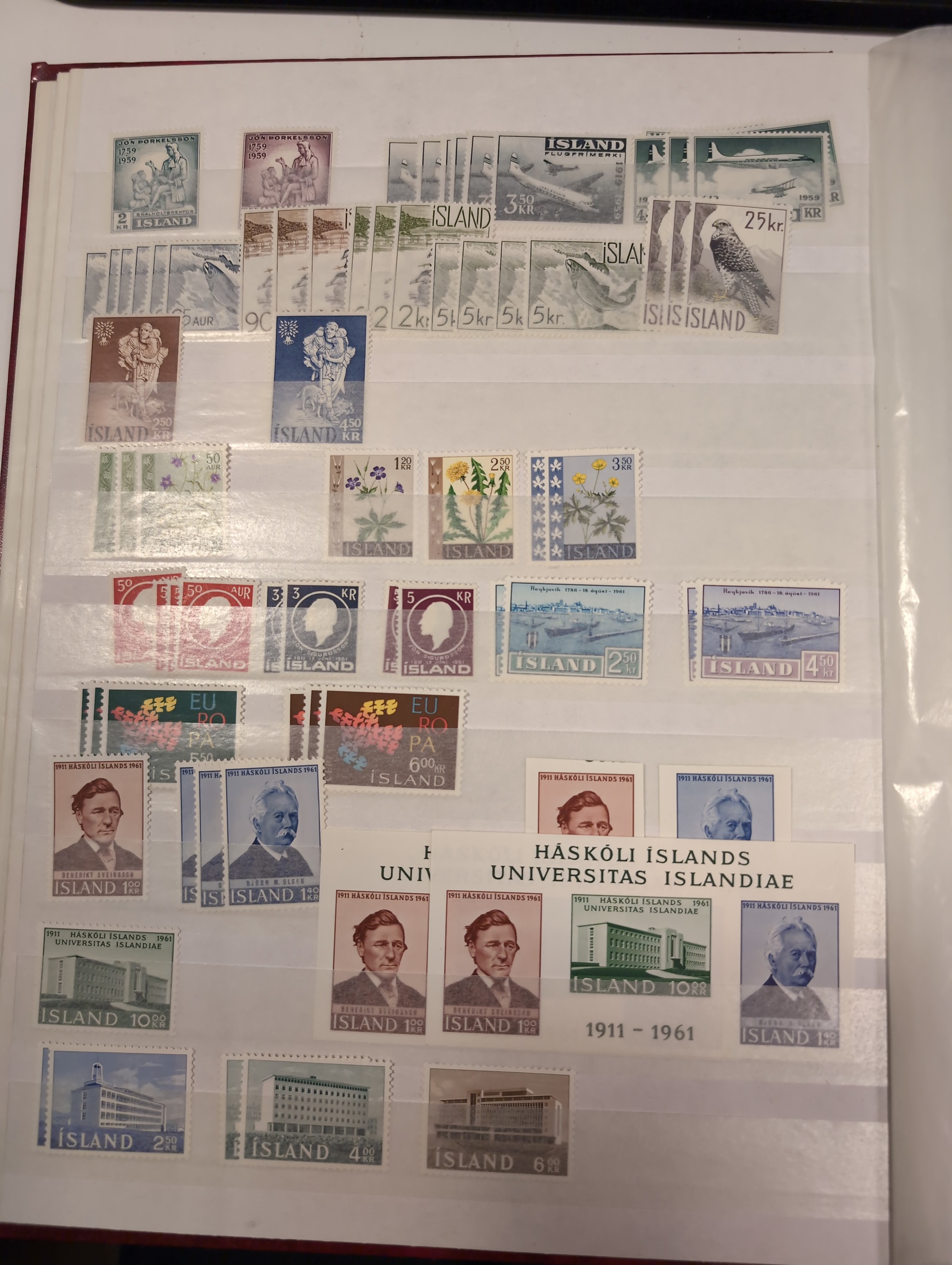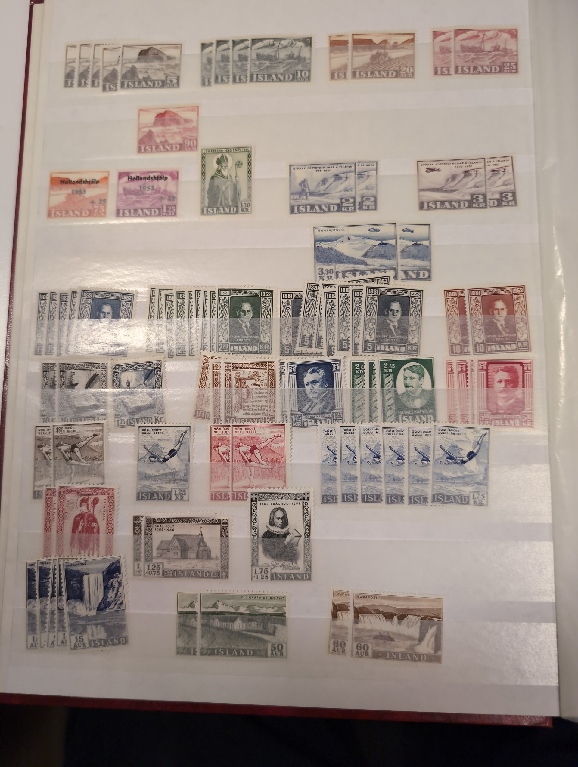 Iceland. Accumulation ★★ 1950s–1998 in three albums. One visiralbum and two stockbooks with mint never hinged stamps. incl some better sets from the 1950s. Please see a selection of scans at www.philea.se. Mostly fine quality. (1000)
