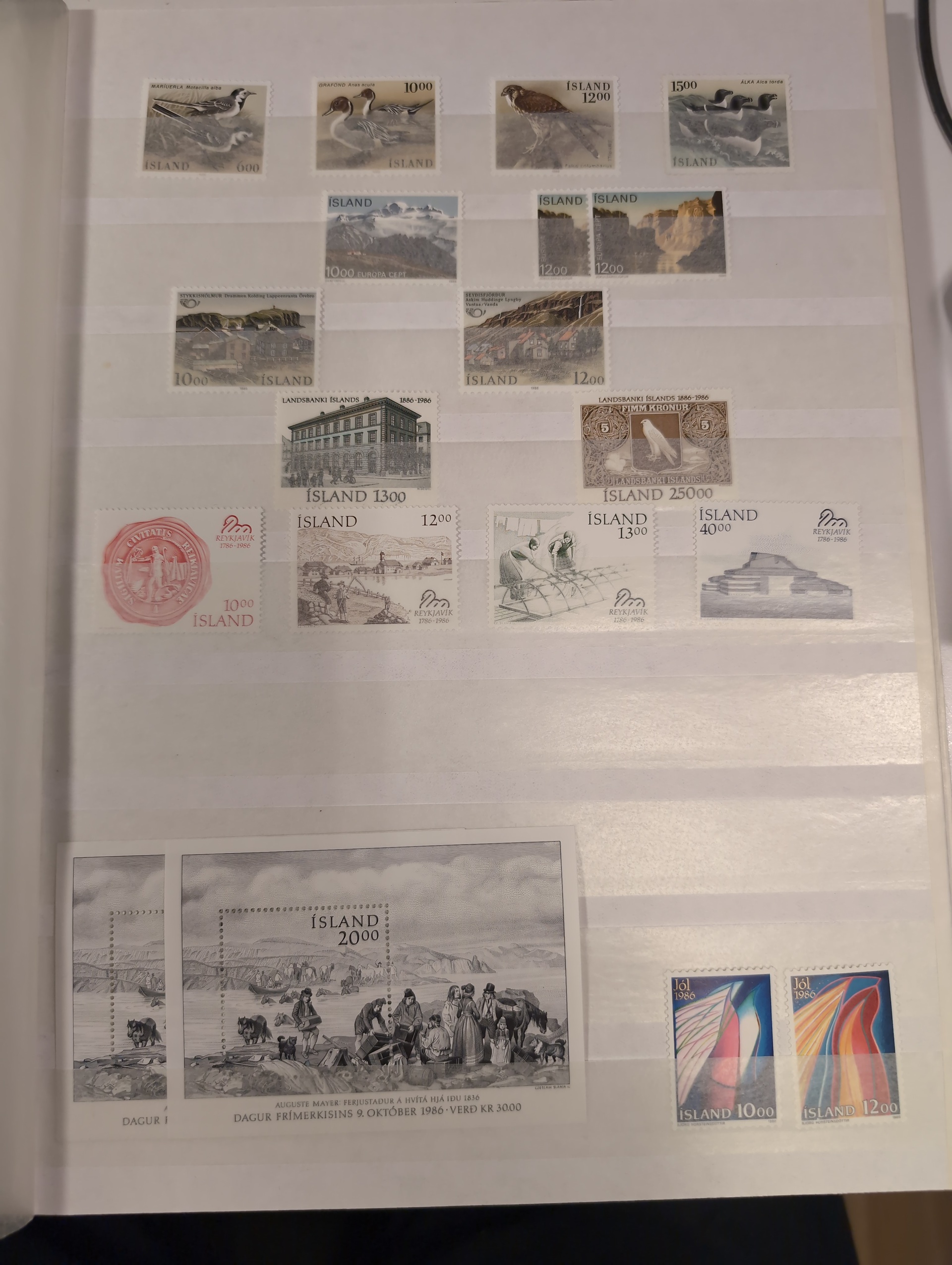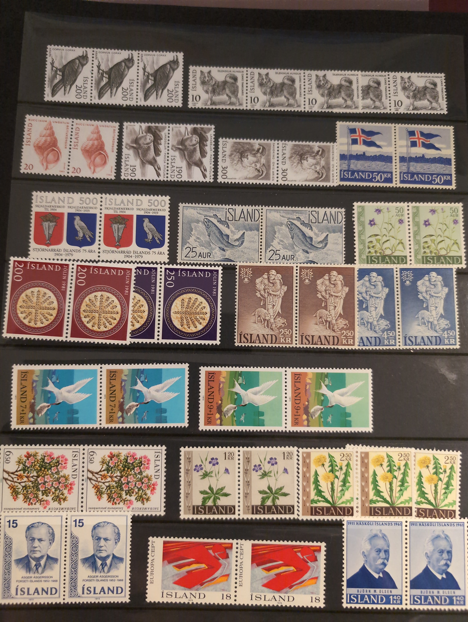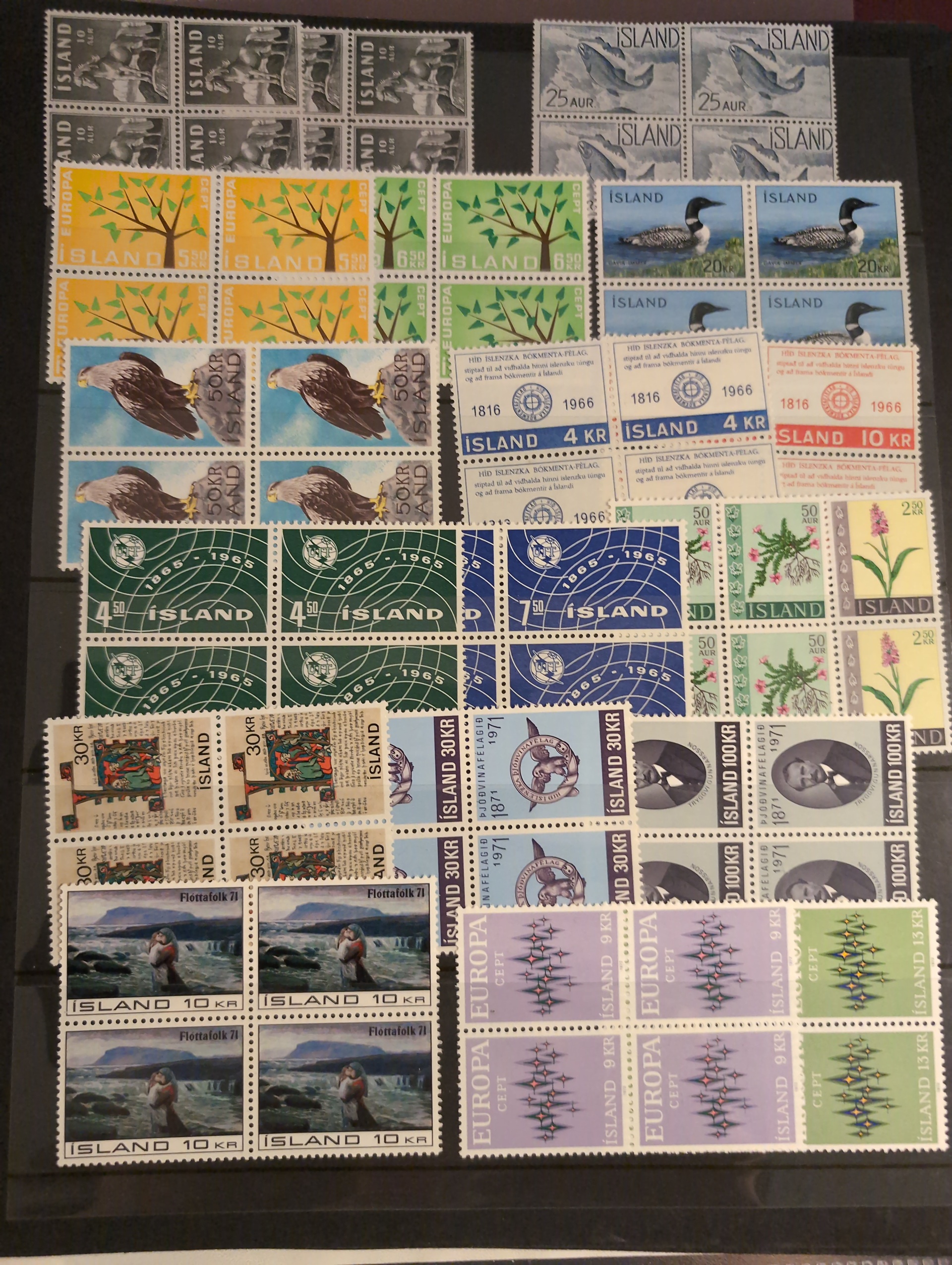 Iceland. Accumulation ★★ 1950s–1998 in three albums. One visiralbum and two stockbooks with mint never hinged stamps. incl some better sets from the 1950s. Please see a selection of scans at www.philea.se. Mostly fine quality. (1000)