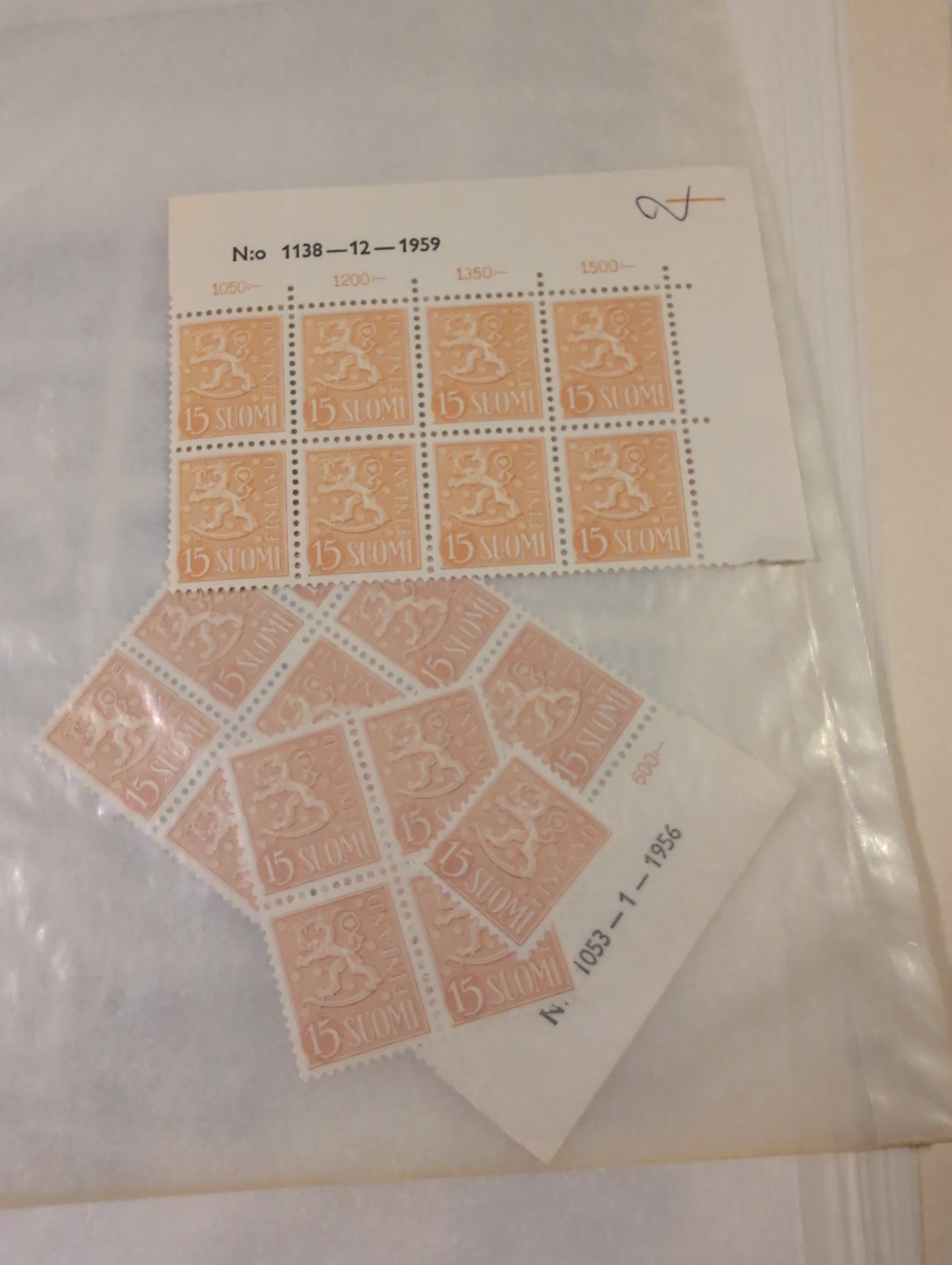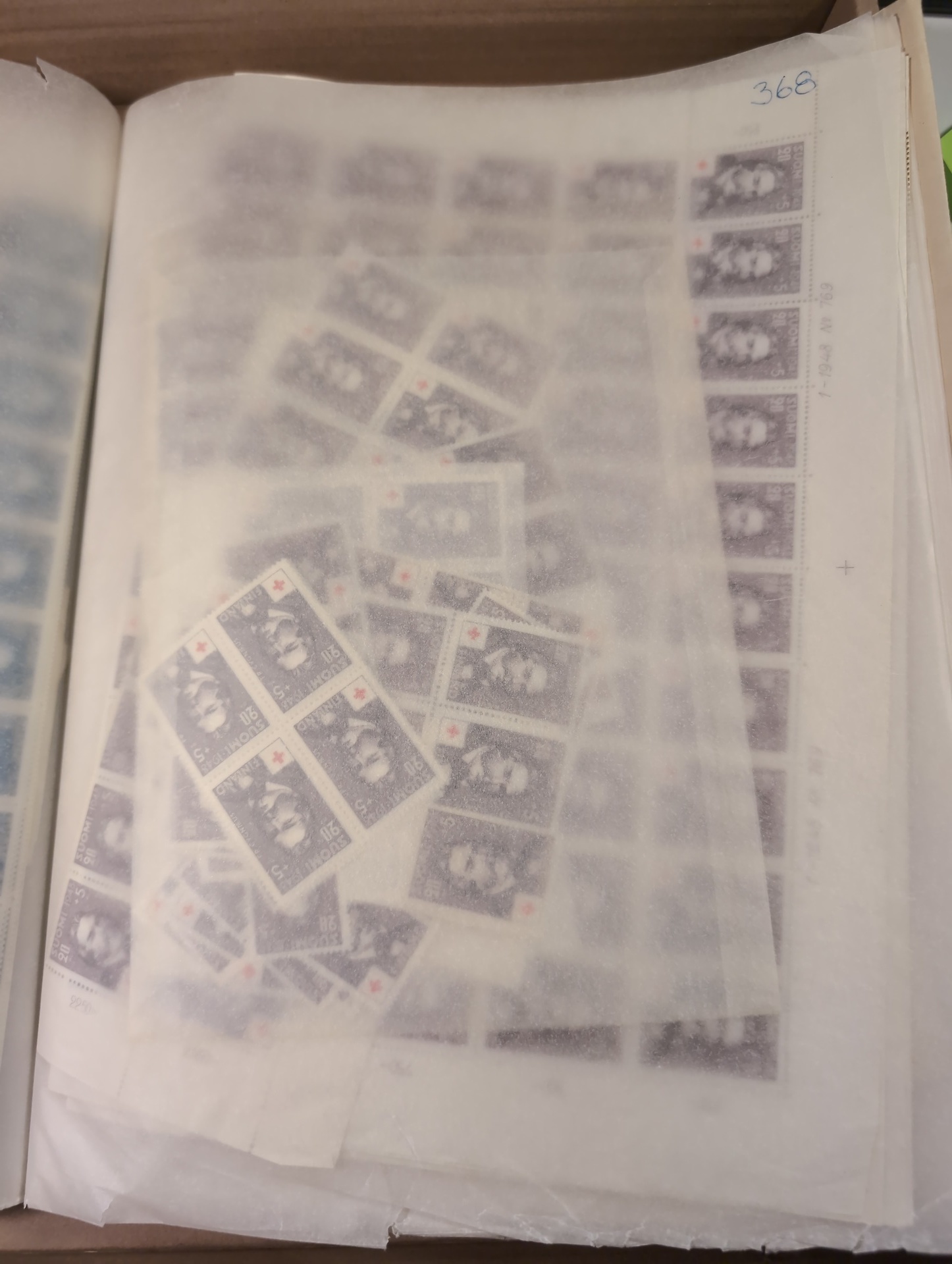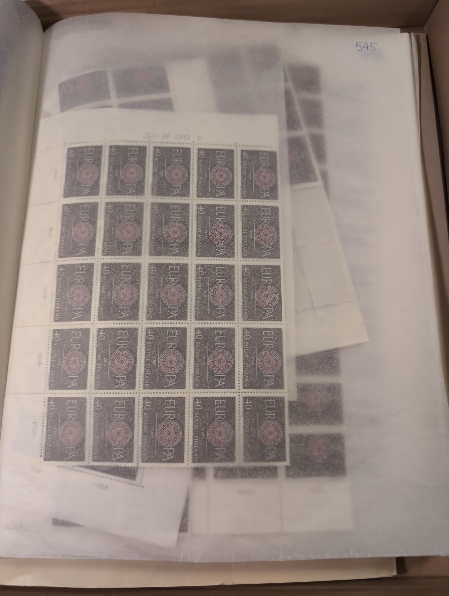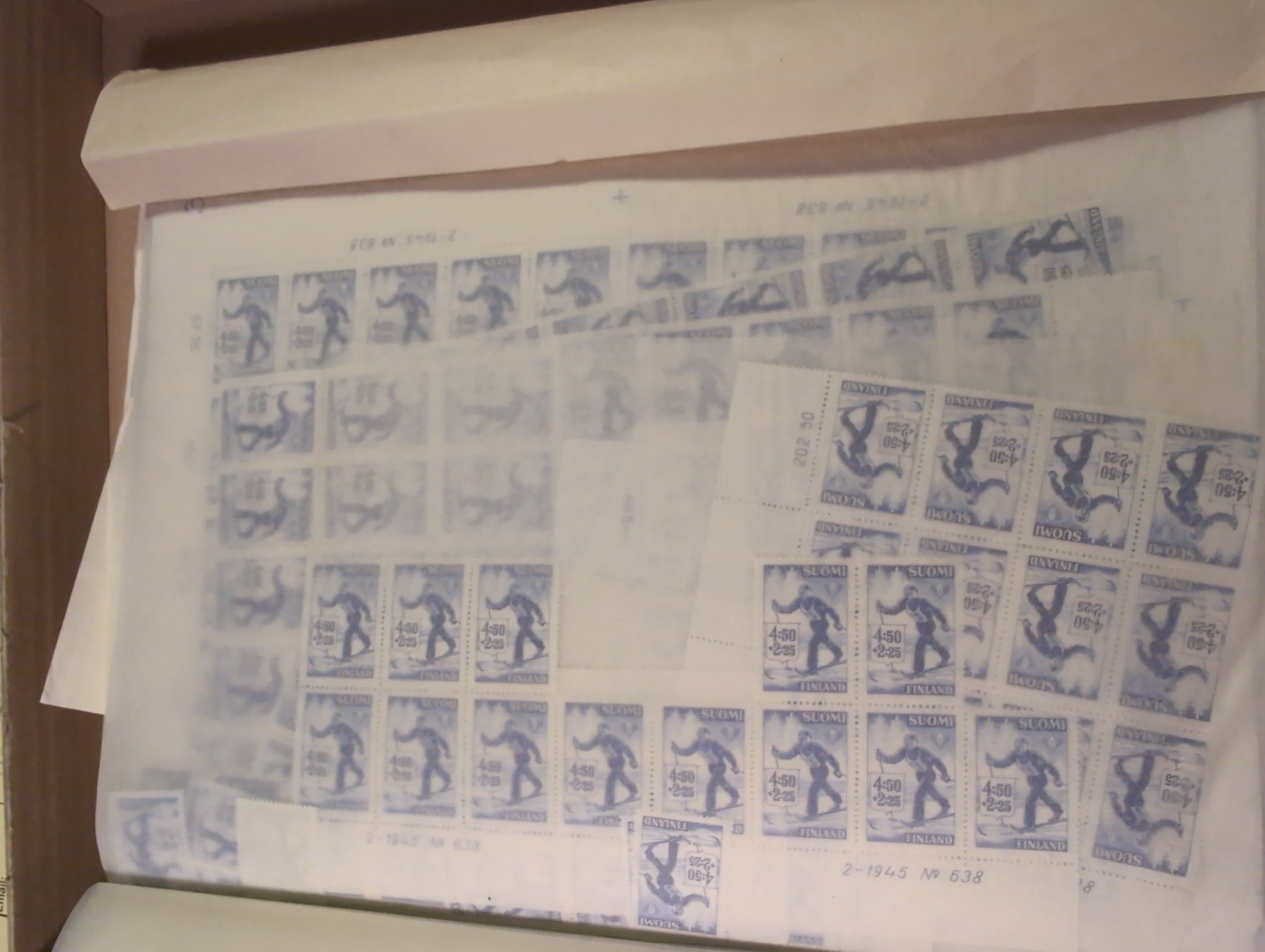 Finland. Accumulation ★★ 1944–1976 in box. Dealers stock Norma 302//579, 770//813, in sheets and parts of sheets incl. some better definitives. Huge cat value. Please see a selection of scans at www.philea.se. Mostly fine quality. Approx. 14 kg. (many 1000s)