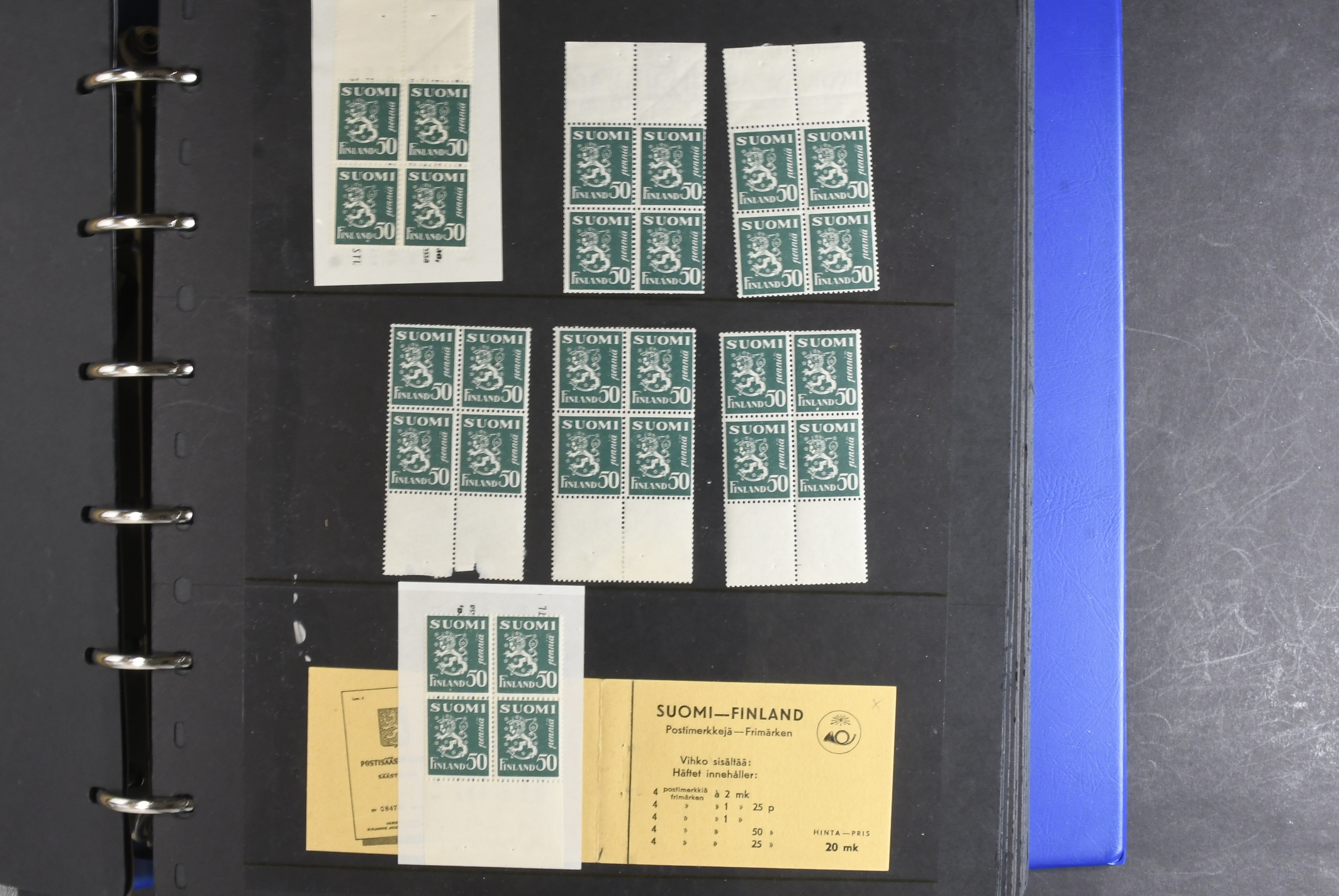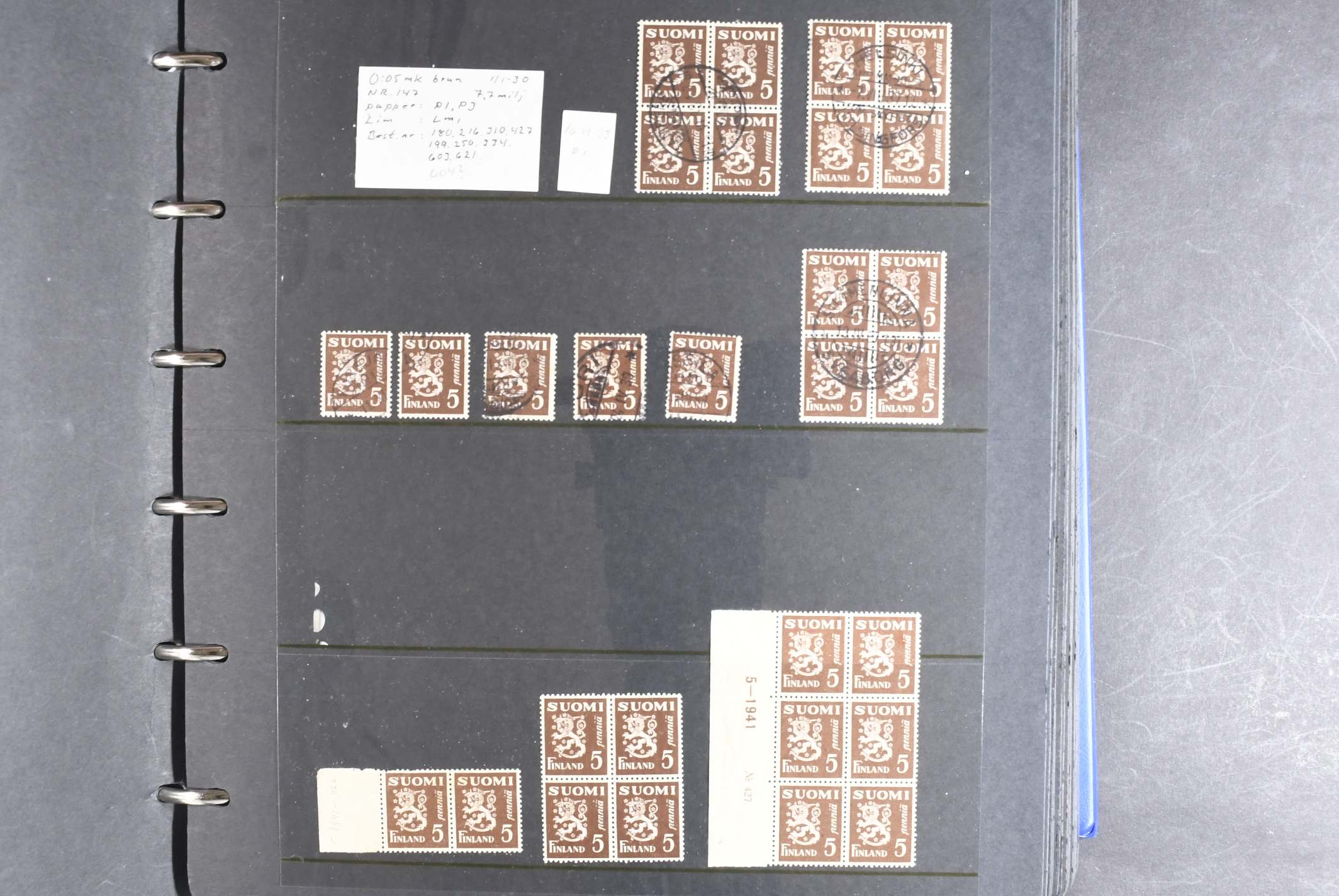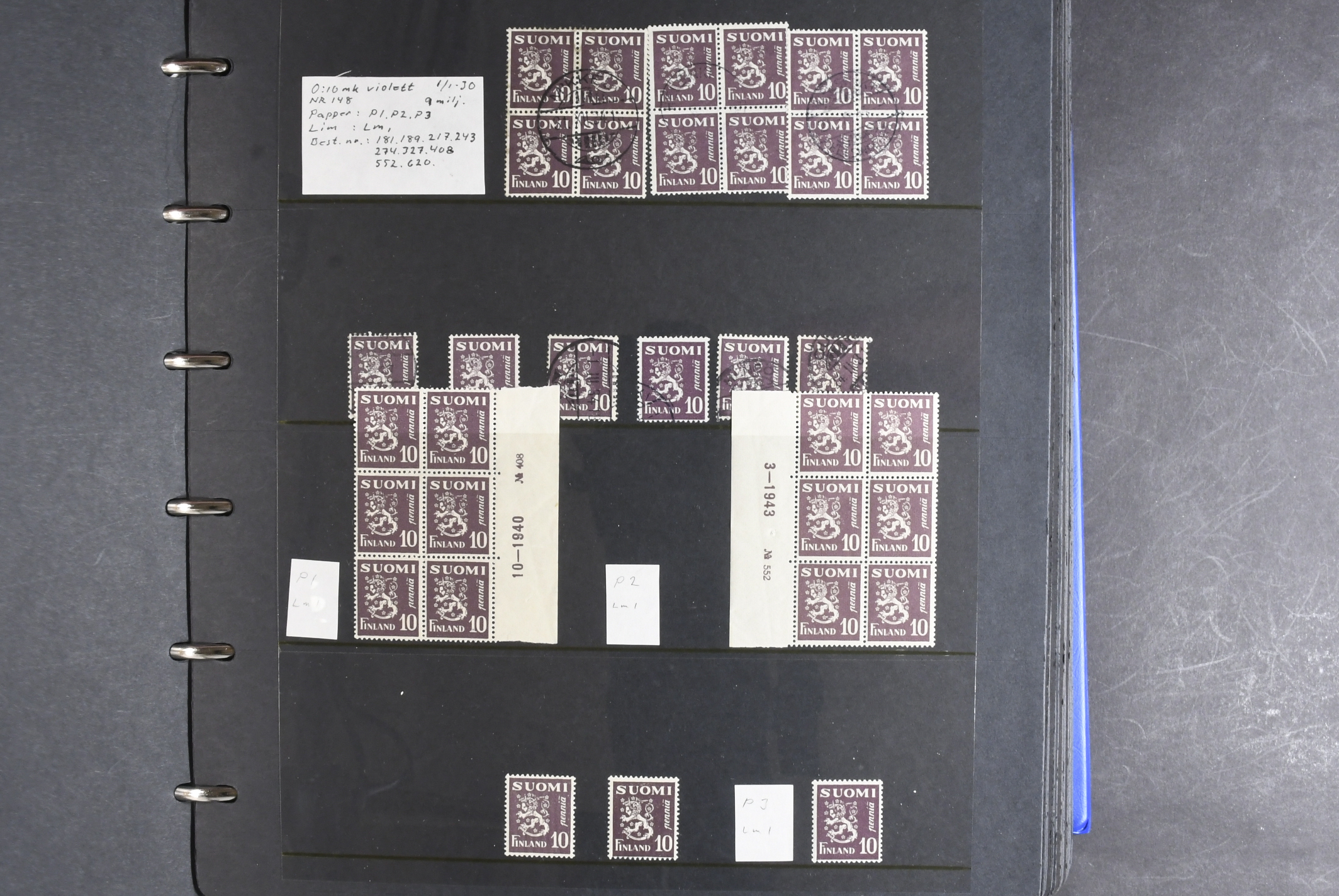 Finland. Collection/accumulation ★★/⊙ 1930–1952 in album. Definitive series II. Different designs m/30. Study material. Includes paper varieties, single stamps, blocks, booklets, different cancellations and more. Also a number of postal documents, and pieces thereof, in the album. Fine quality. (>1000)