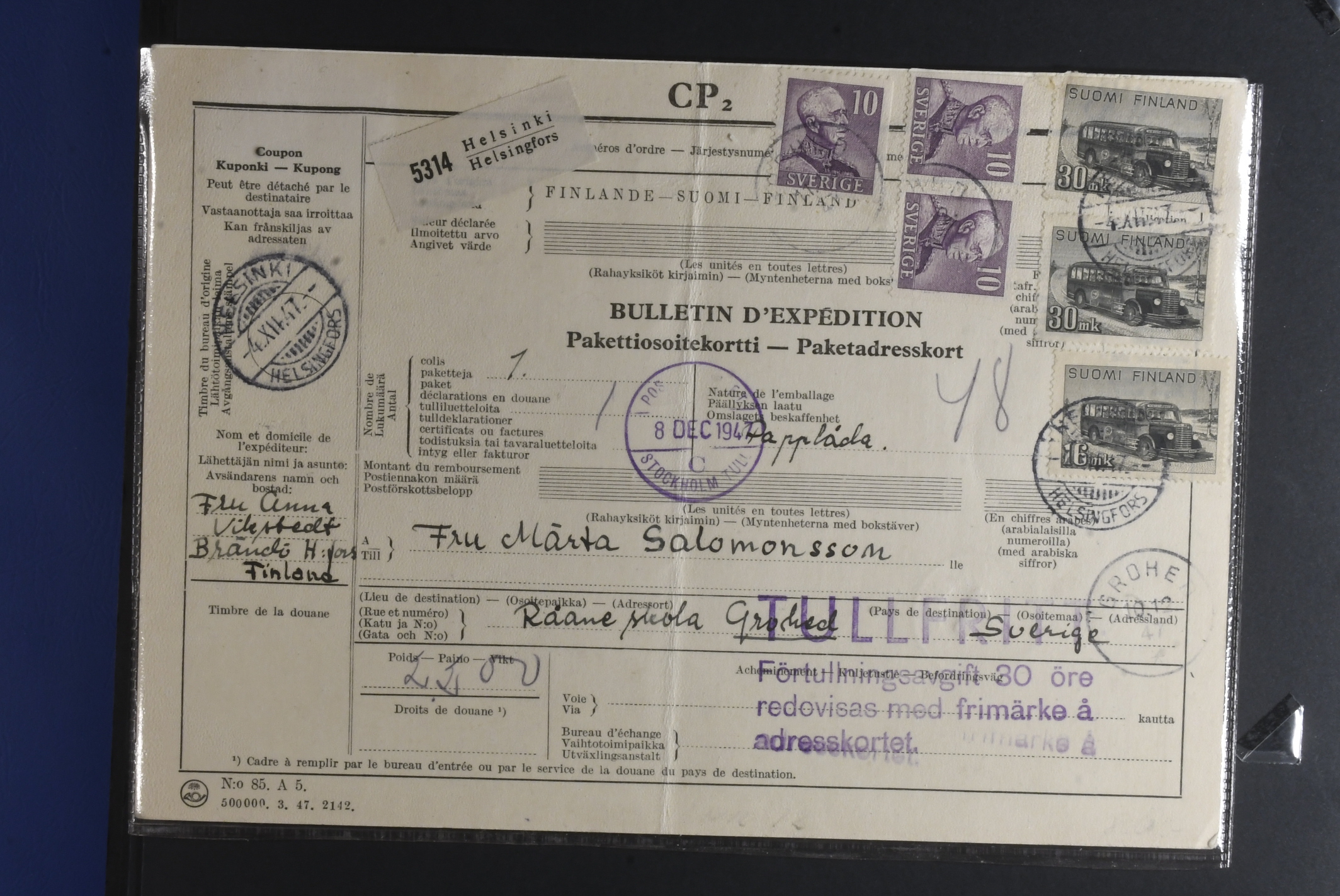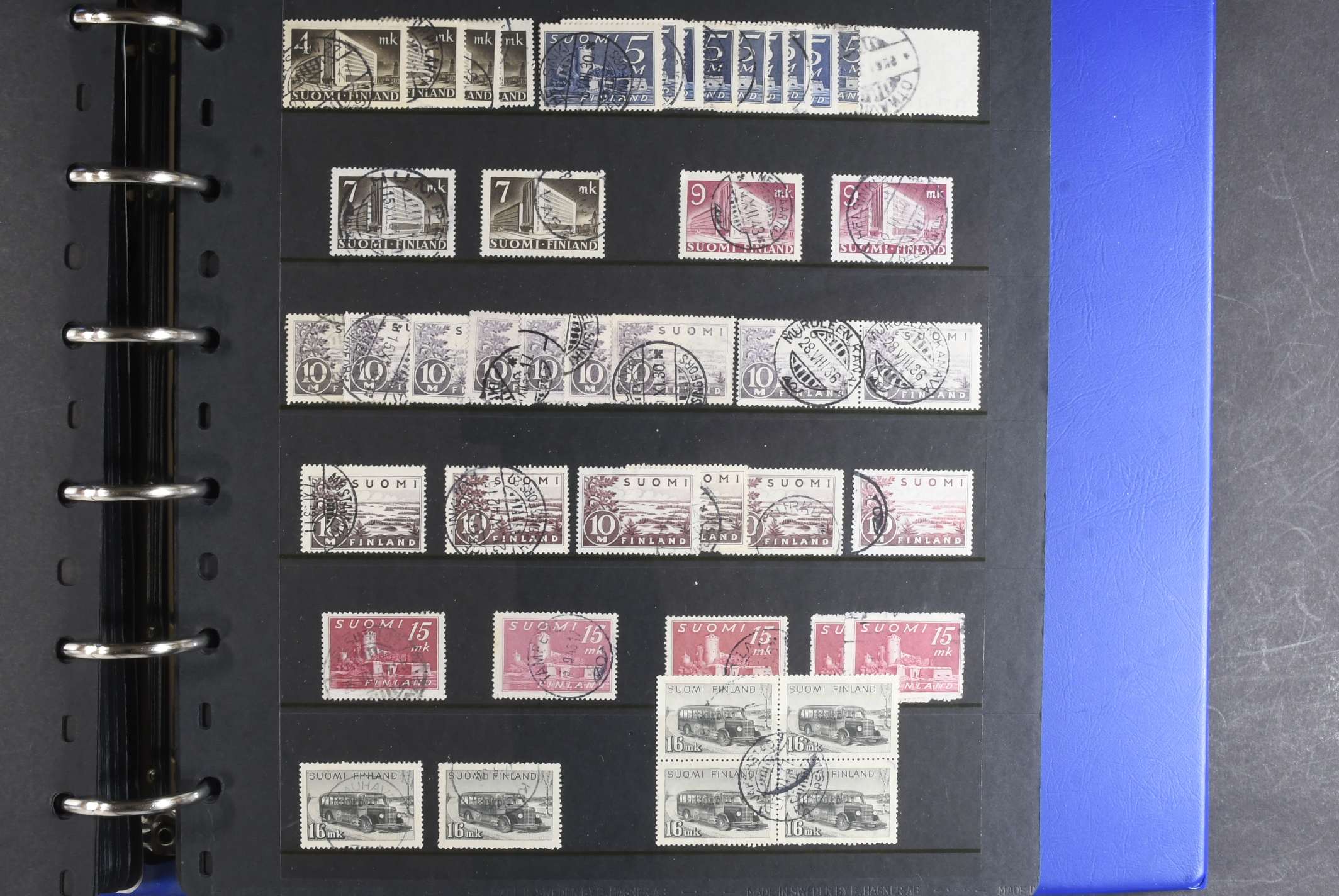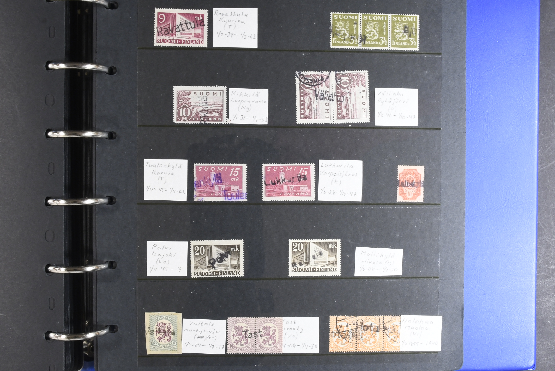 Finland. Collection/accumulation ★★/⊙ 1930–1952 in album. Definitive series II. Different designs m/30. Study material. Includes paper varieties, single stamps, blocks, booklets, different cancellations and more. Also a number of postal documents, and pieces thereof, in the album. Fine quality. (>1000)