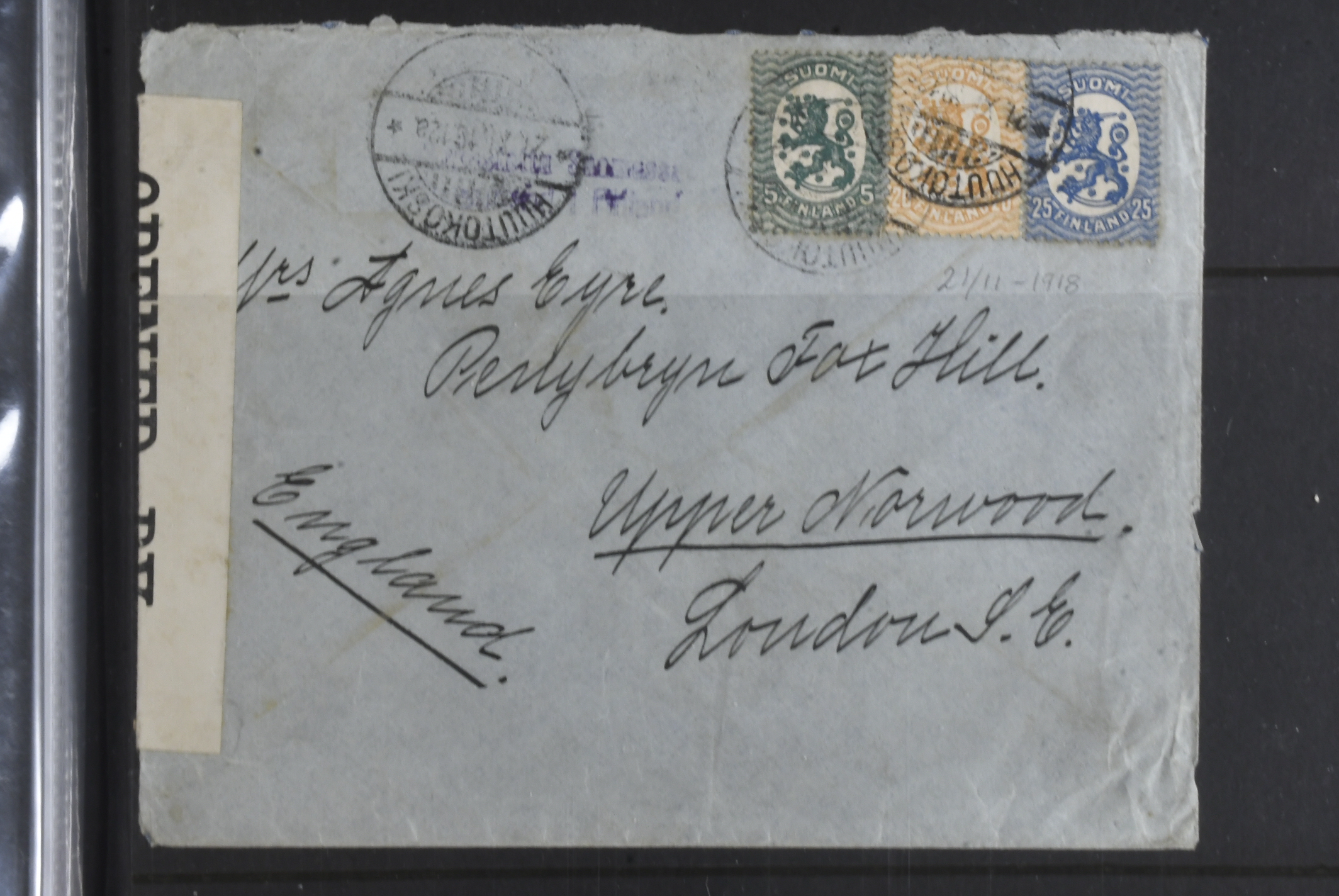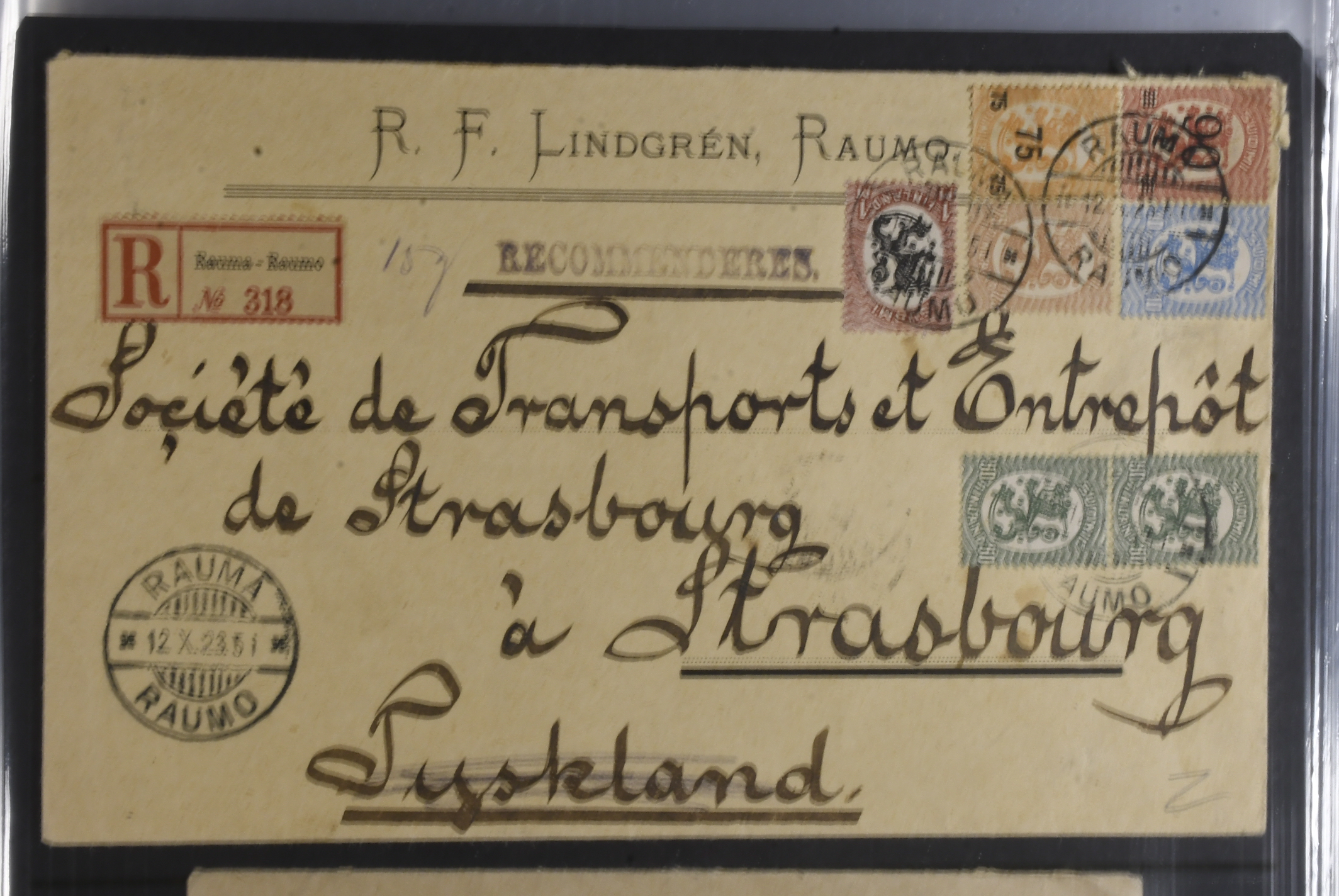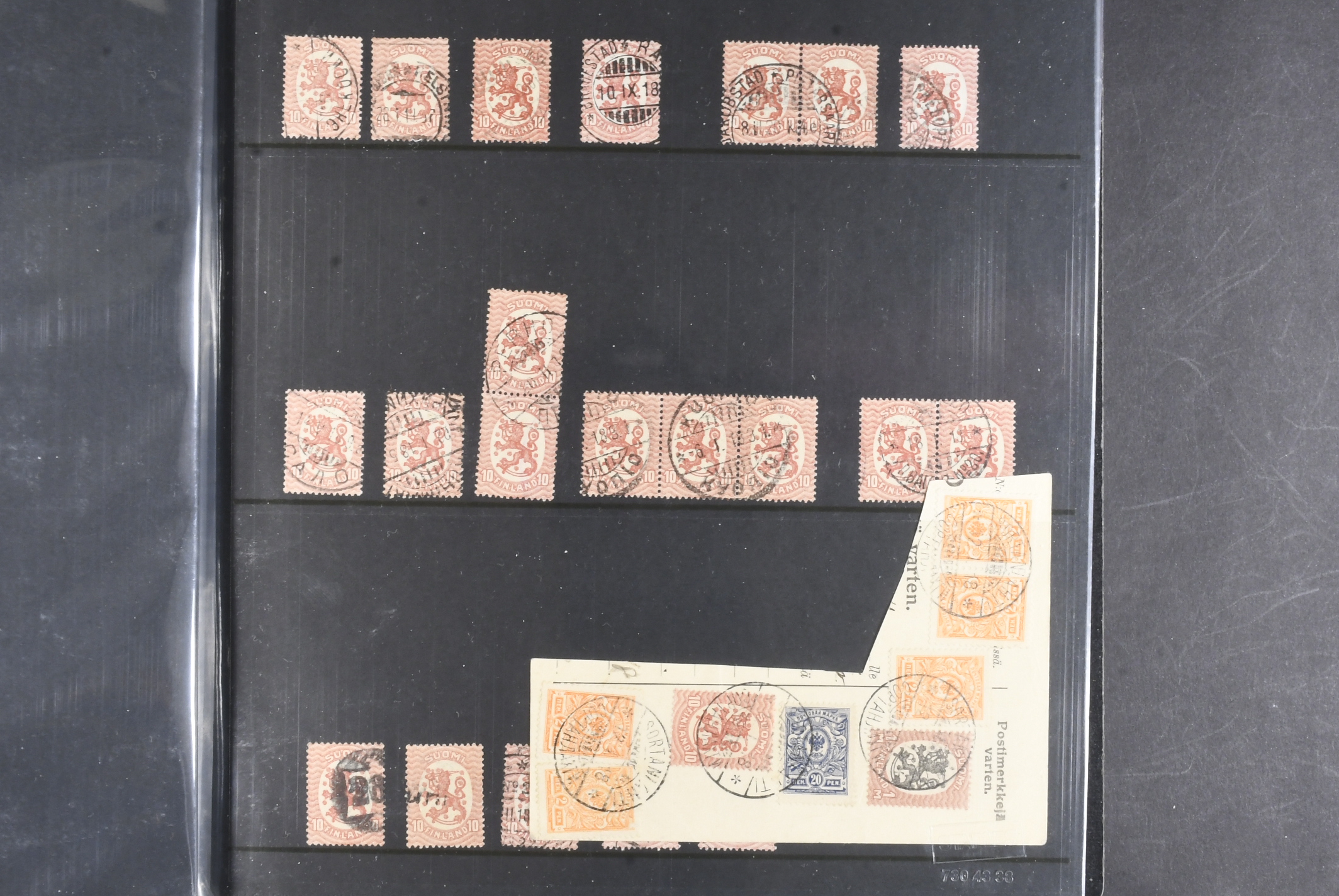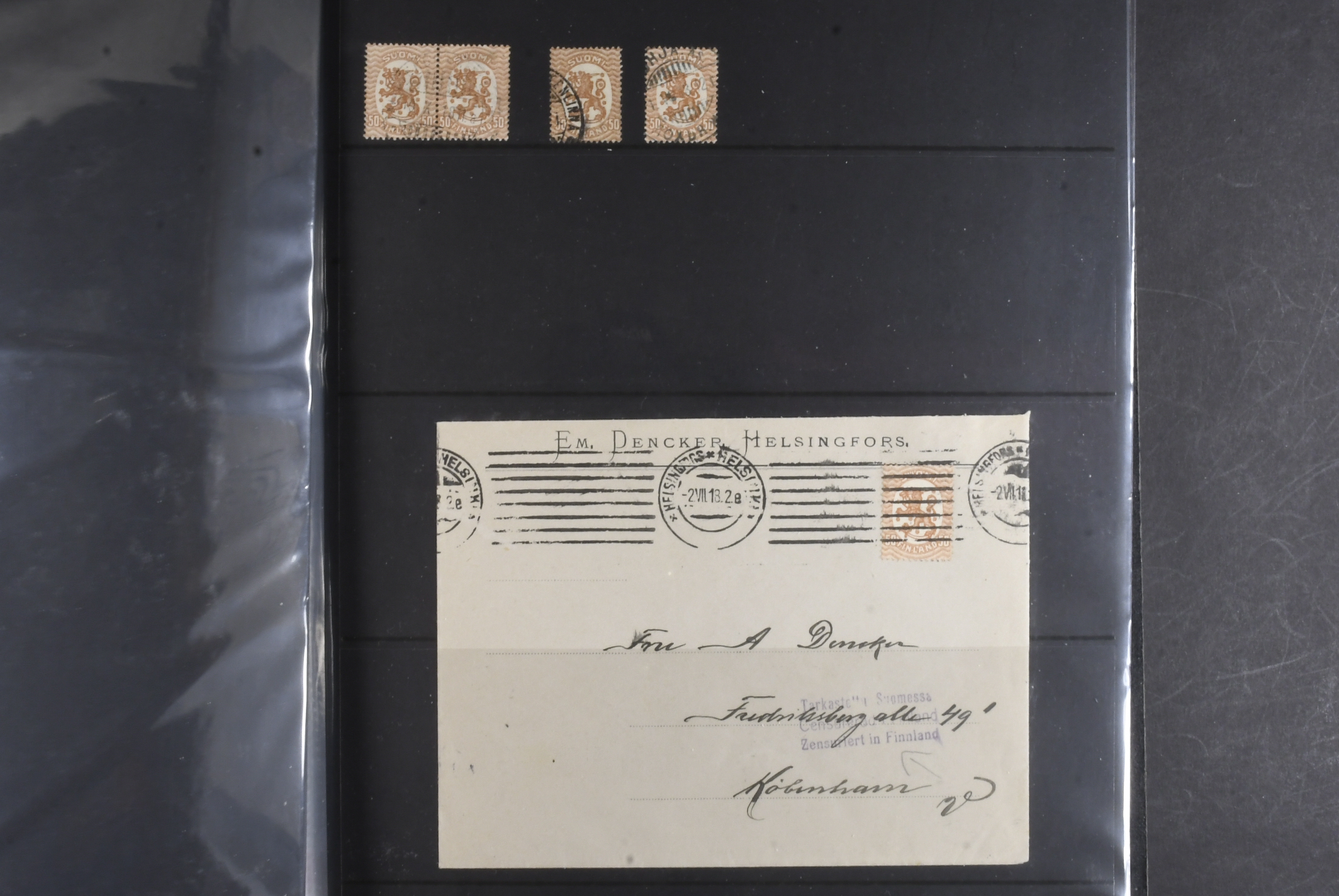 Finland. Collection/accumulation mostly used 1917–1930 in album. "Saarinen Issue" without watermark. Study material incl. single stamps, strips, blocks, etc and with different cancellations. Also a number of letters/covers both domestic and with destinations overseas in the material. Please see a selection of scans at www.philea.se. Mostly fine quality. (>300)