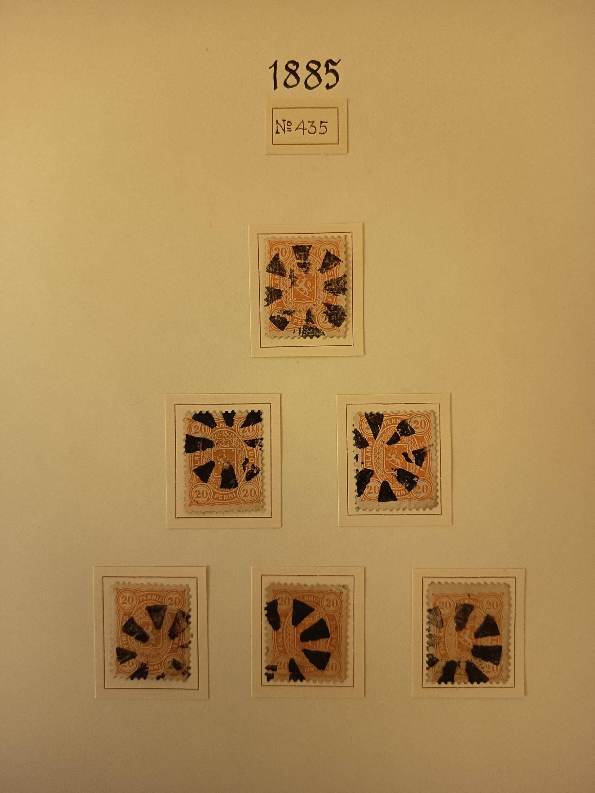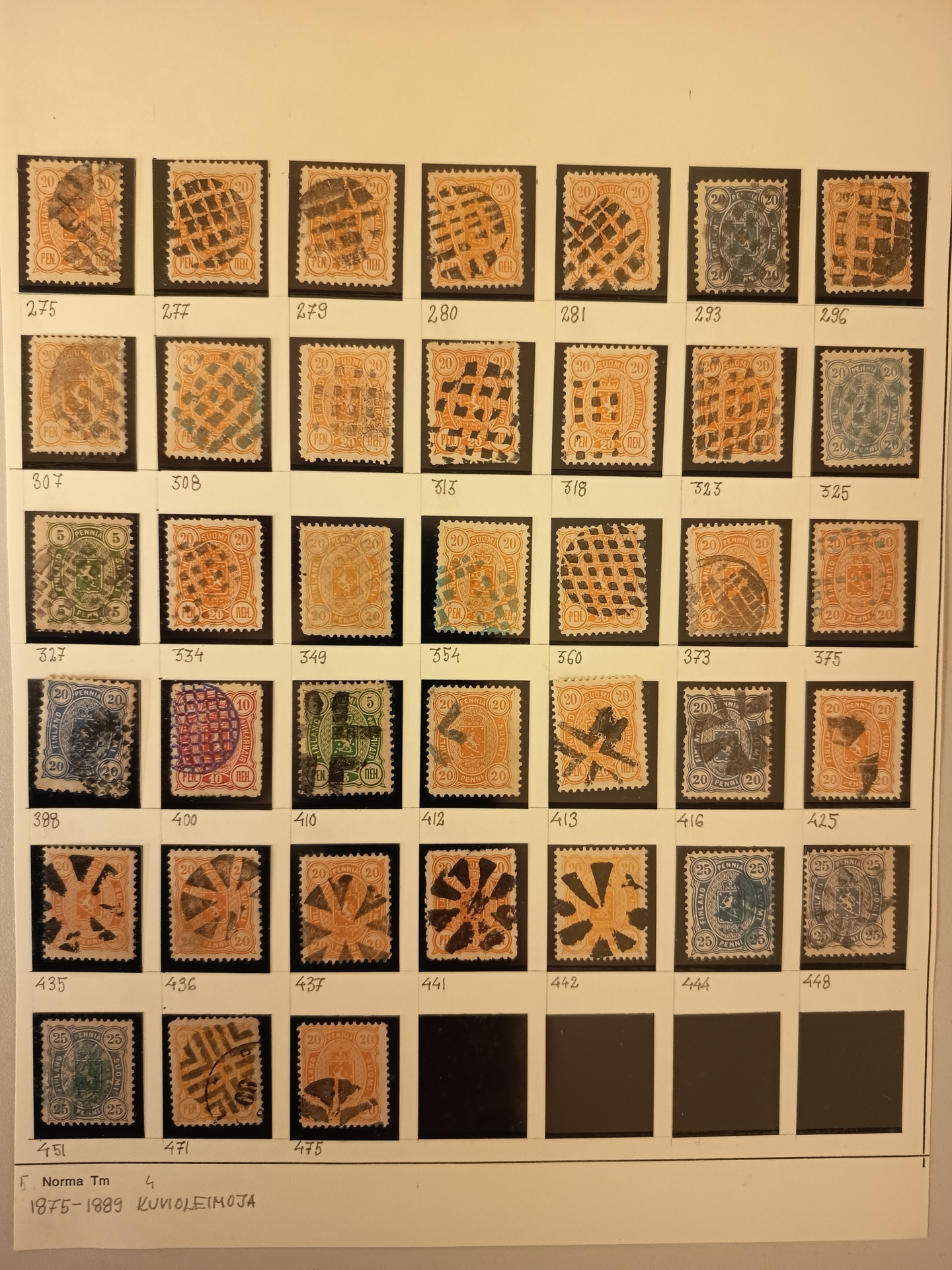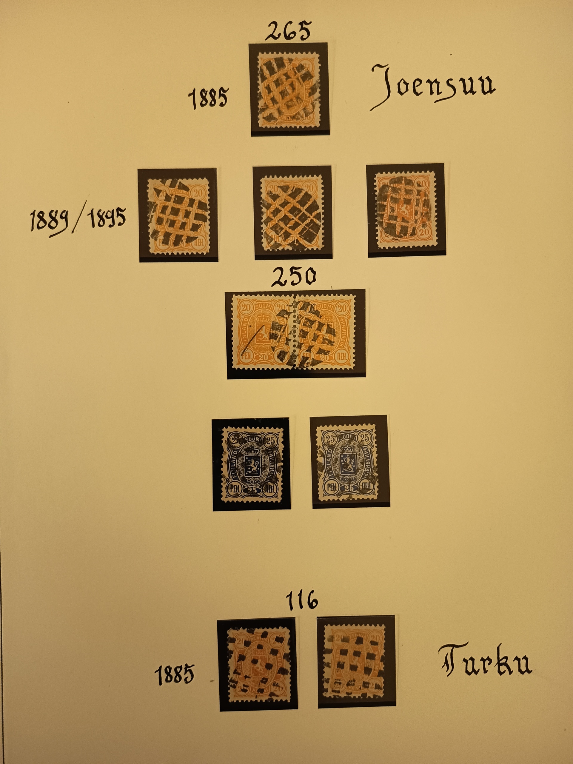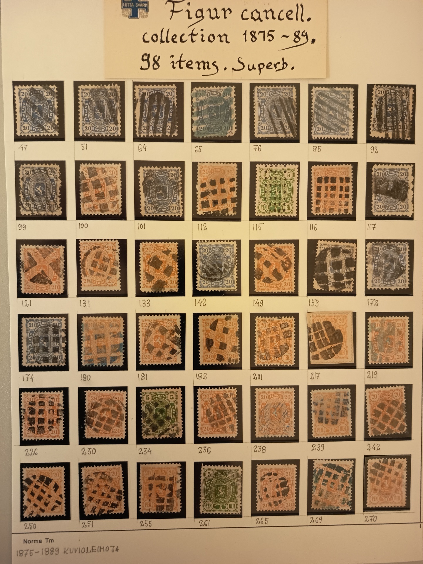 Finland. Used. Figure postmarks small collection 1875–1889 on leaves. The entire lot is presented at www.philea.se. Mostly fine quality. (98)