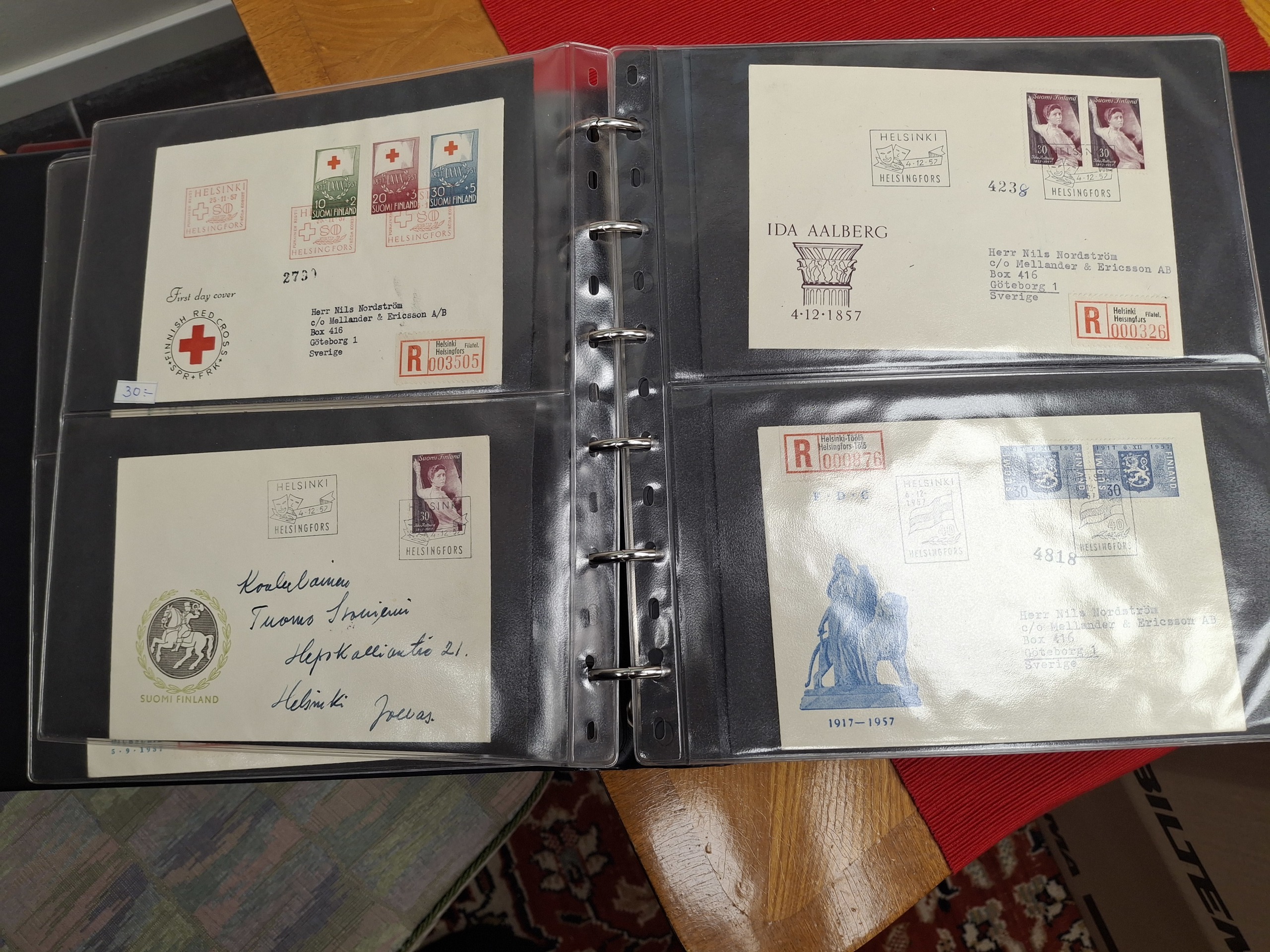 Finland. FDCs, collection 1950s–2021 in two removal boxes. In 14 Kabe visir albums. Albums and sheets in very nice quality. Recommended for continued collecting of Finnish FDCs. Excellent quality. Approx. 30 kg. (1000s)