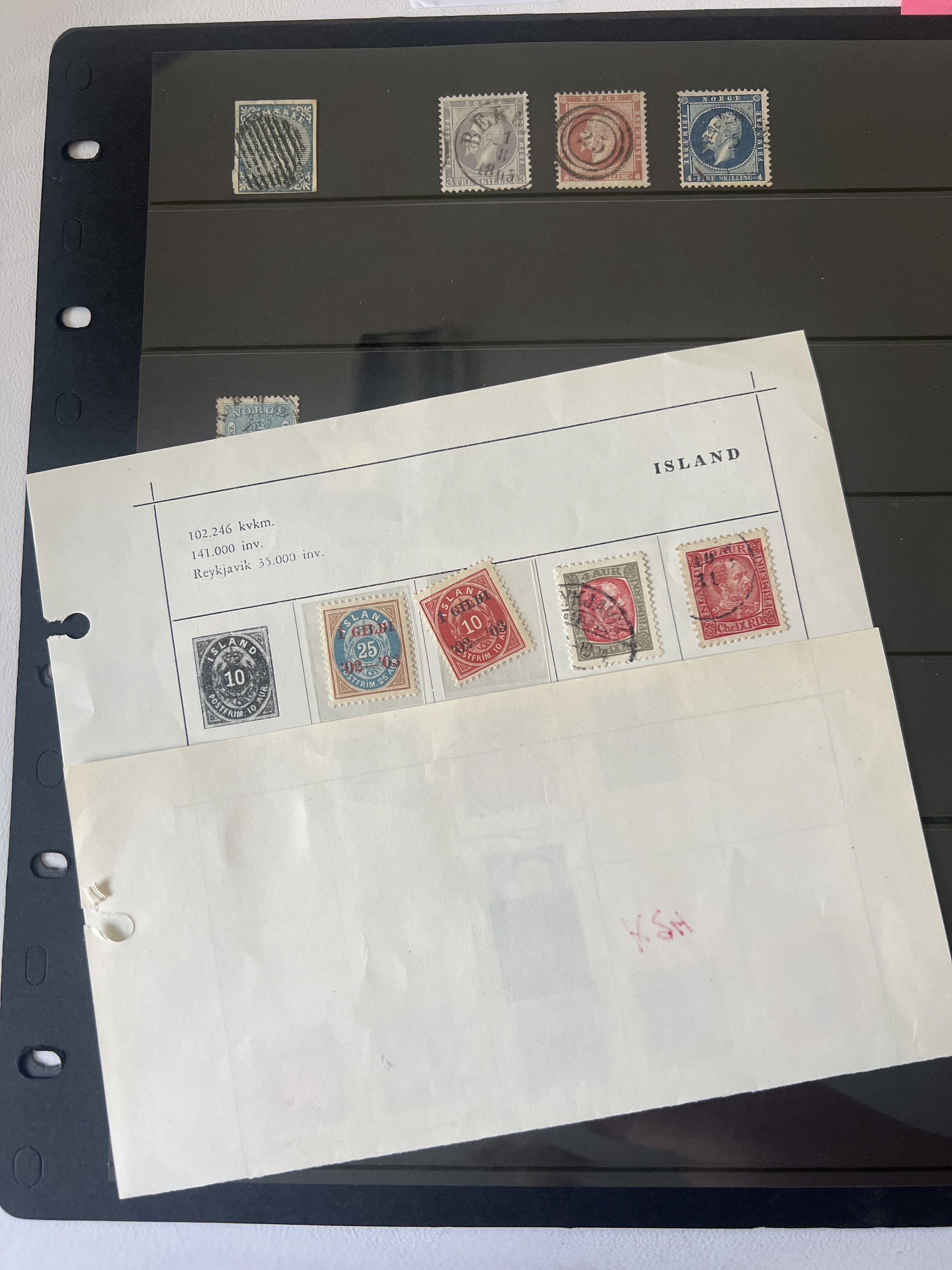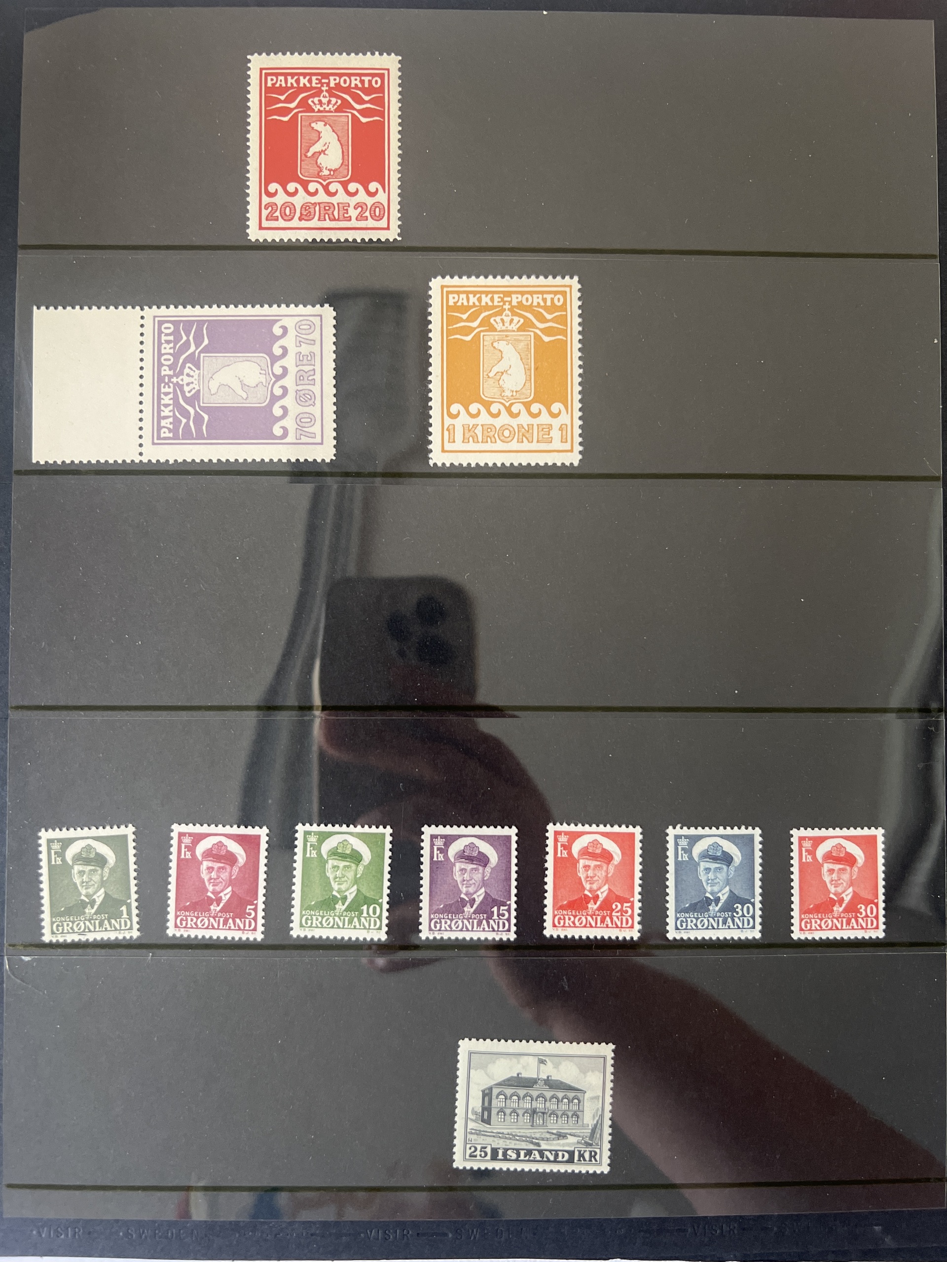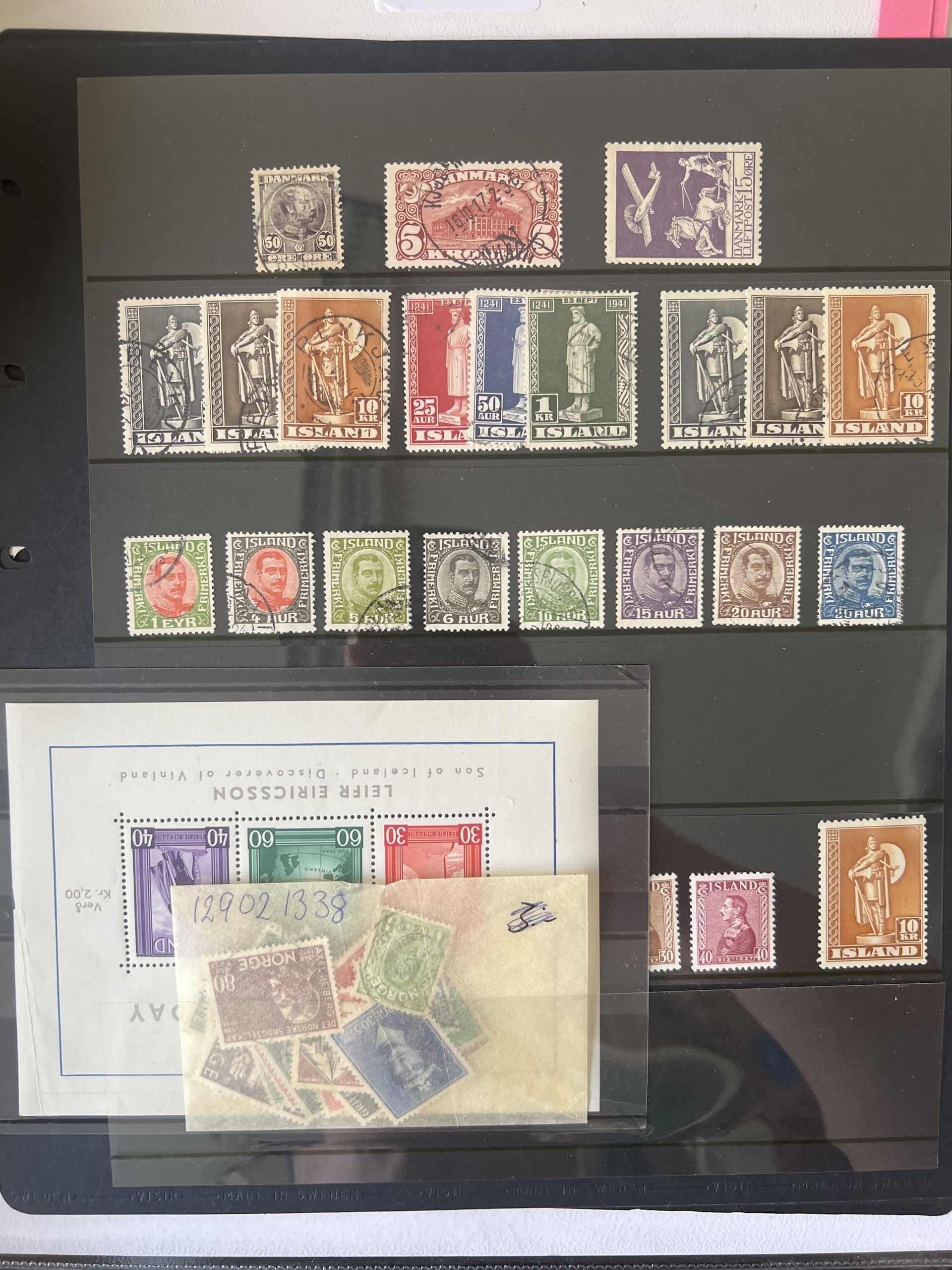 NORDIC COUNTRIES. Lot ★★/★/⊙ 1860–1950s on visir leaves. Mainly better stamps on five visir leaves, and a few more in glassine envelopes. Please see a selection of scans at www.philea.se. Mostly good quality. (ca. 100)
