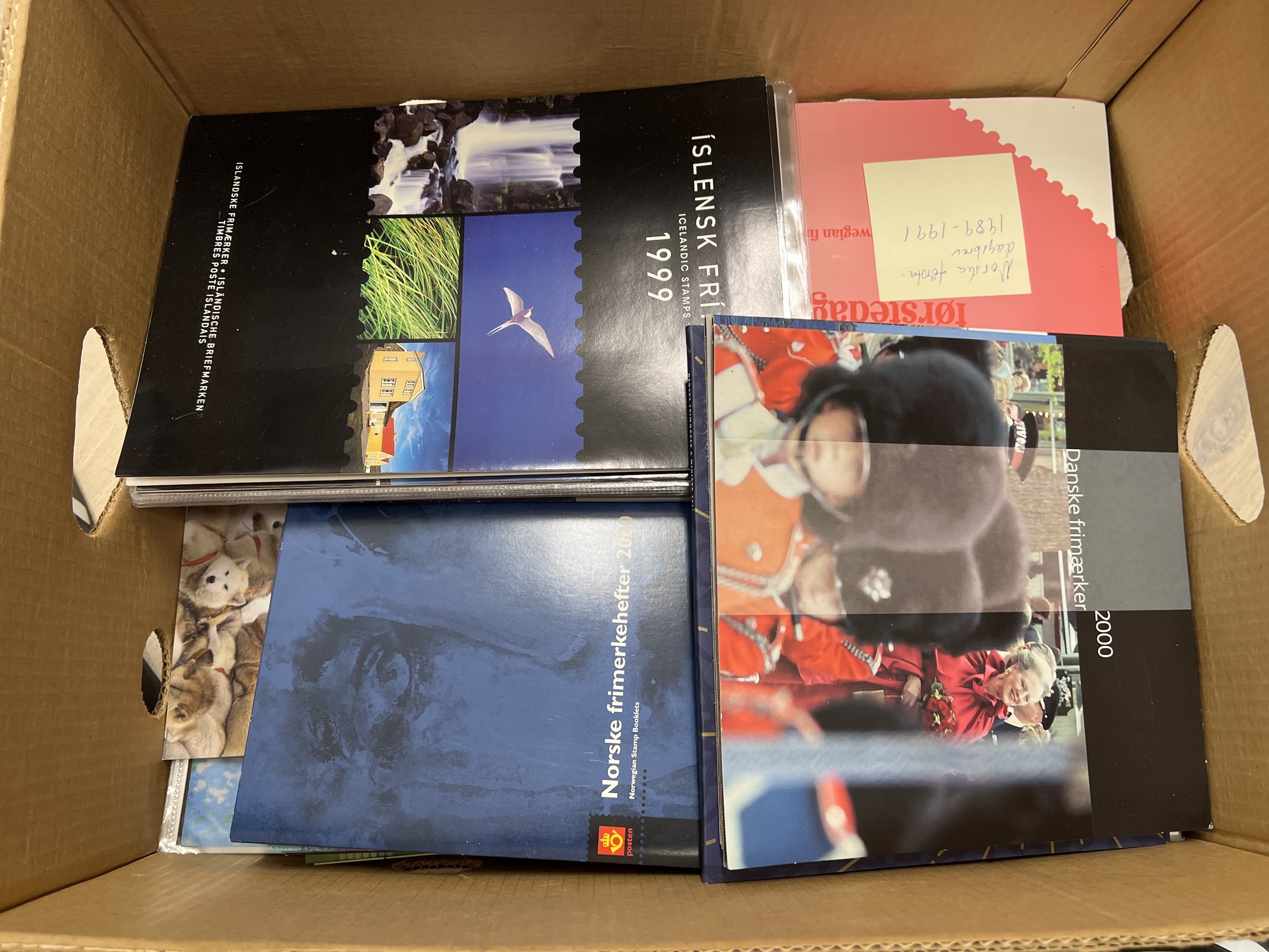 NORDIC COUNTRIES. Year sets, collection/accumulation. Denmark 1980–2002, including some duplicates in the 90s, 2011, Färöarna, 1989–2003, including some duplicates, 2011. Greenland 1989–2003, including some duplicates. Iceland 1989–2002, including some duplicates. Norway 1989–1999, two of each, 2001, four, 2002, 2011. Booklets 1999–2001 and FDC year set 1989–91. Excellent quality. Approx. 12 kg.
