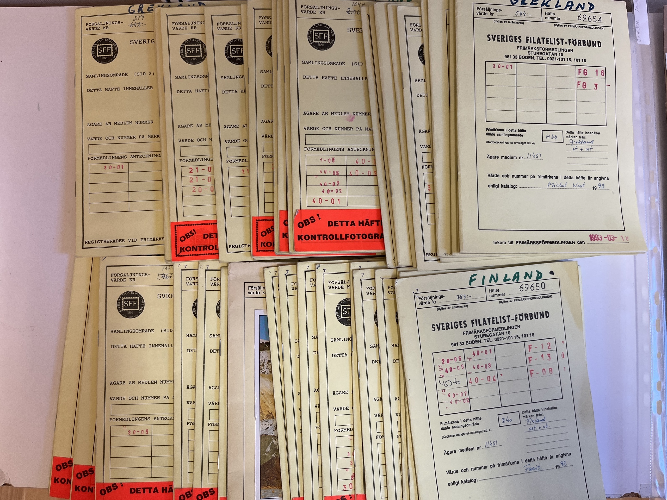 EUROPE. Accumulation ★★/★/⊙ in box. 41 approval booklets with stamps from e.g. Finland, Iceland and Greece. Favourable.
