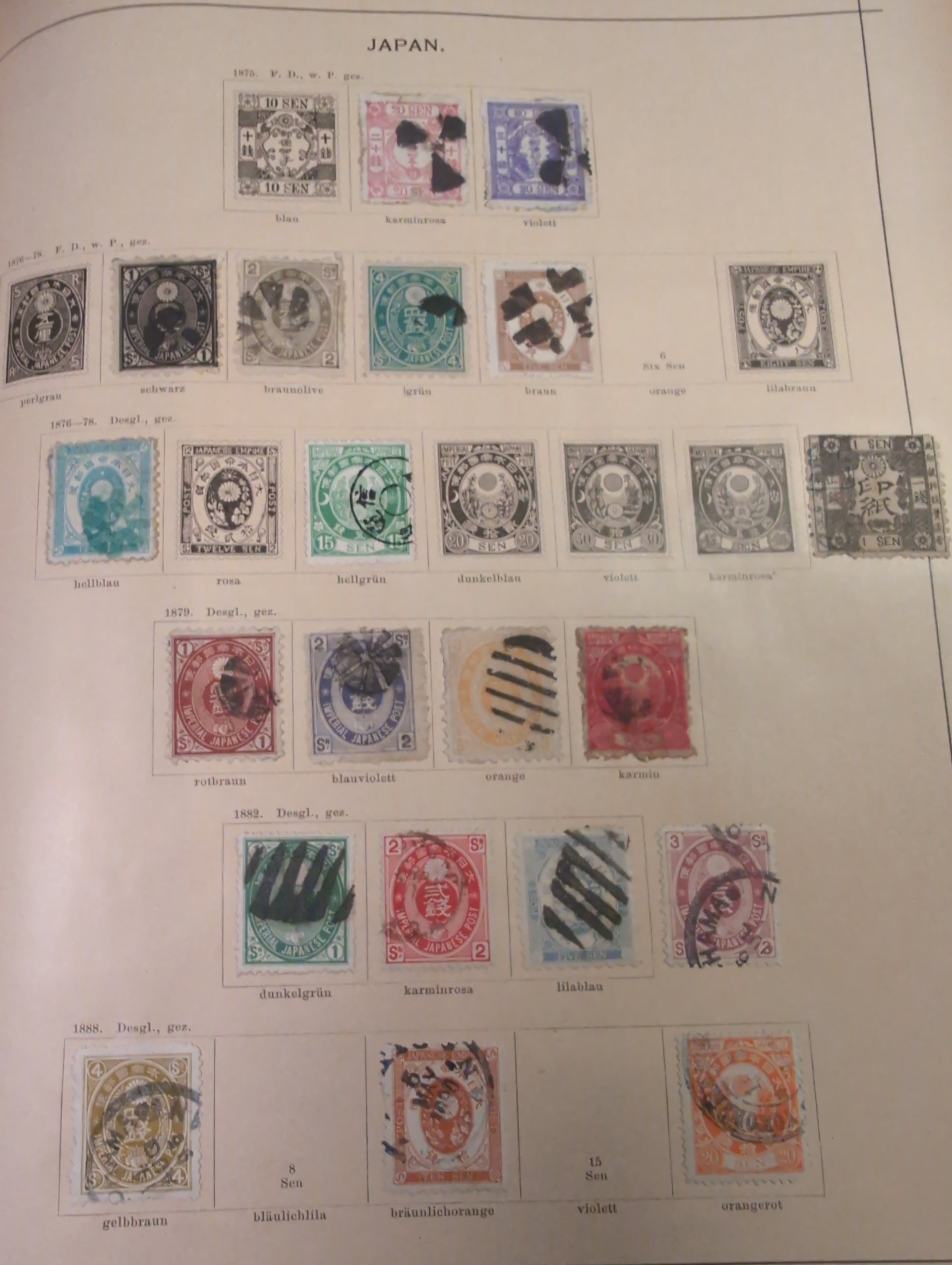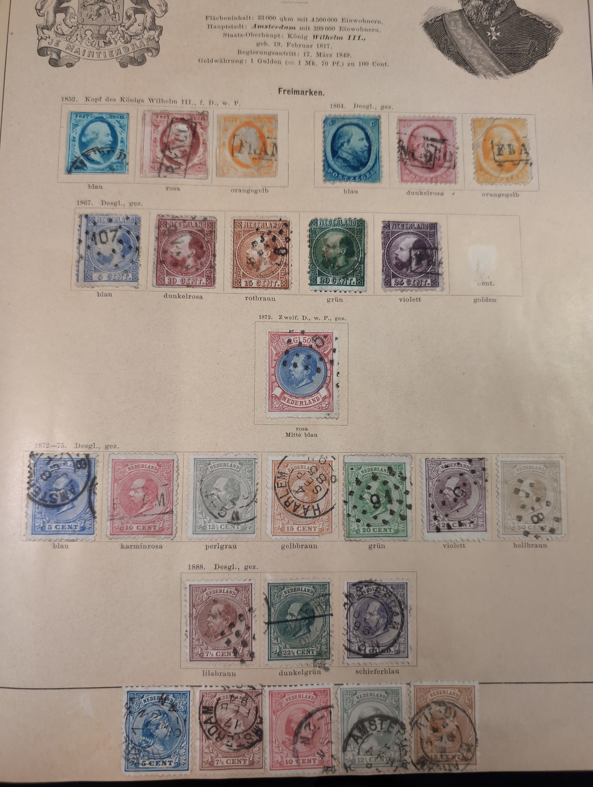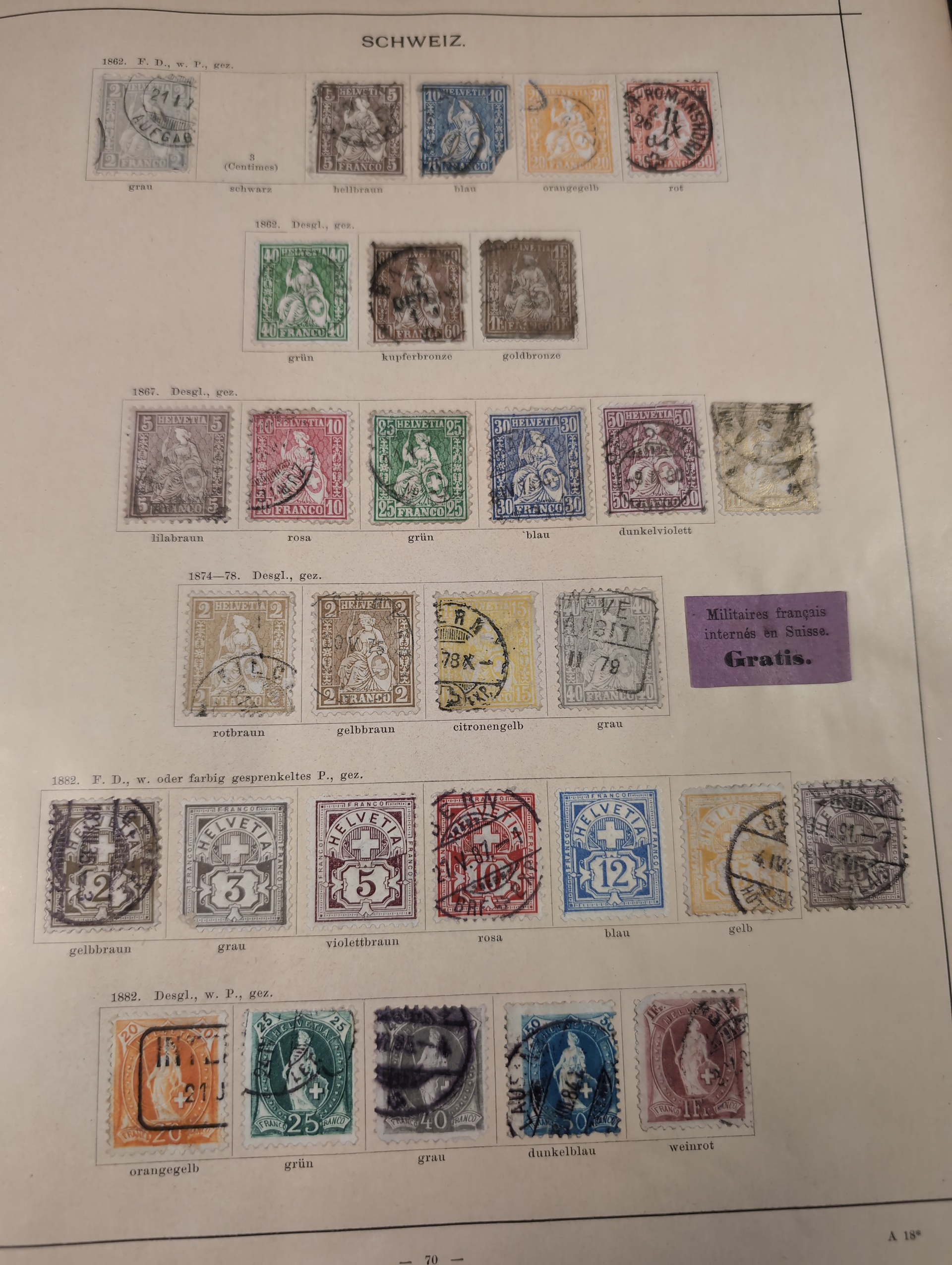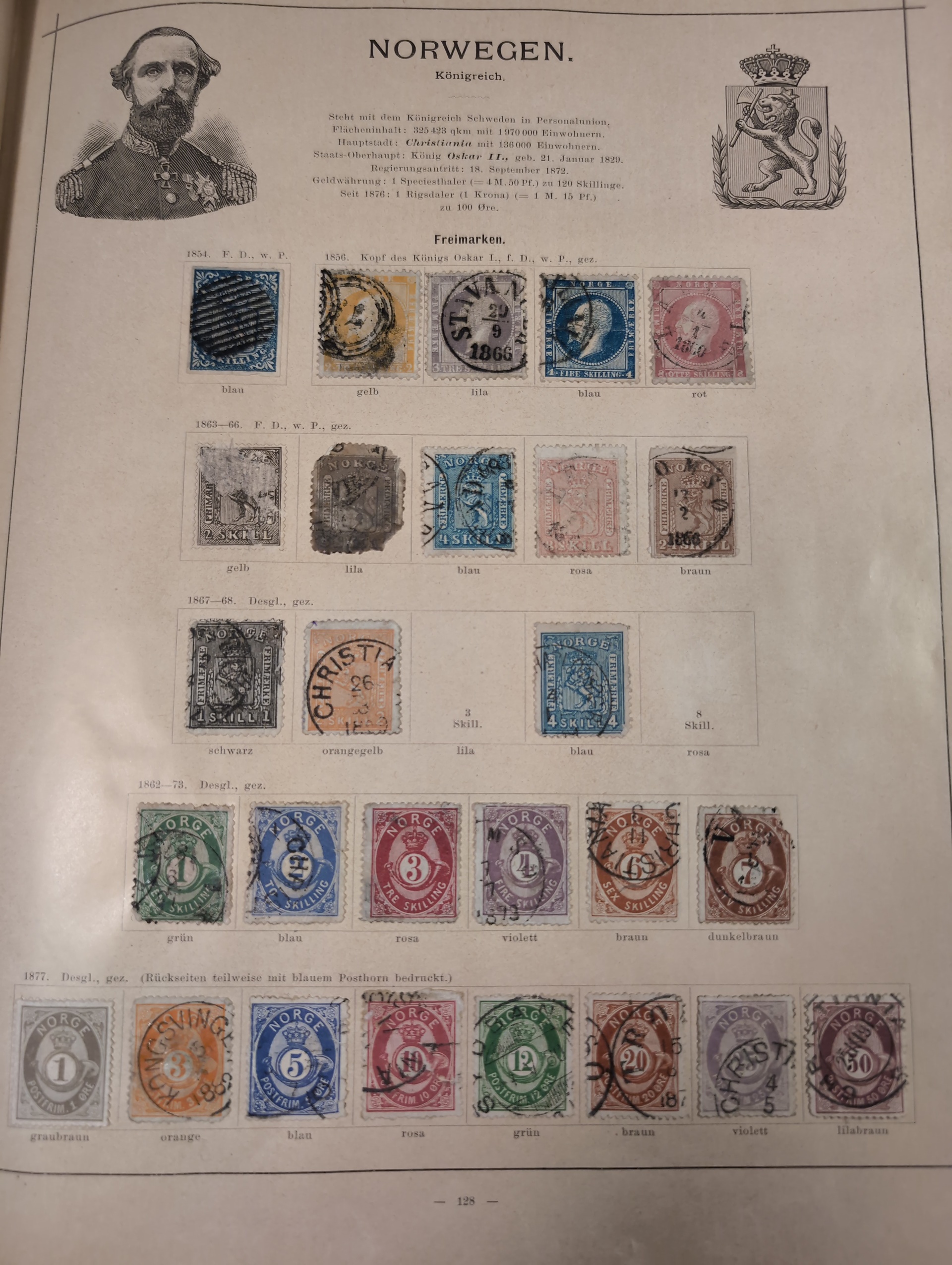 ALL WORLD. Collection ★/⊙ 1840–ca. 1890 in album. Old Schaubek album from 1883. Broken spine otherwise in nice condition. Good sections of Nordic countries and Europe with many a bit better stamps. Stamps are in inferior to very fine condition and all seems to be glued into the album, a test showed that they are possible to salvage. Carefull viewing is recommended. Please see a selection of scans at www.philea.se. Very mixed quality. (ca. 2500)
