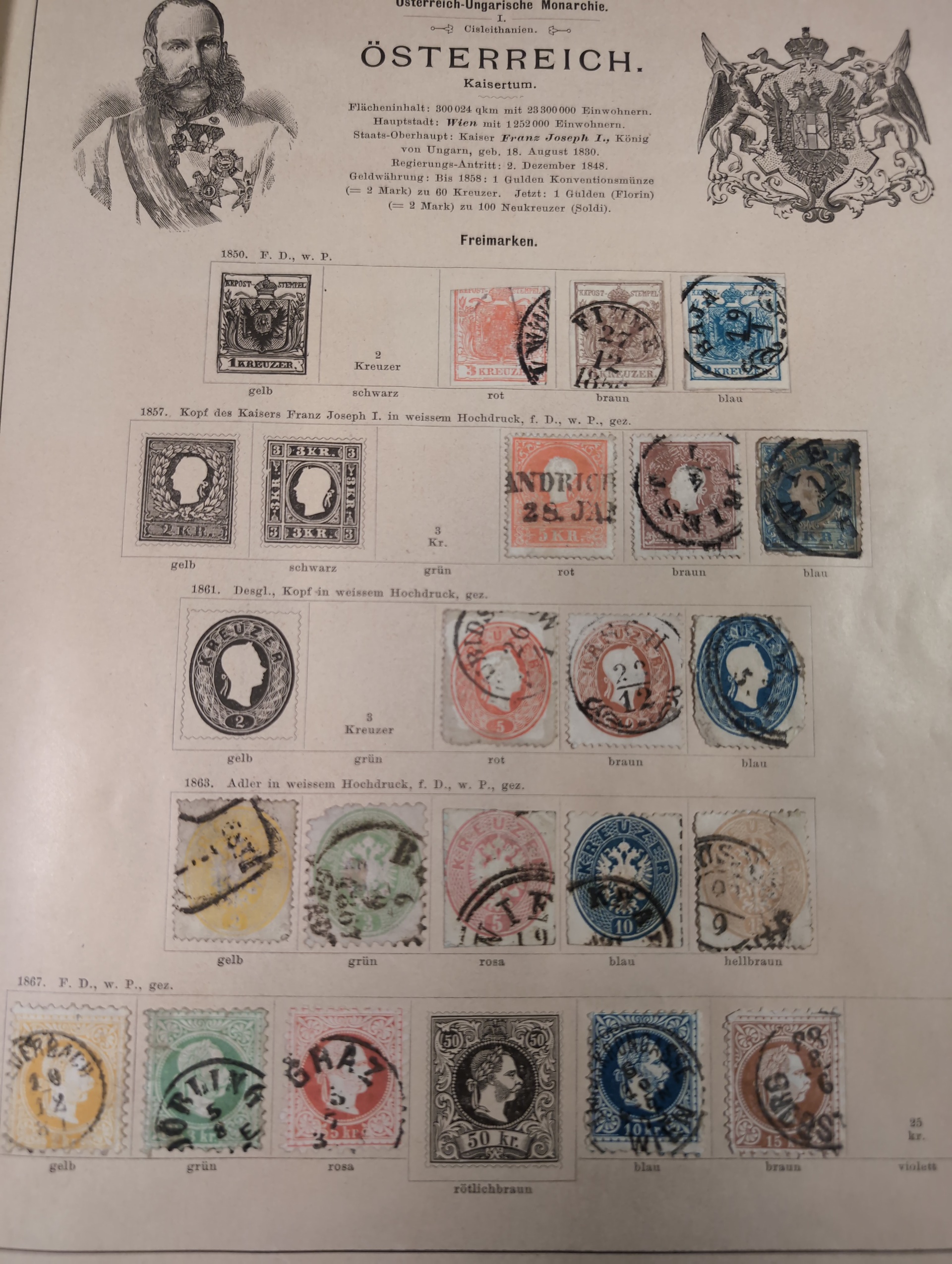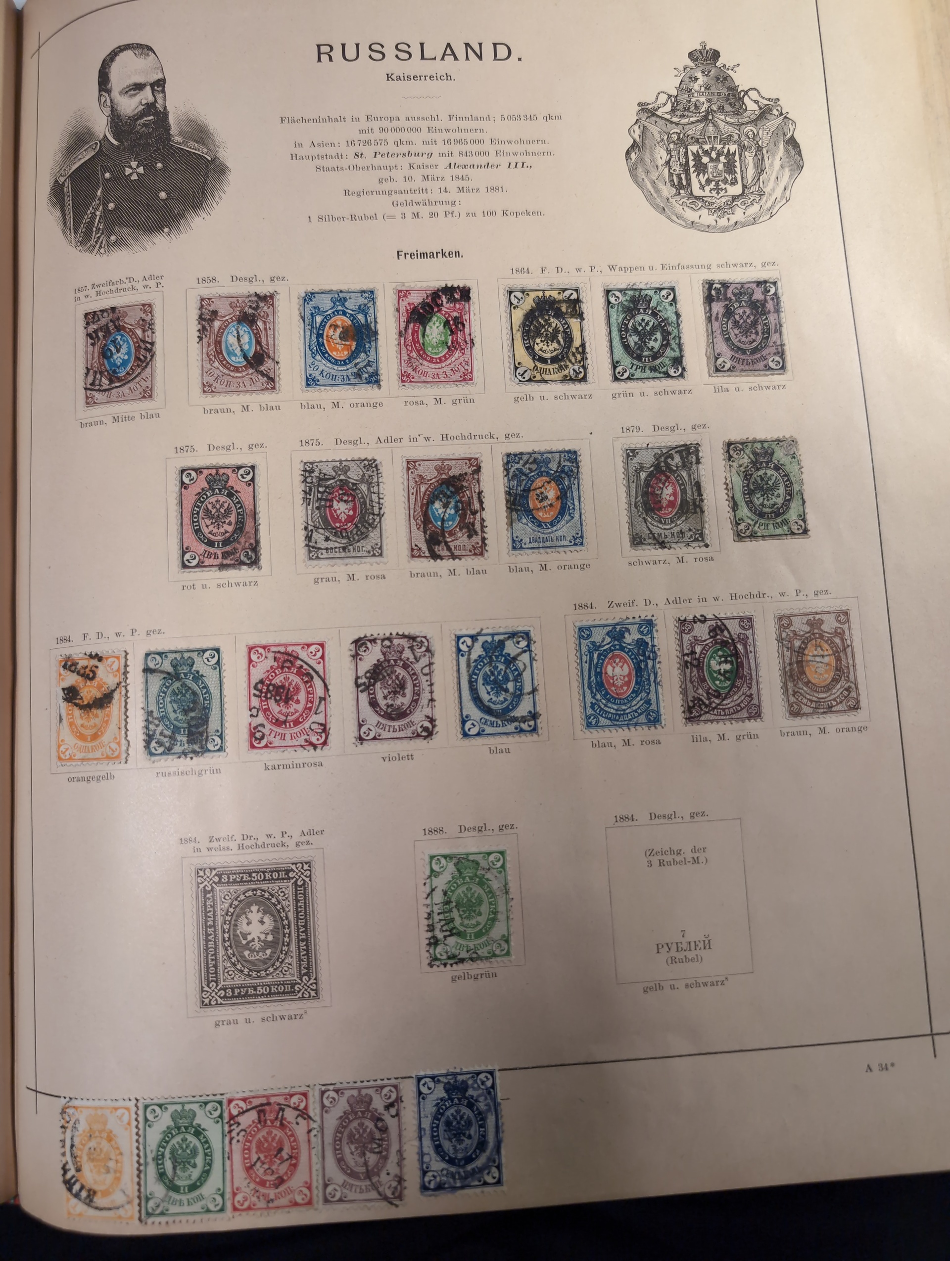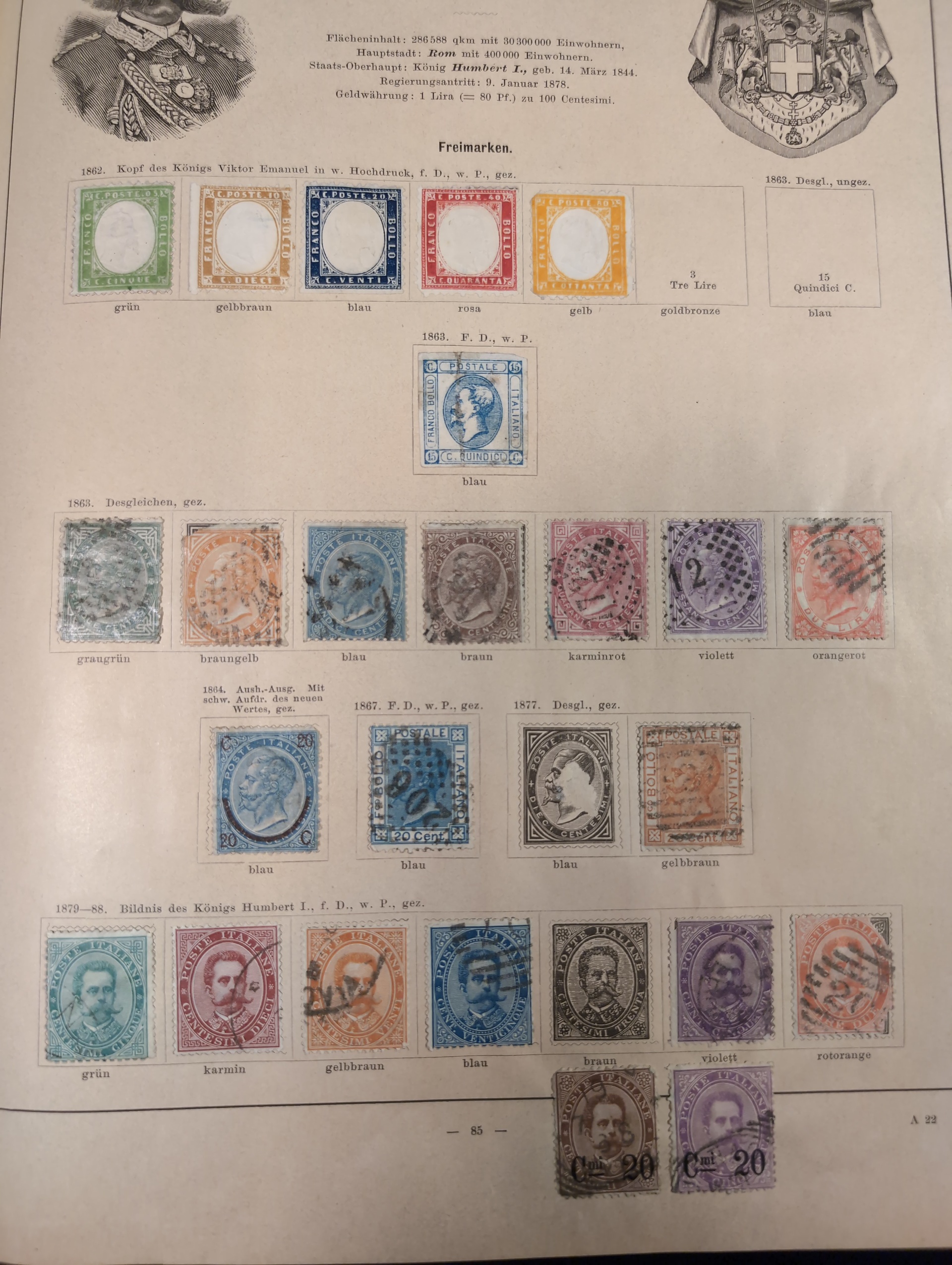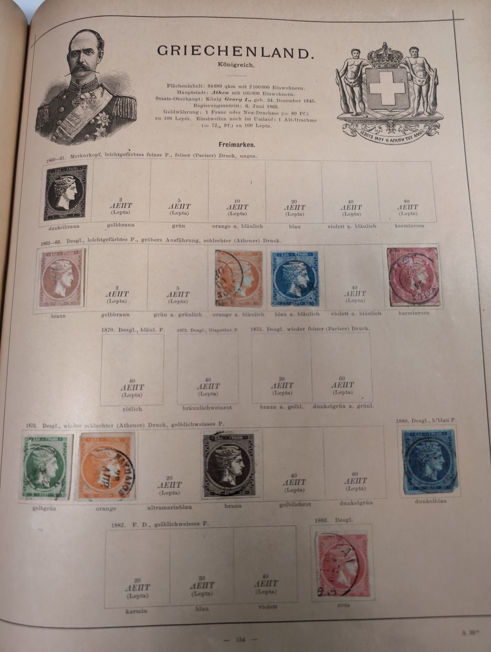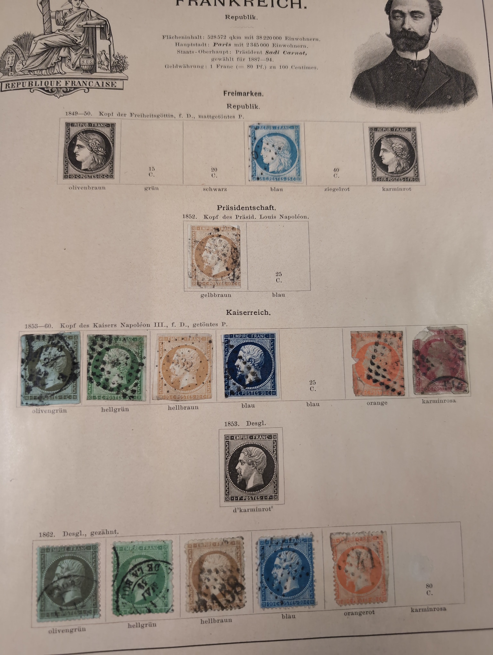 ALL WORLD. Collection ★/⊙ 1840–ca. 1890 in album. Old Schaubek album from 1883. Broken spine otherwise in nice condition. Good sections of Nordic countries and Europe with many a bit better stamps. Stamps are in inferior to very fine condition and all seems to be glued into the album, a test showed that they are possible to salvage. Carefull viewing is recommended. Please see a selection of scans at www.philea.se. Very mixed quality. (ca. 2500)