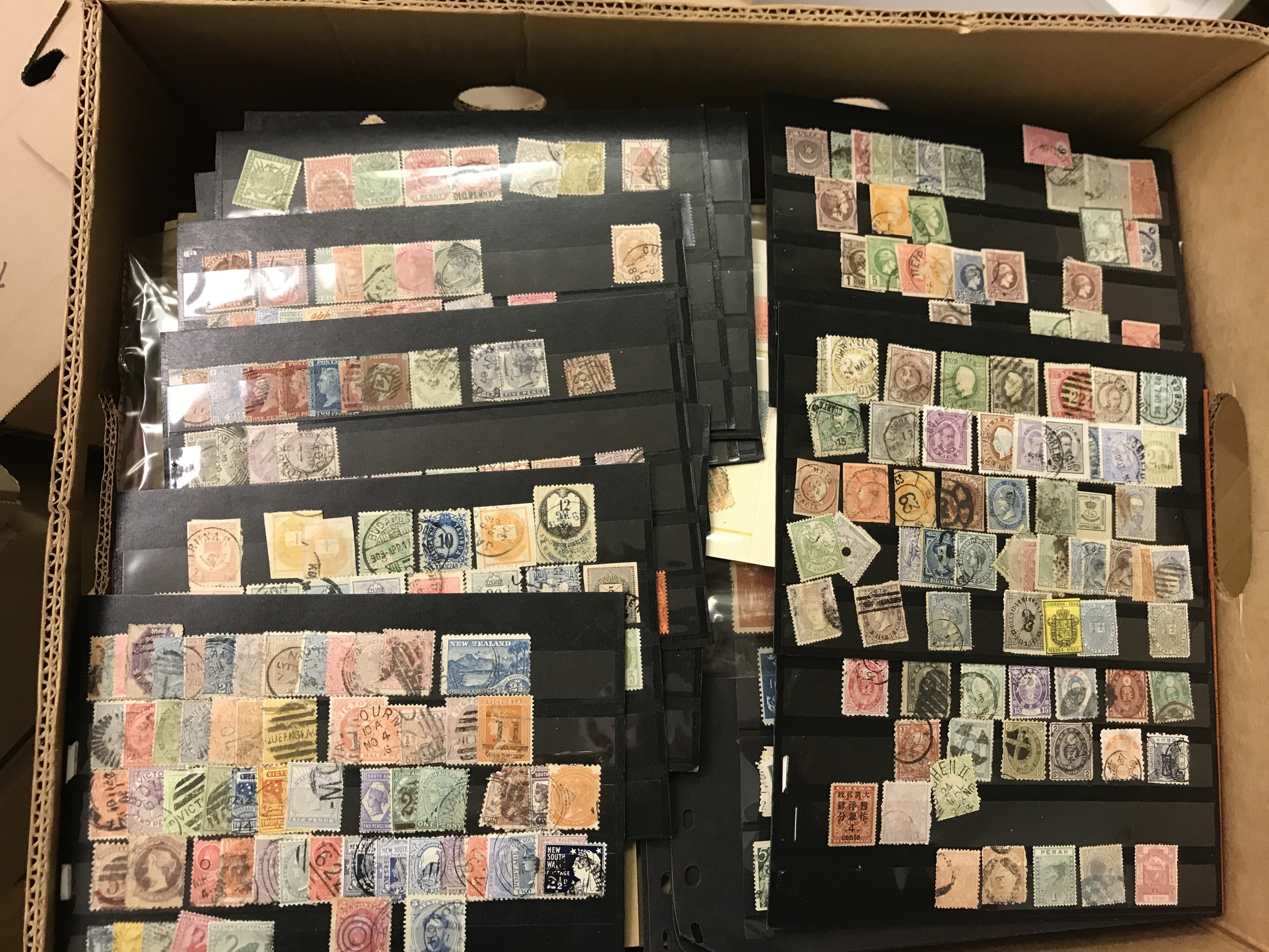 ALL WORLD. Mostly used. Interesting box with much old–classic material from a large number of countries incl. many selections, etc. Favourable. Approx. 11 kg. (1000s)