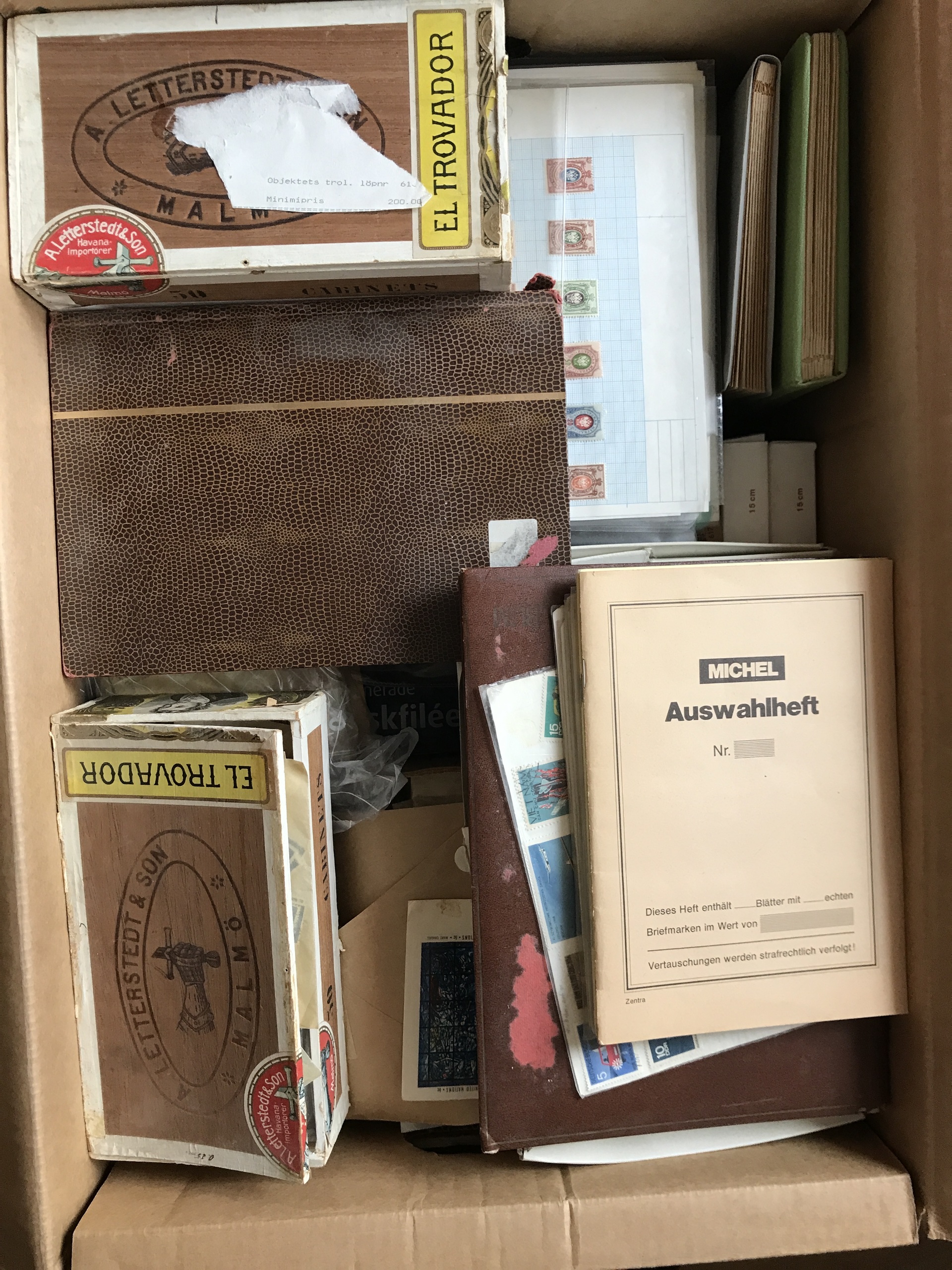 ALL WORLD. Mostly used. Removal box with 10000s of stamps old–modern. Seems to be interesting with much older material. Approx. 19 kg.