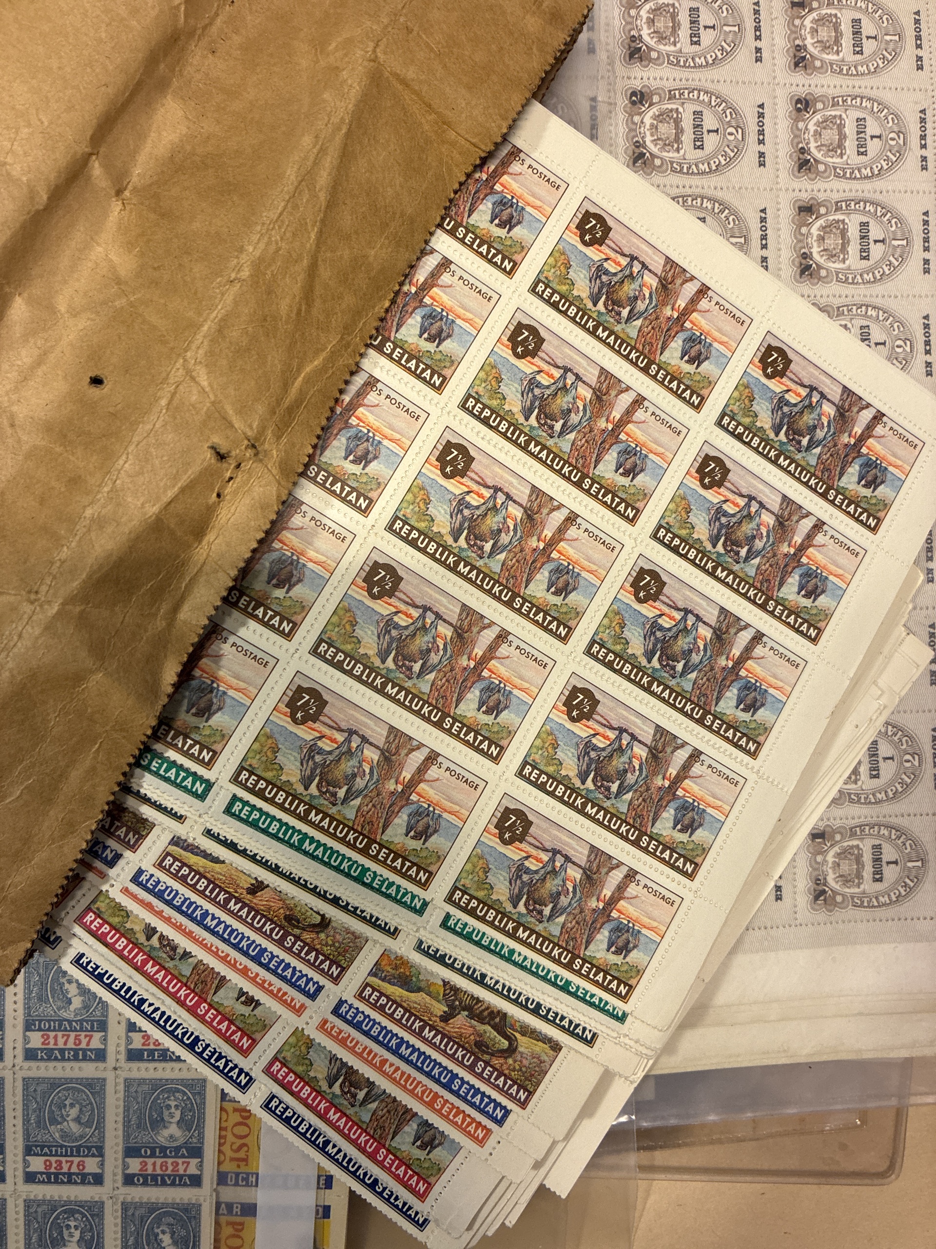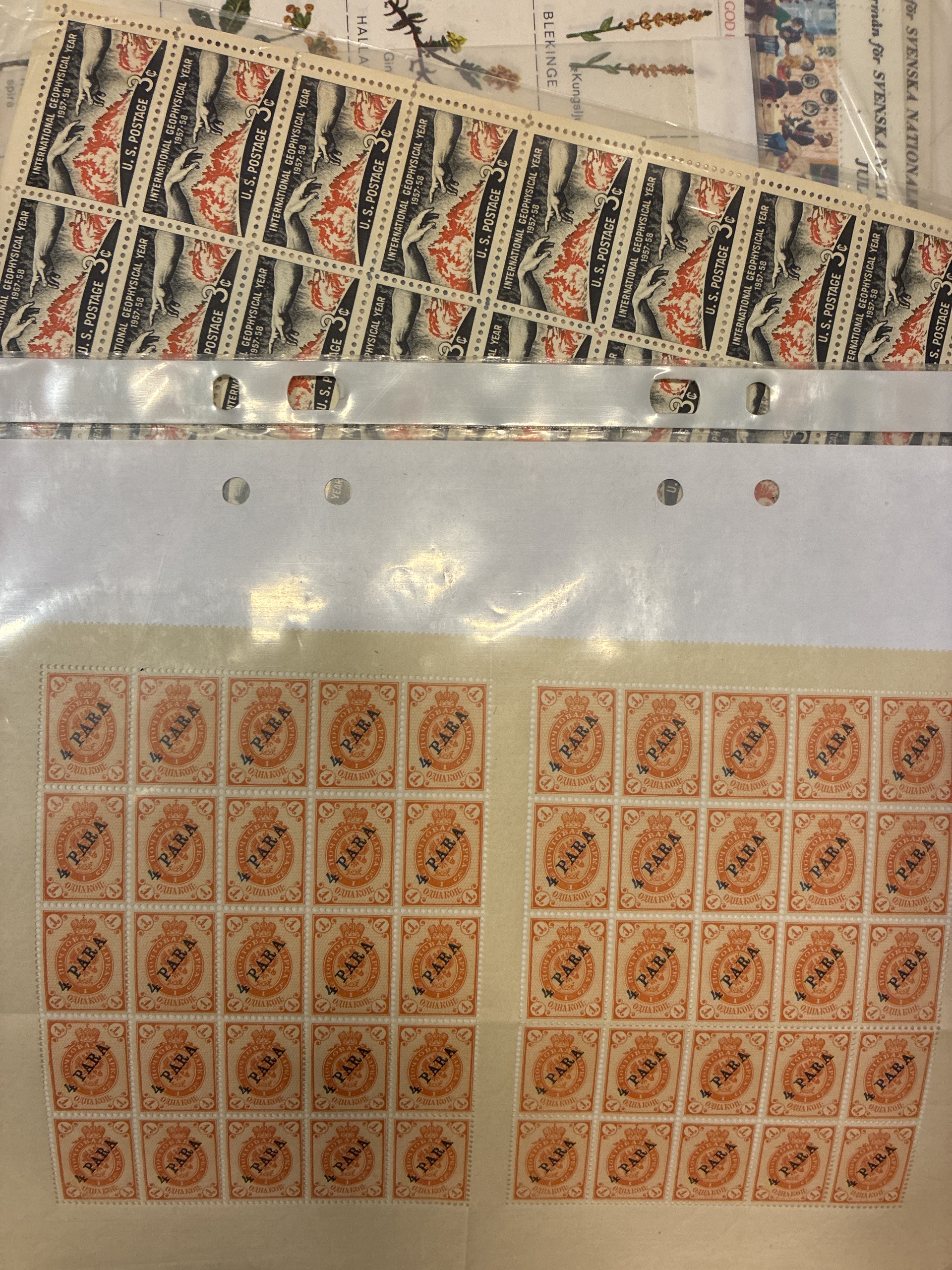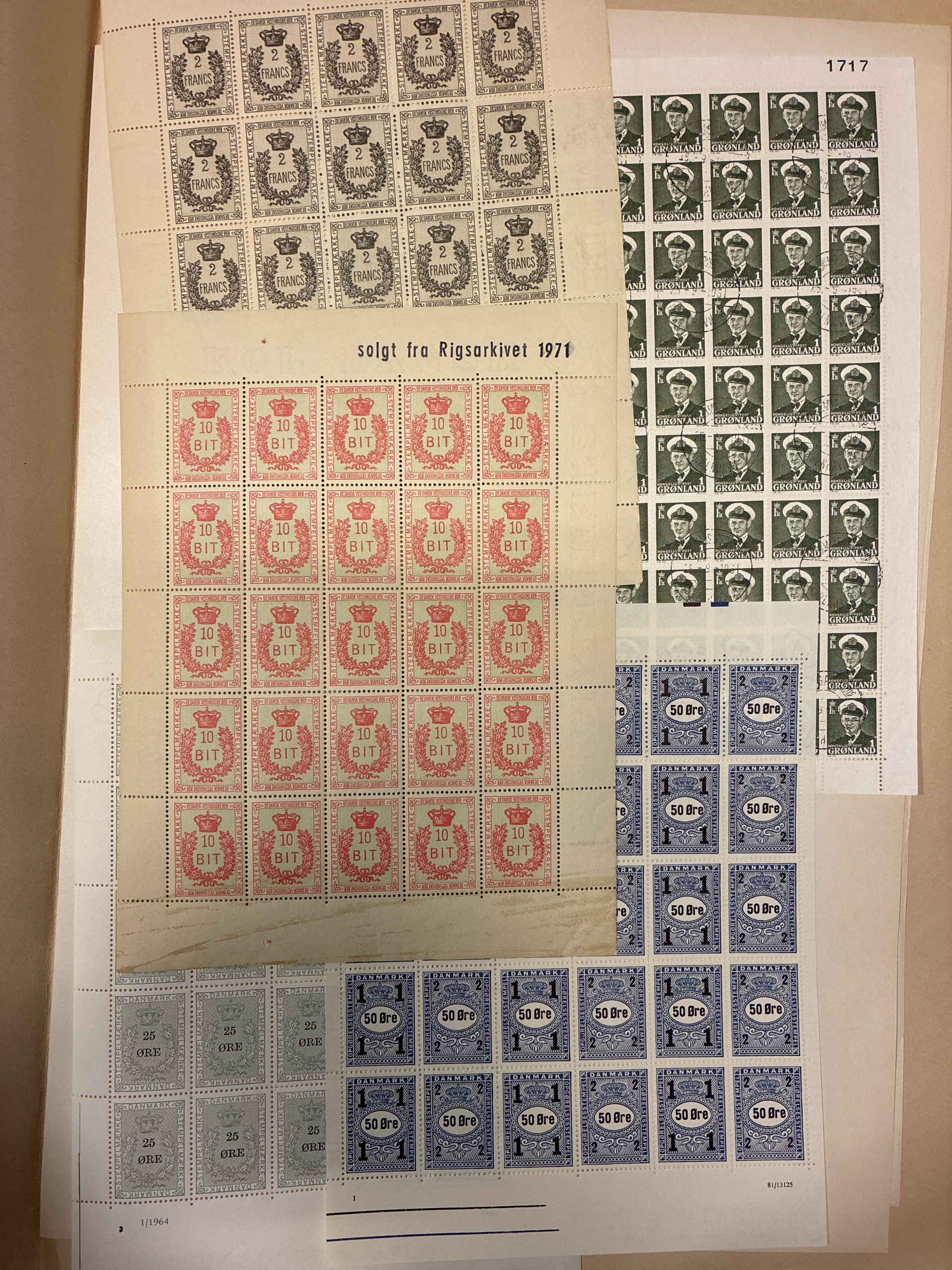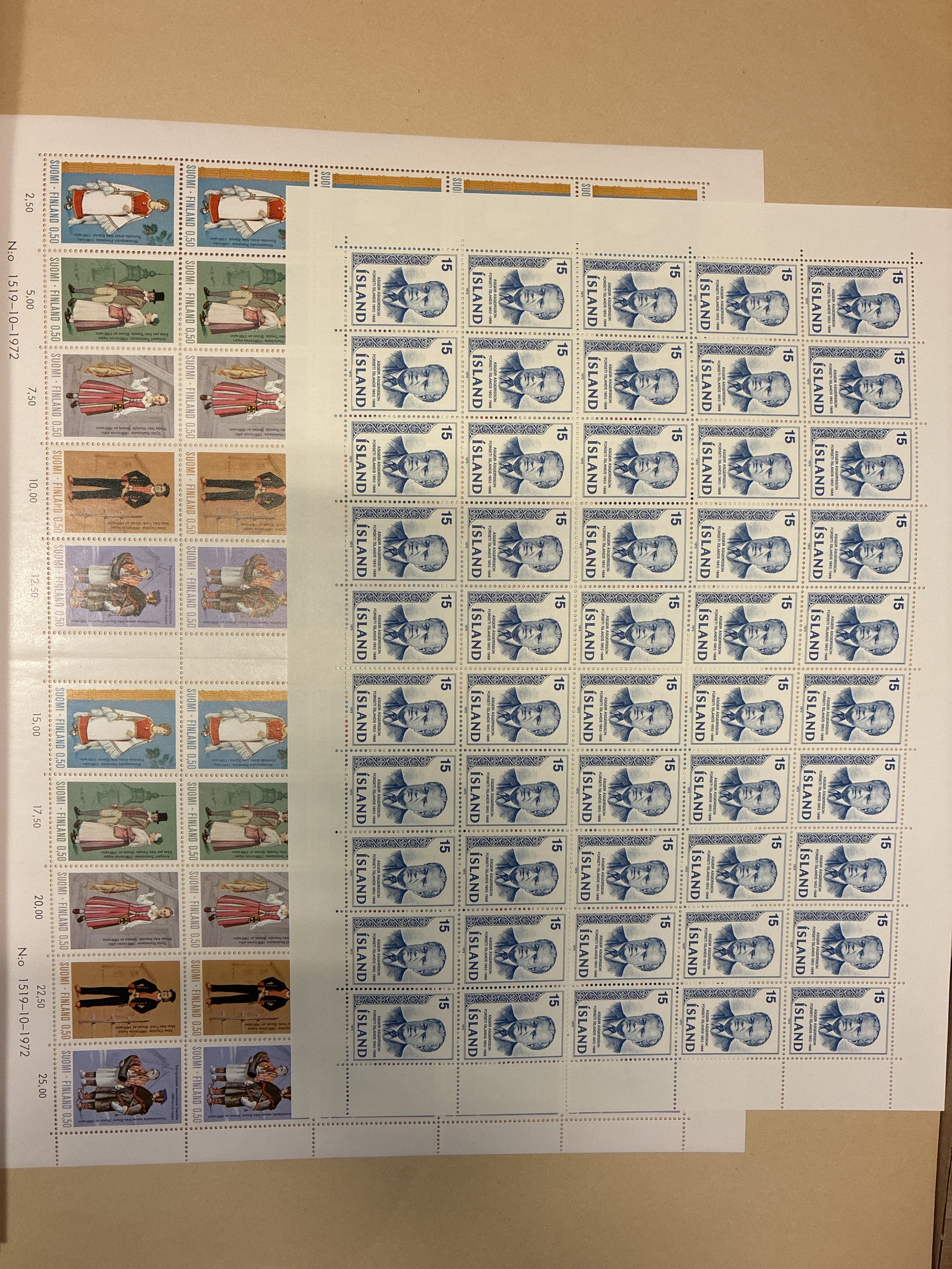 ALL WORLD. Accumulation ★★ ca. 1900–1980 in box. Stamps, revenues in sheets of 100 or more. USA, Great Britain and and Sweden, etc. Please see a selection of scans at www.philea.se. Mostly good quality. (several 1000)