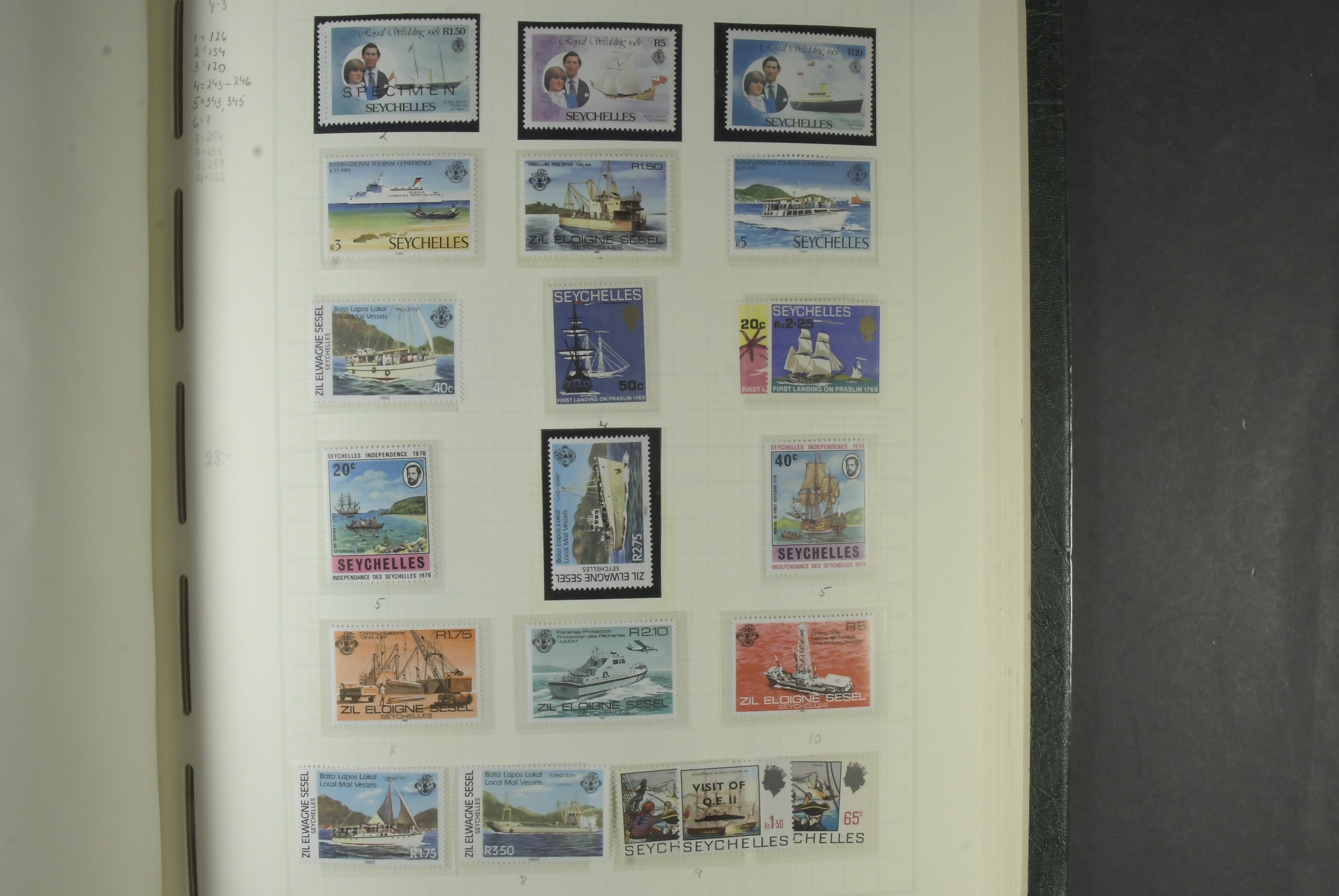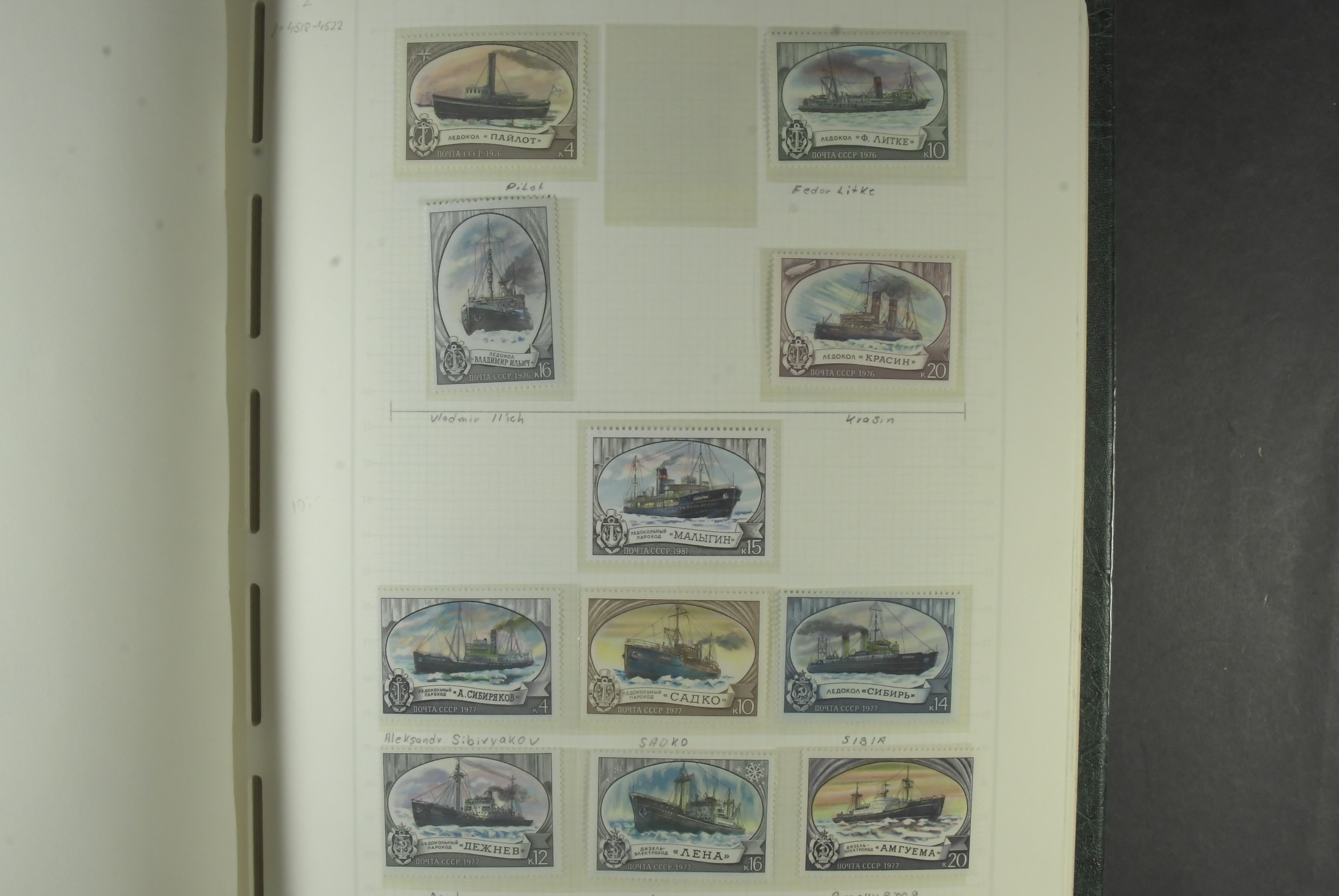 Thematics, Ships. Collection/accumulation ★★/★/⊙ 1900s in box. Three albums with ships on stamps organized according to country of issue. Please see a selection of scans at www.philea.se. Fine quality. Approx. 9 kg. (>1000)