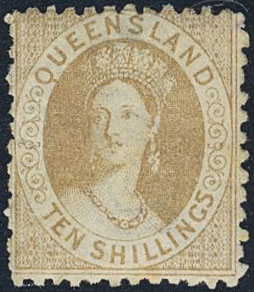 Australia, New South Wales. SG 126 ★, 1880 Queen Victoria 10s bistre-brown. Full original gum very light trace of a hinge, a few rough perfs as usual, a gem. GBP 950