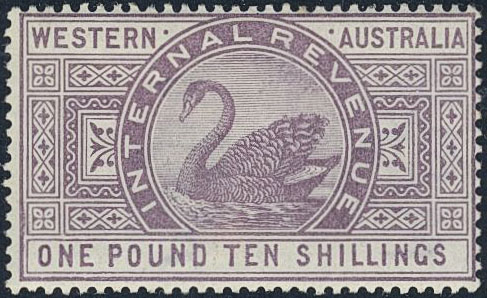 Australia, Western Australia. Revenue ★, ONE POUND TEN SHILLINGS Swan. Almost imperceptibly hinged. Rare.