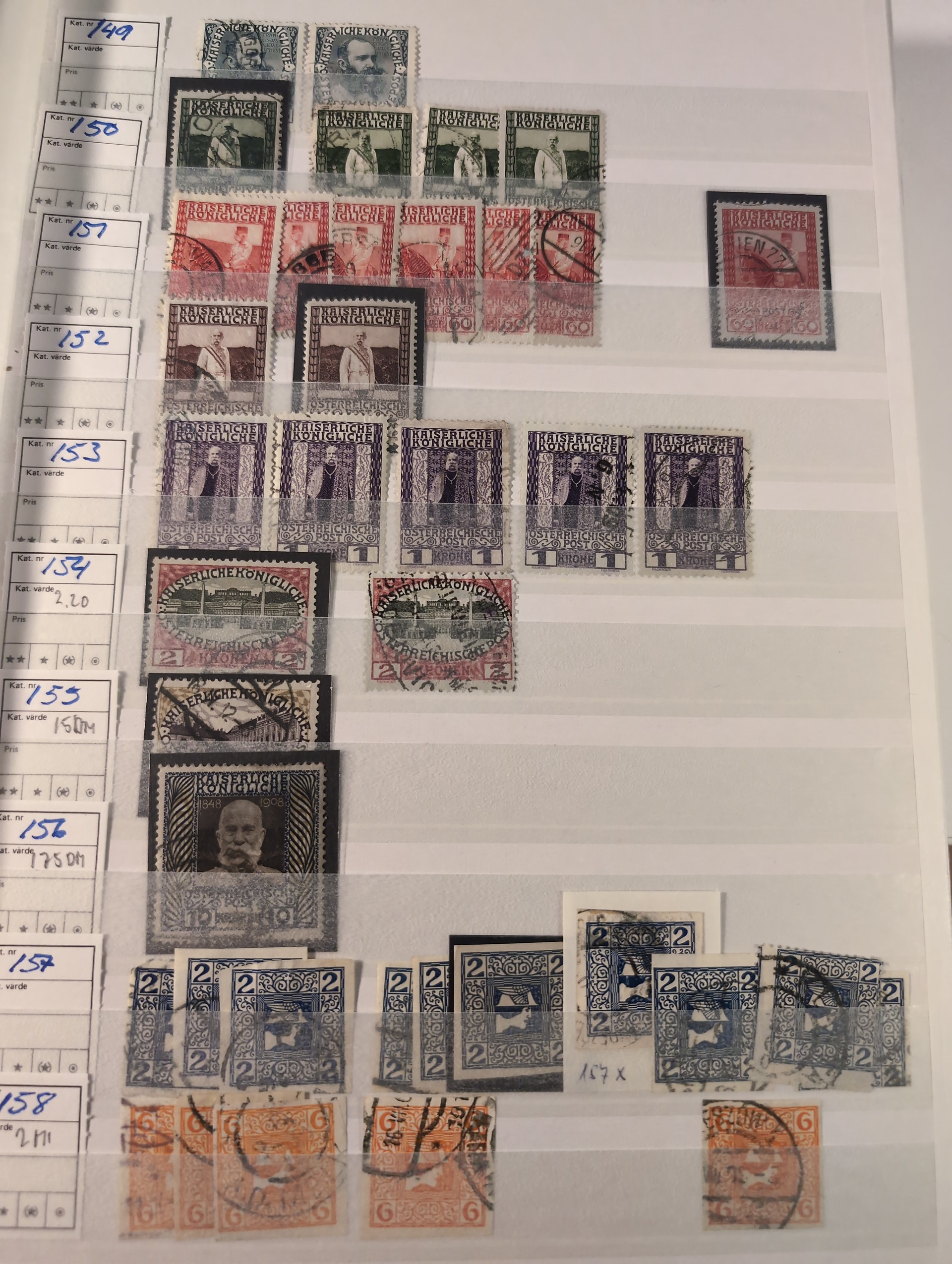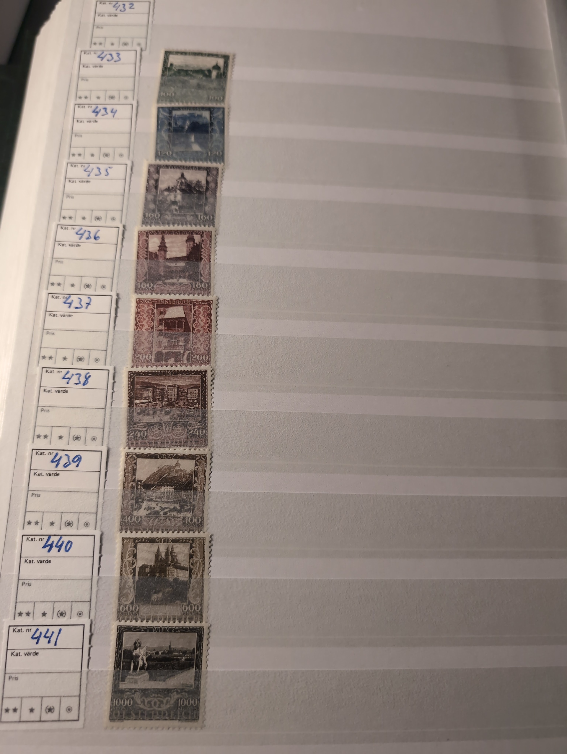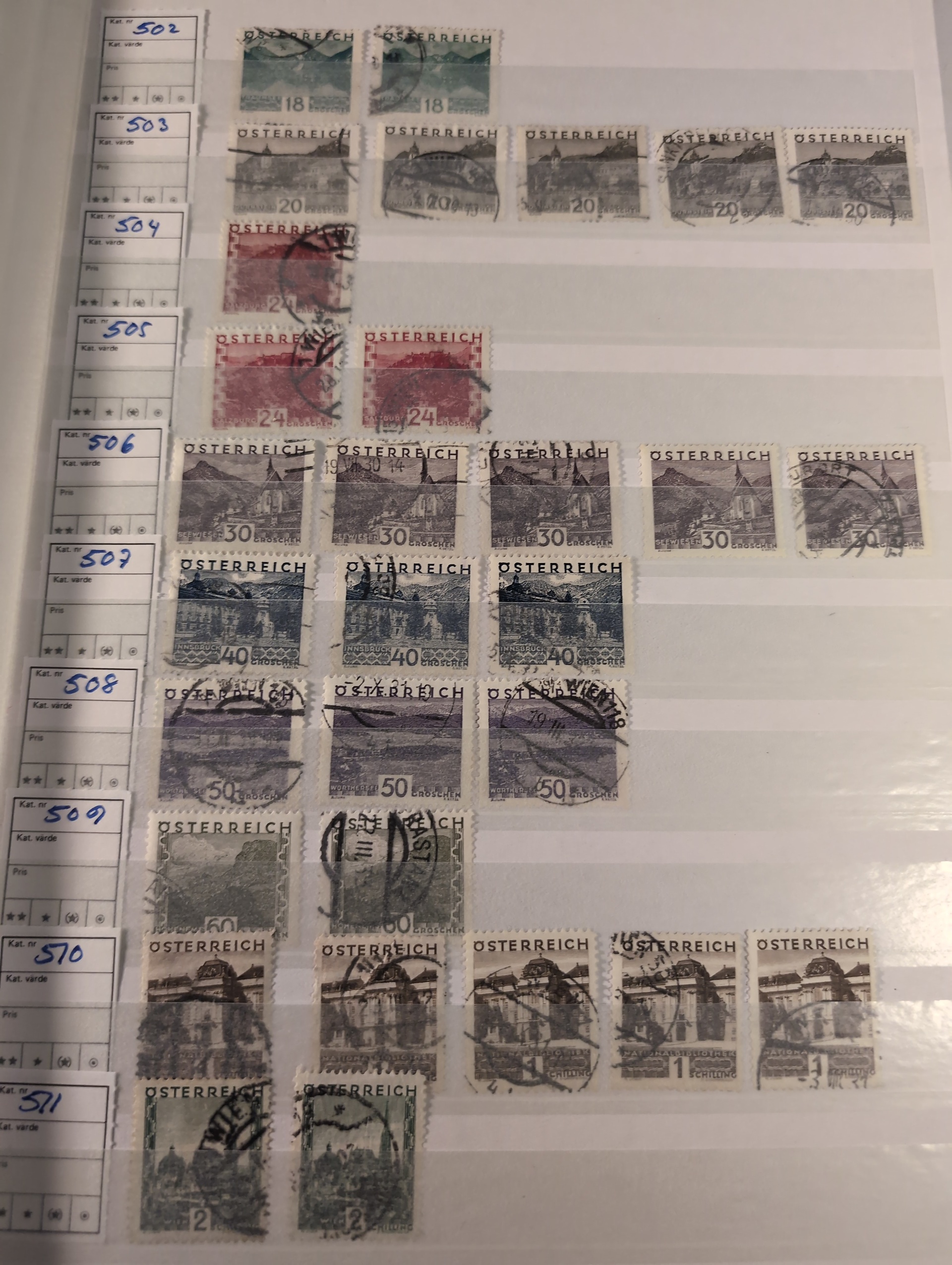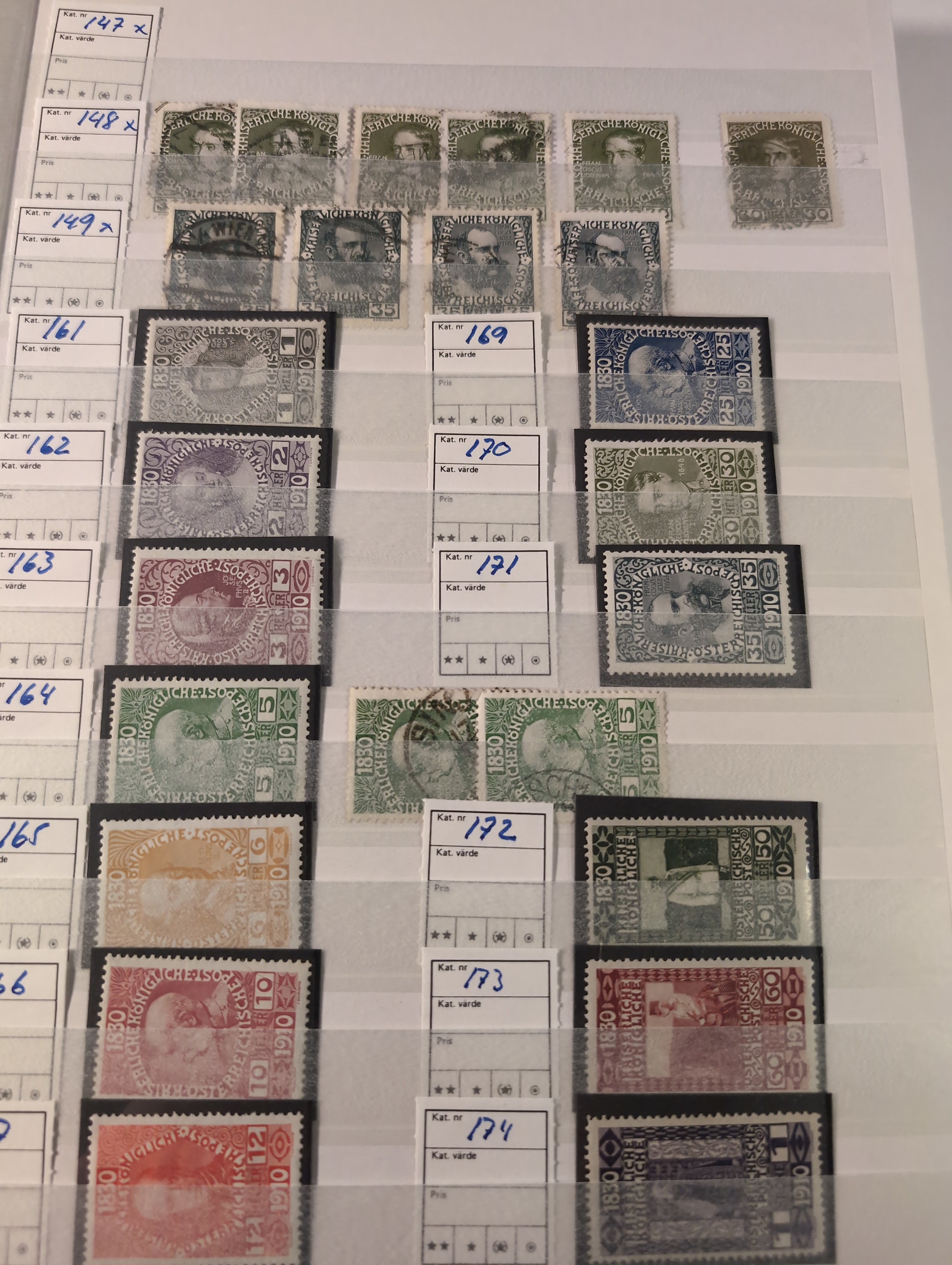 Austria. Collection/accumulation ★★/★/⊙ 1850–1960 in two thick stockbooks. Good coverage with some better stamps and sets incl., good section back of the book. Please see a selection of scans at www.philea.se. Mostly good quality. (1500–2000)