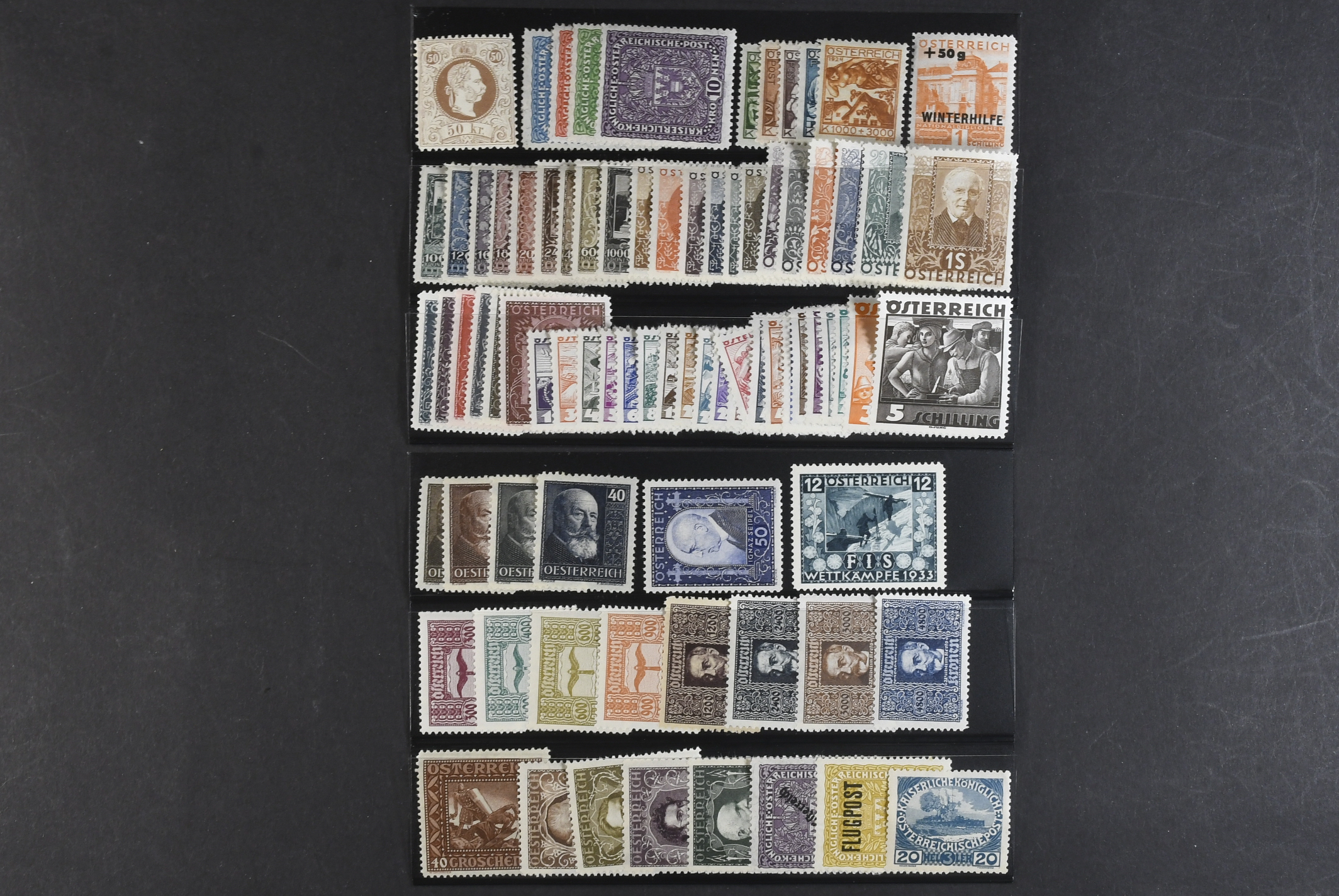 Austria. ★ 1867–1934. All different, e.g. Mi 41 II, 208–11 IA, 433–46, 512–17, 524–29, 545–50, 566, 567–87. Mostly good quality. Mi € 649 (81)