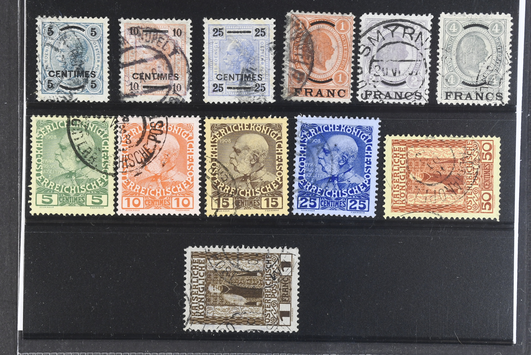Austria. Used 1903–1908. Post abroad. Crete 3, 5, 6, 7, 17–22. Mostly good quality. Mi € 1445 if cancellations is genuine (12)