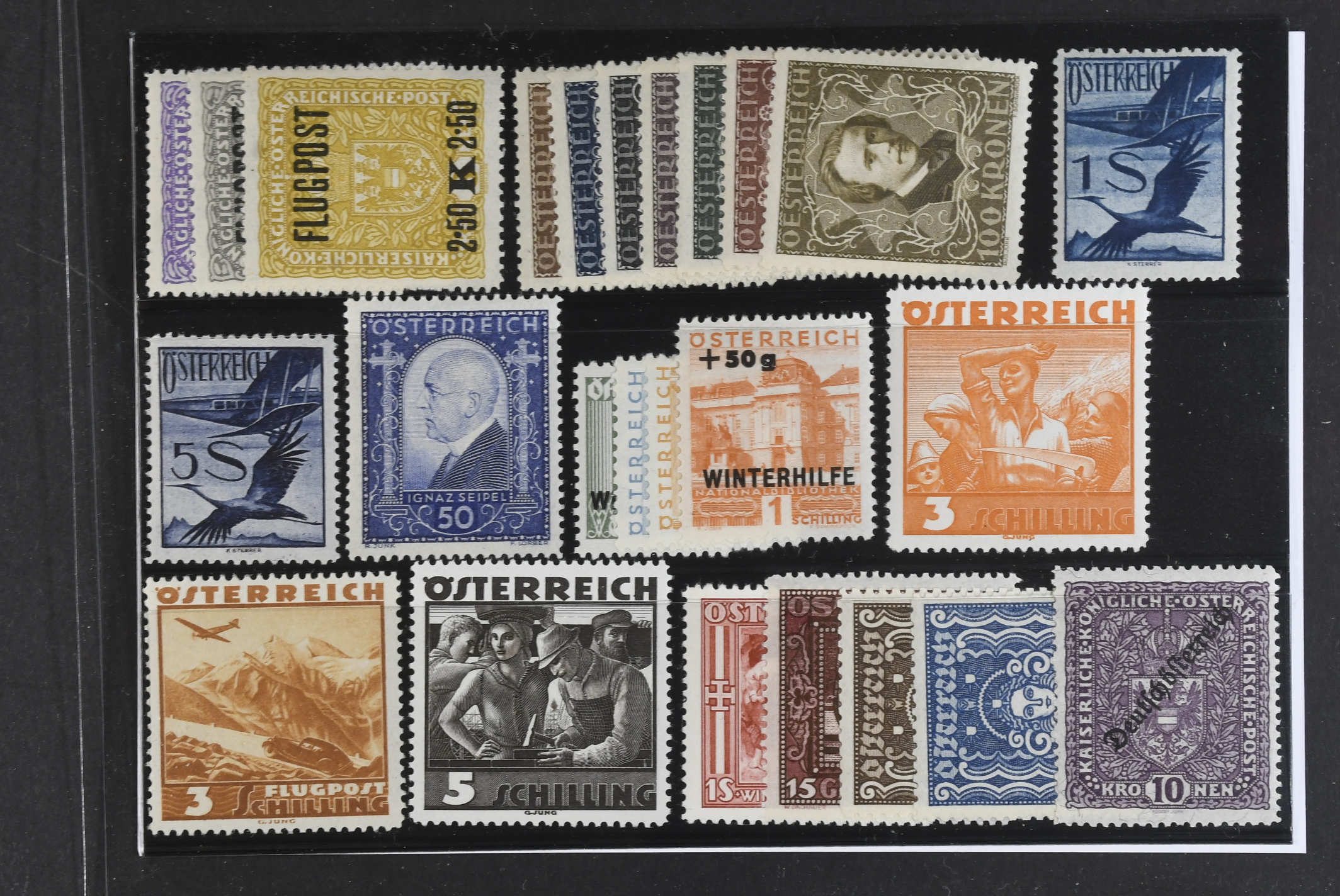 Austria. ★★ 1918–1936. All different, e.g. Mi 225–27y, 418A–24A, 483, 486, 544, 563–66, 586–87, 610. Mostly good quality. Mi € 622 (25)