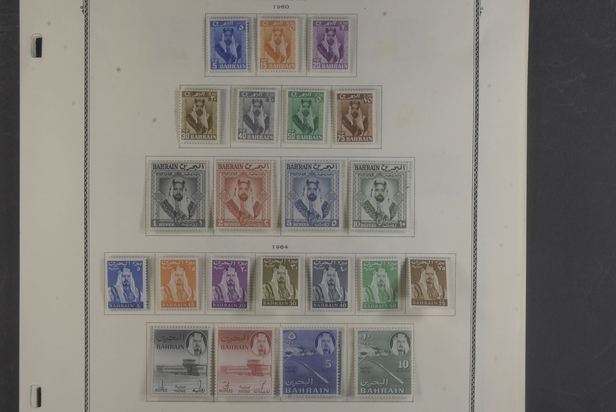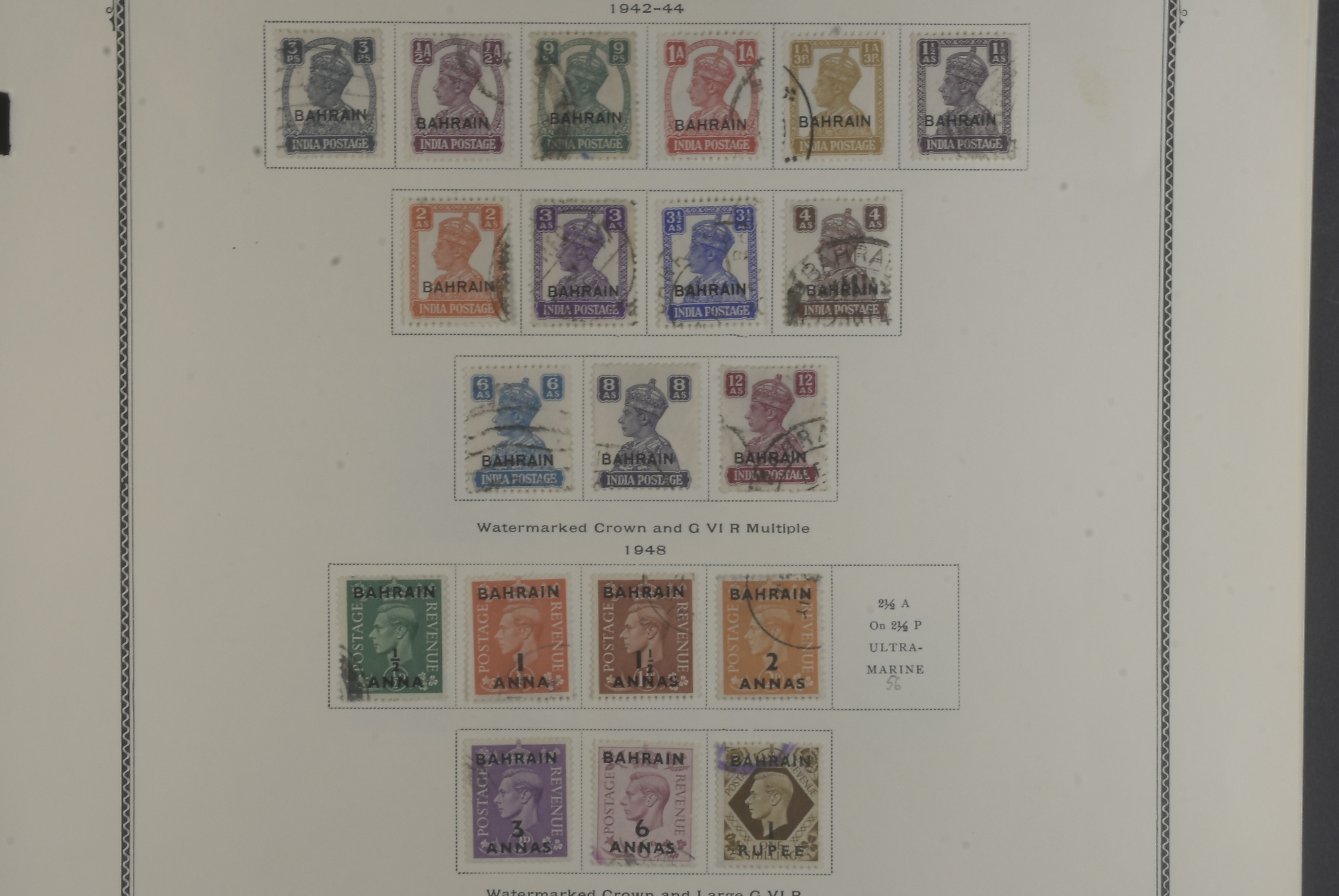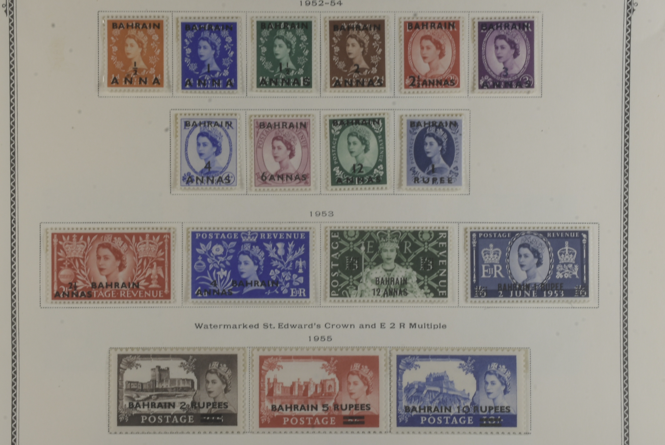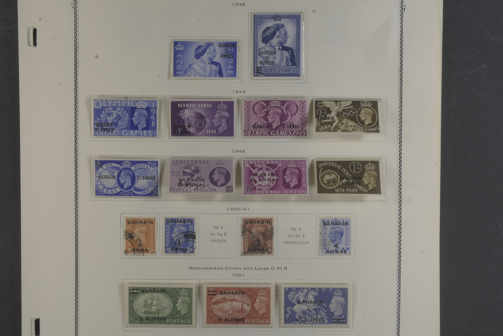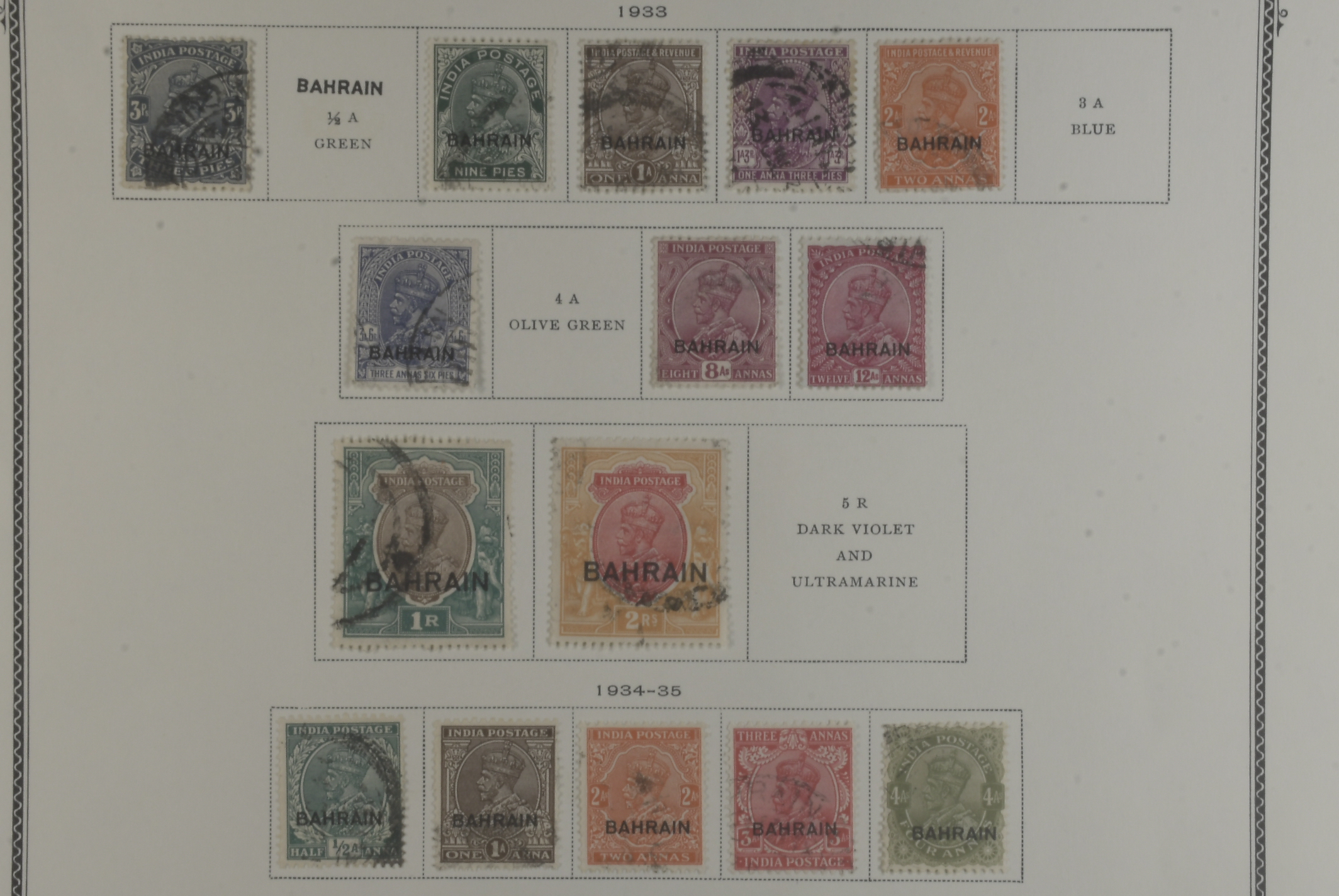 Bahrain. Collection ★★/⊙ 1933–1961 on nine leaves. KGV through 1961 inc plenty of high values, virtually complete MNH silver weddings onwards, similarly QEII through to 1960/64 MNH and the Locals/definitives of 53/6, 57 and 1961 sets. Good quality.