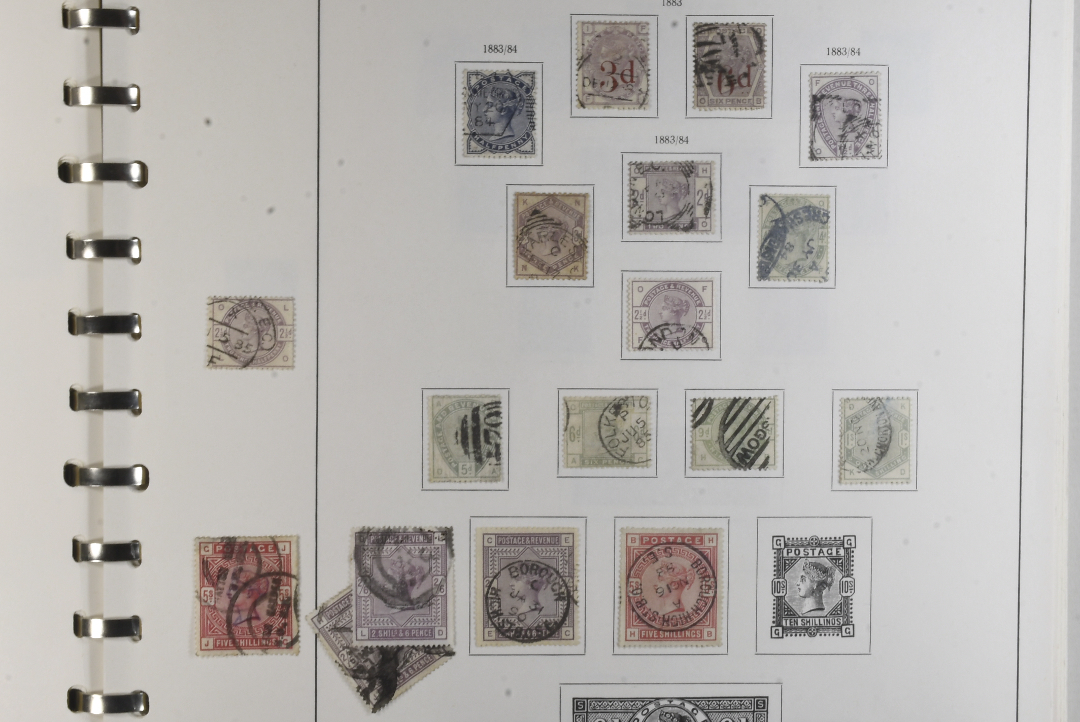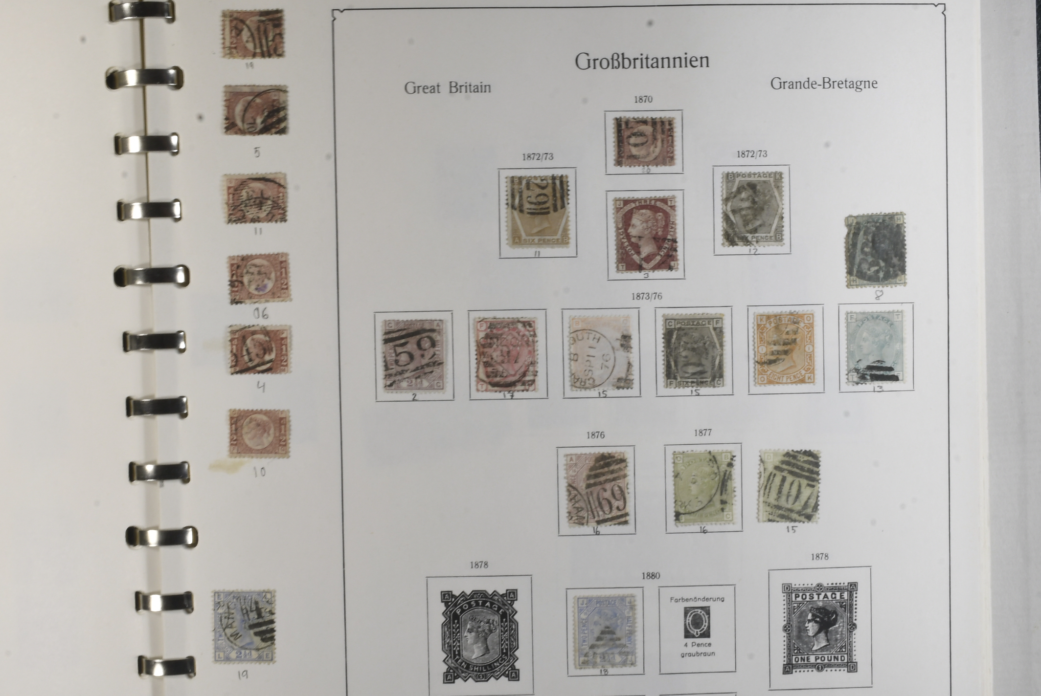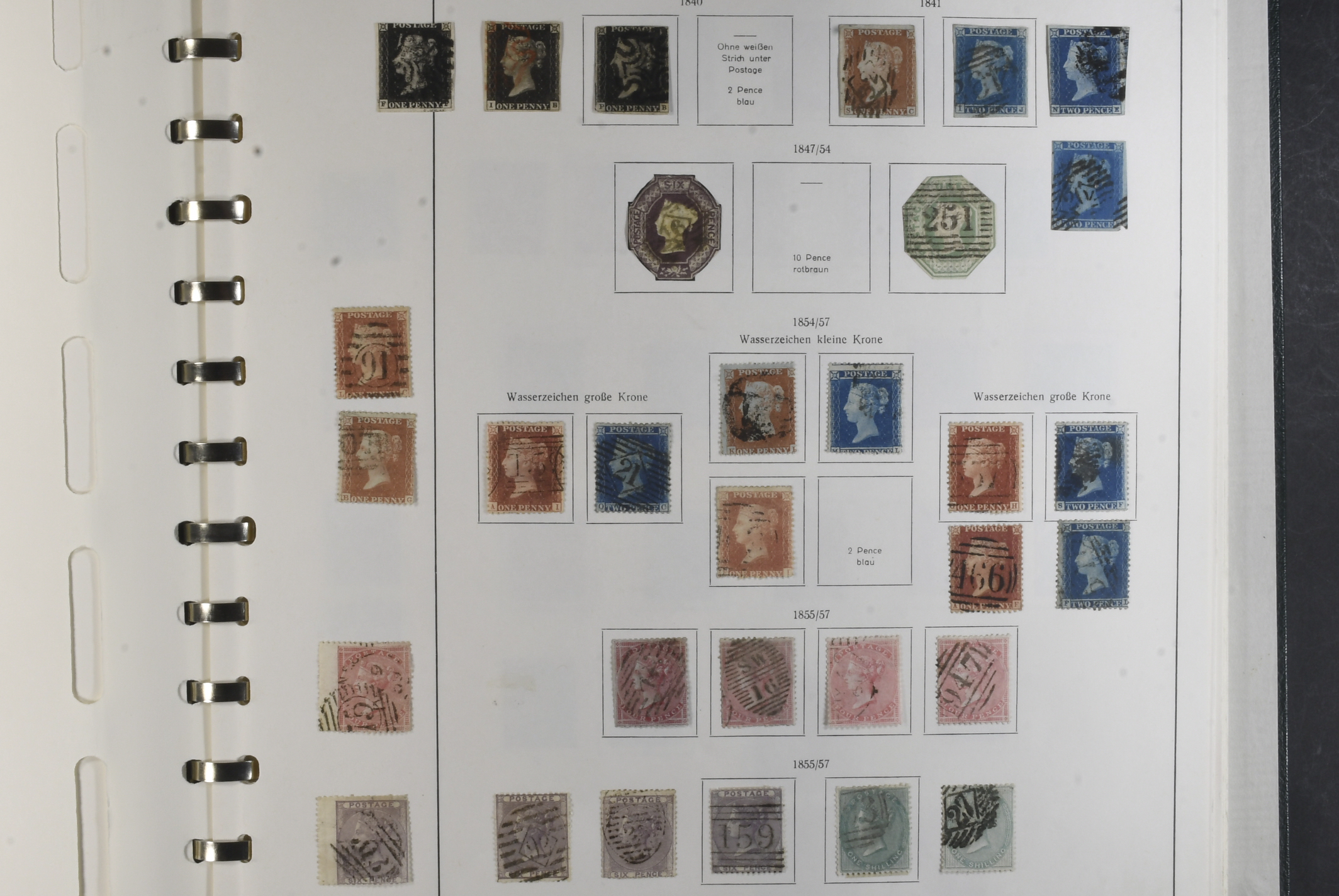 Britain. Collection used 1840–1976 in album. Starts with two copies of 'Penny Black' and a good section of early Queen Victoria issues. Also some revenues from the period. Includes a few pagesw with plated stamps and a mourning cover franked with Mi 11 and Mi 18 I. Mostly good quality. (>400)