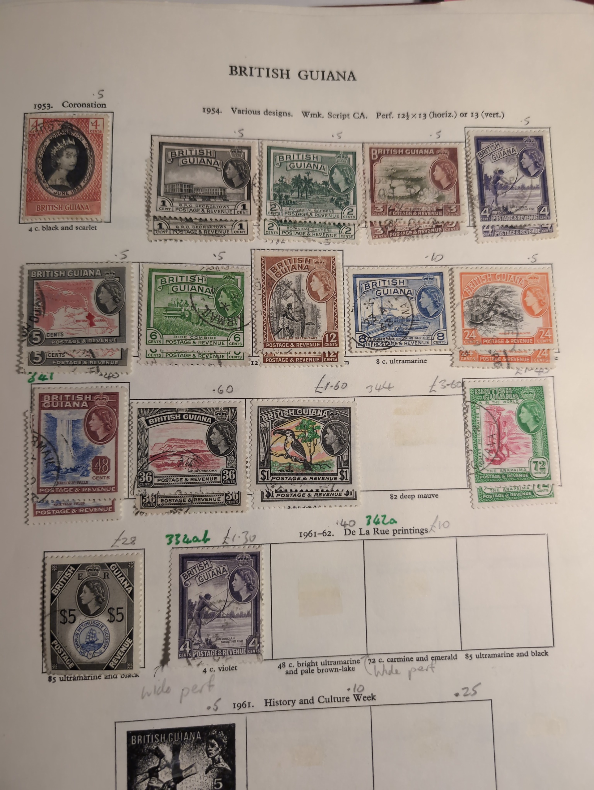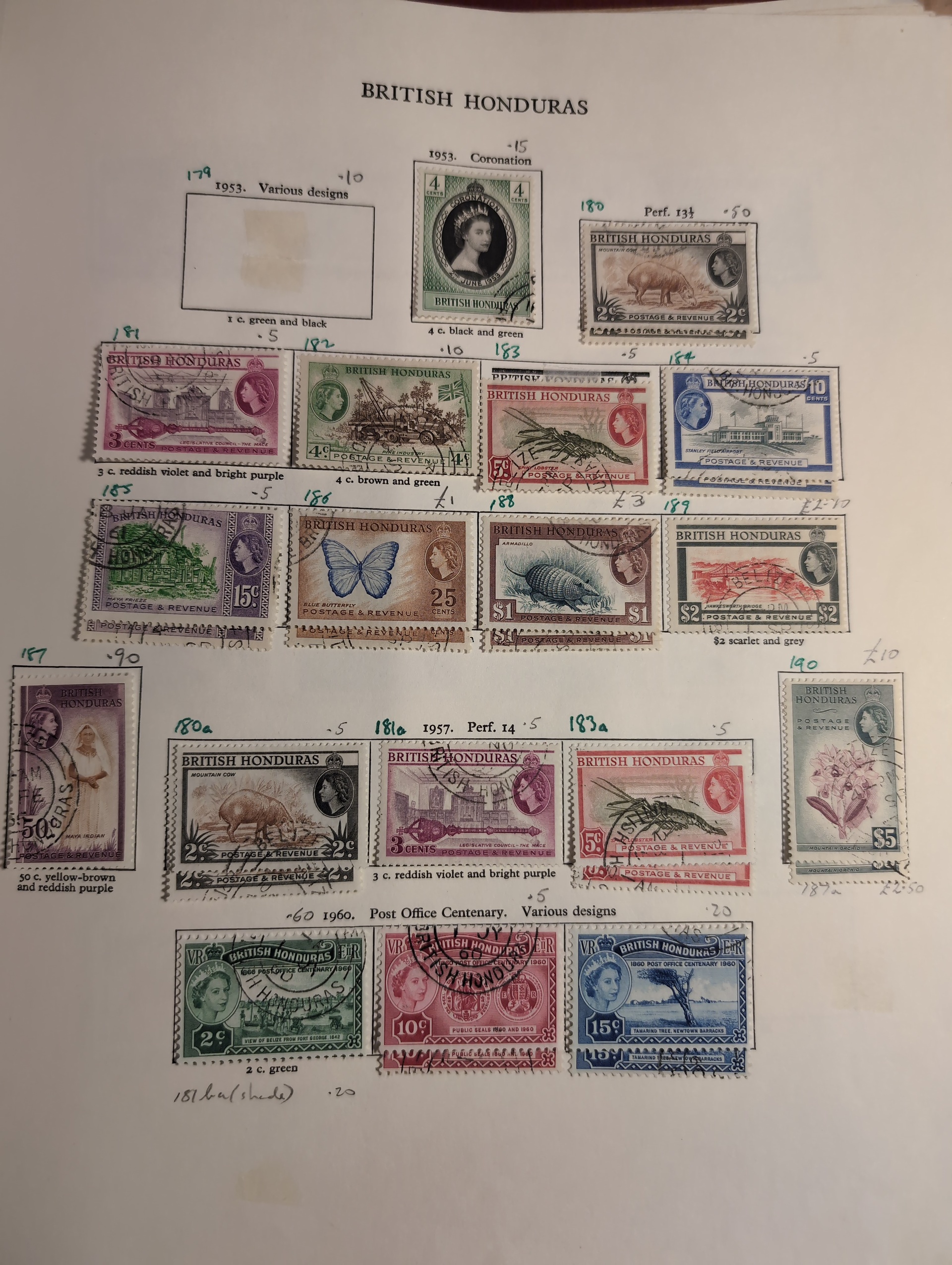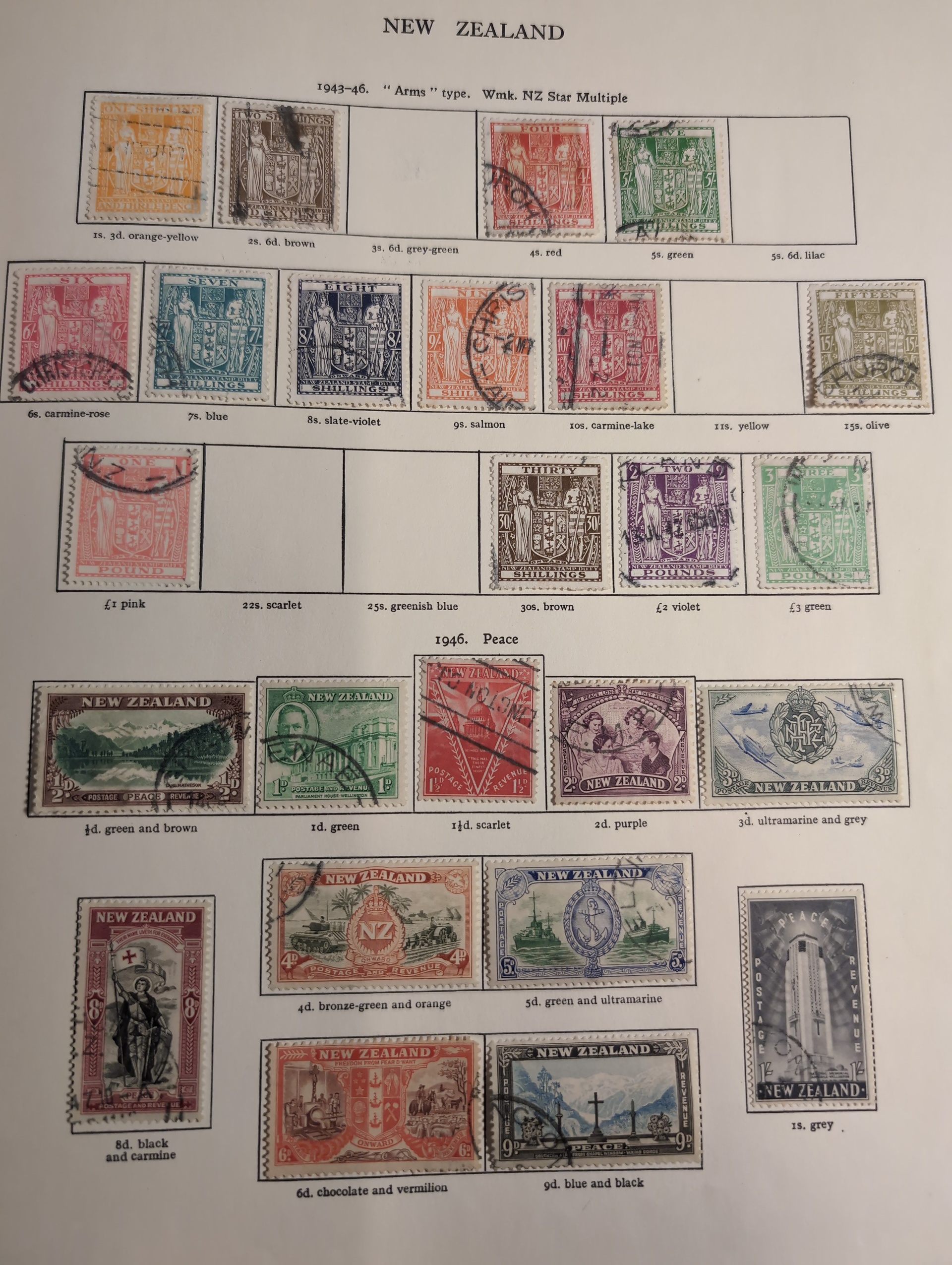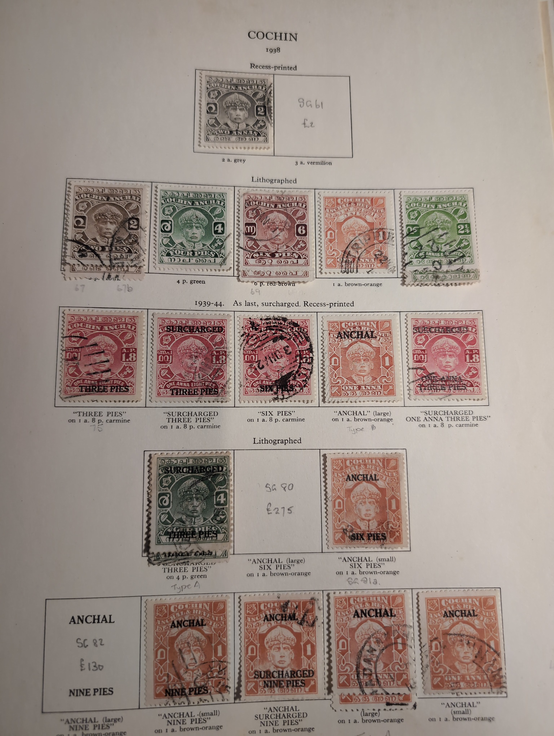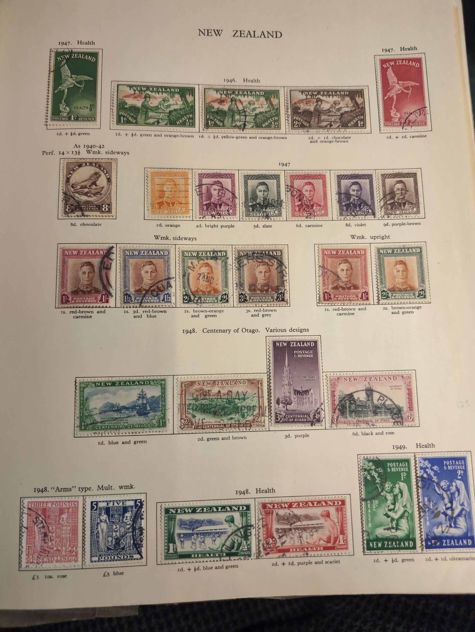 British commonwealth. Accumulation ★/⊙ 1880s–1980s in box. Five old albums incl. two New Age and two Favourite. incl. many QEII sets and part sets and some shades, many better used NZ KGVI era, better used Cochin incl. SG 70, 81a, 103, one album with Domonica collection with much UM. Please see a selection of scans at www.philea.se. Somewhat mixed quality. Approx. 8 kg. (1000s)