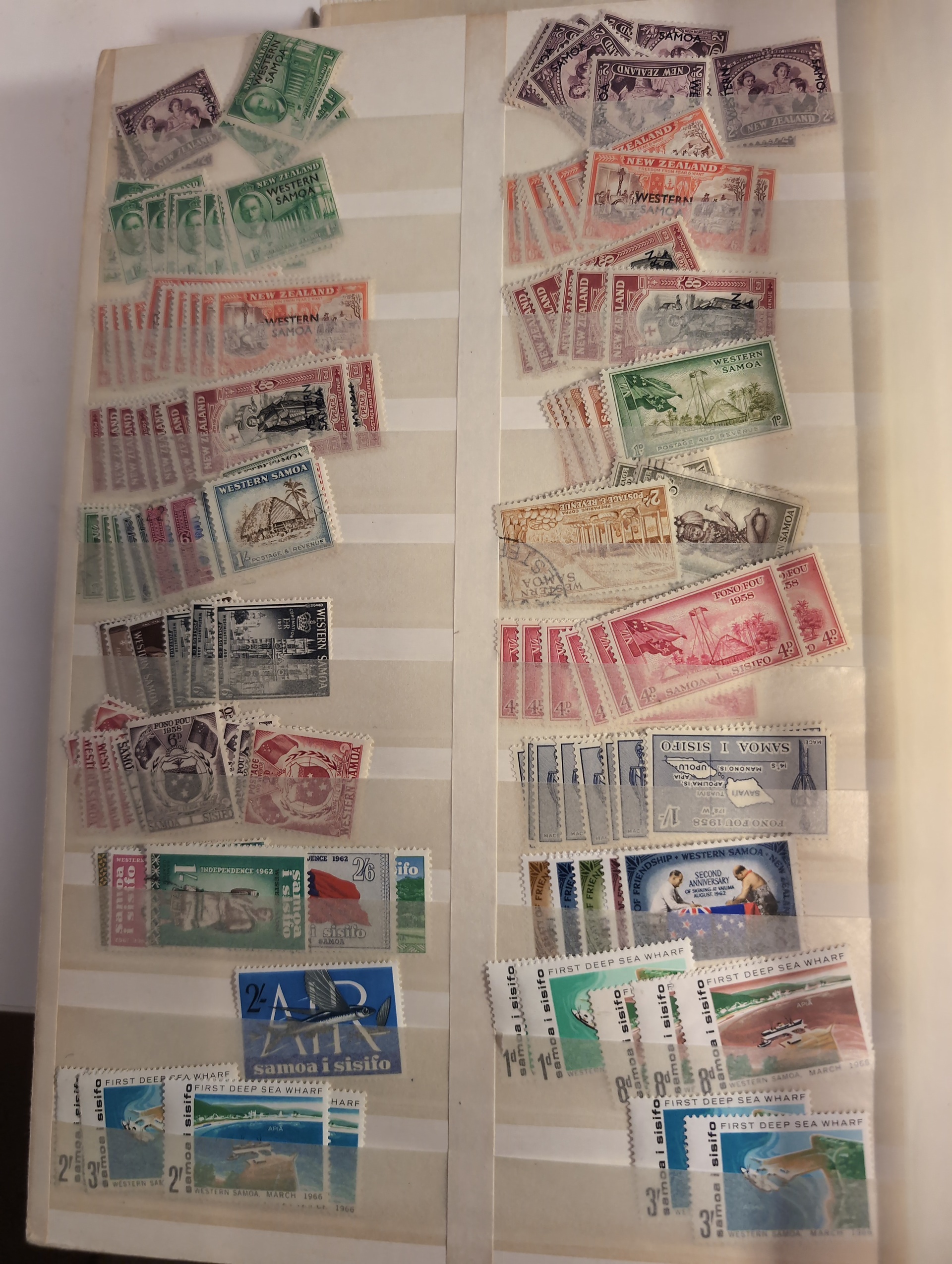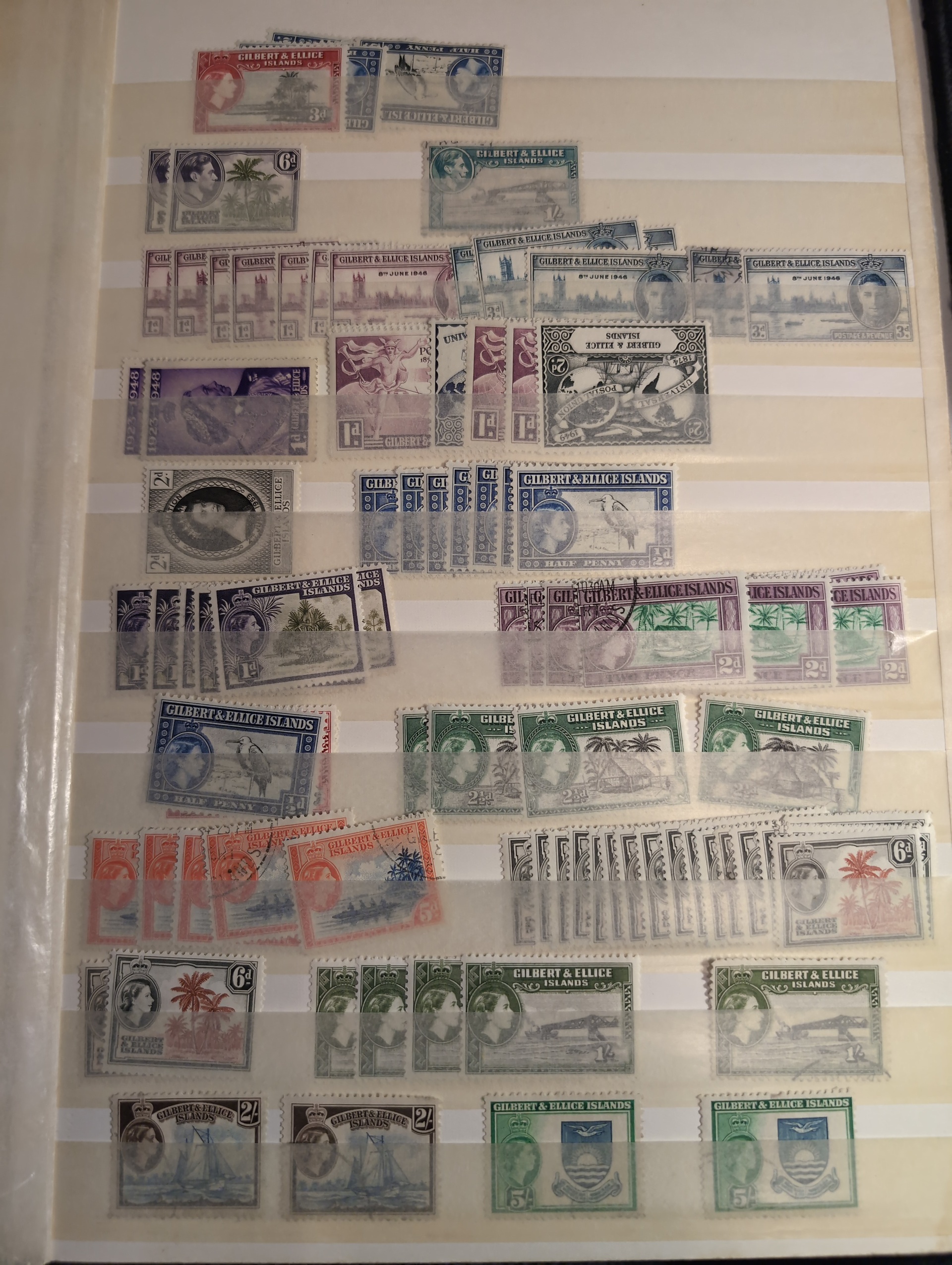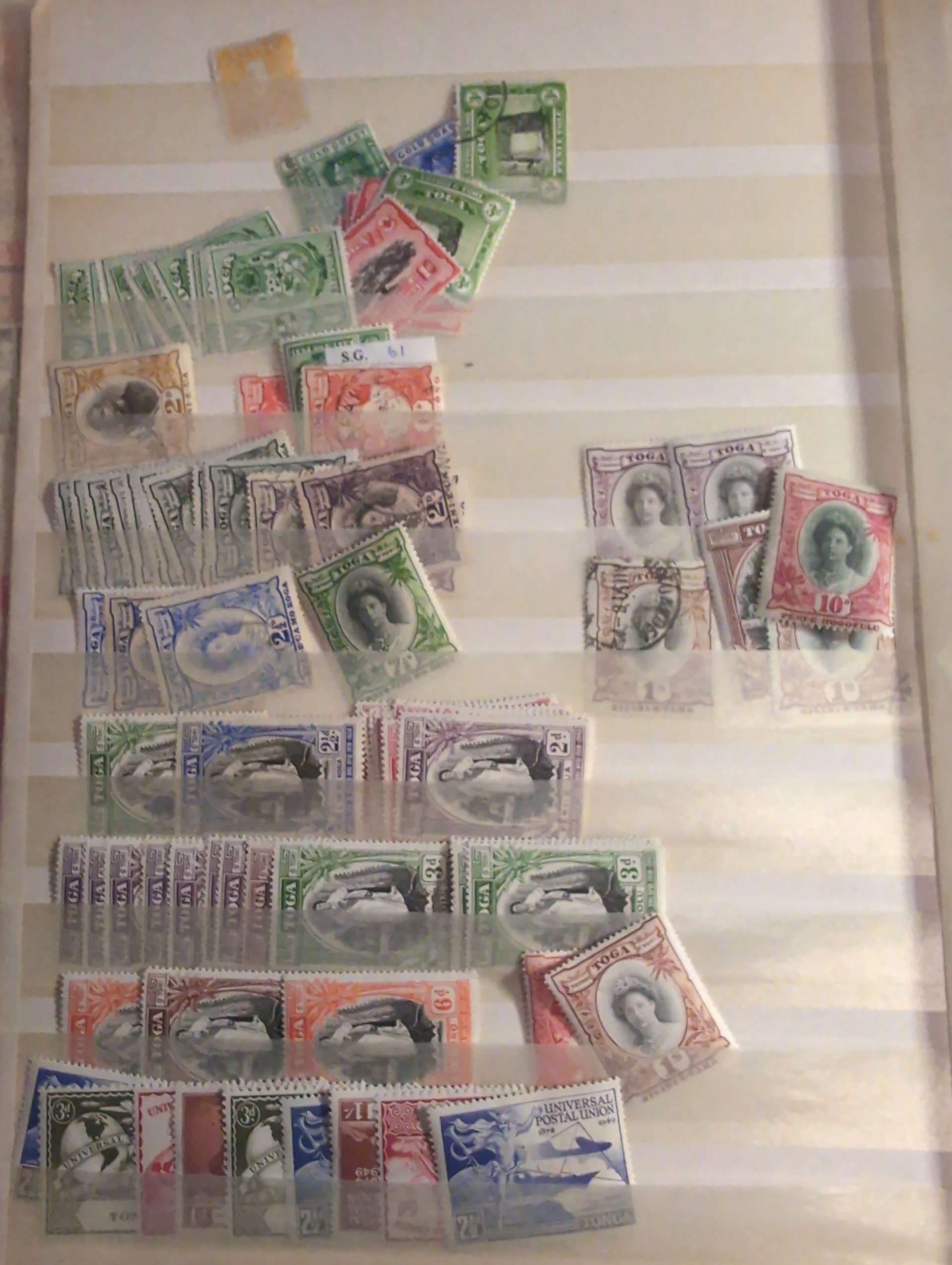 British commonwealth. Accumulation ★★/★ 1880s–1980s on stockbook pages. Duplicates stock with south pacific islands incl. Kiribati, Gilbert & Ellice Is, Tuvalu, Tonga, and Samoa. Good quality. (1000s)
