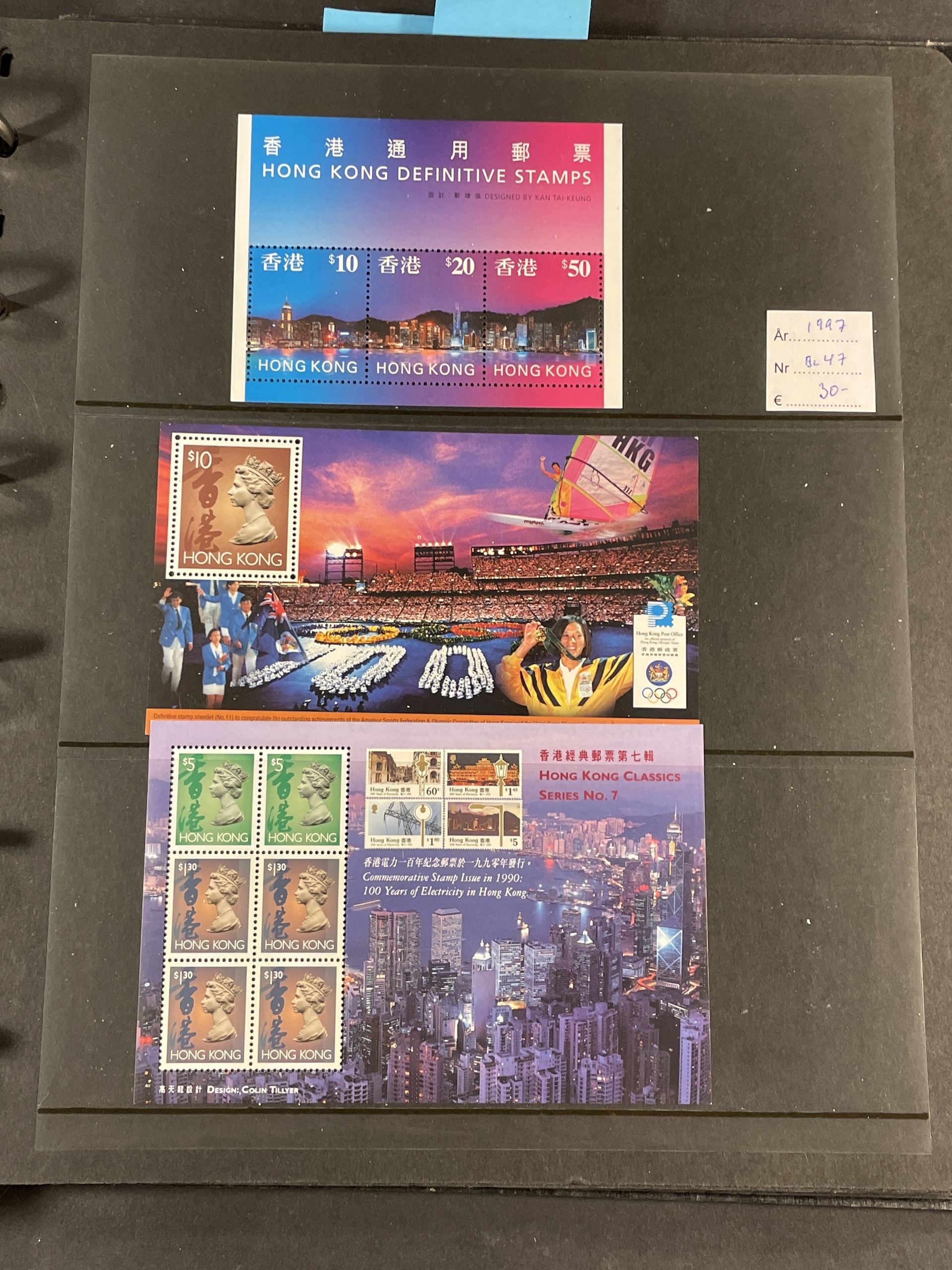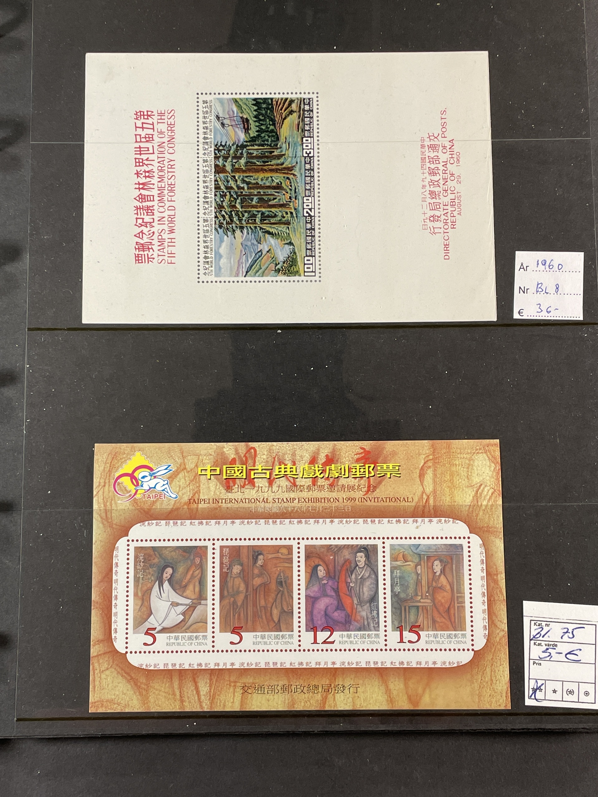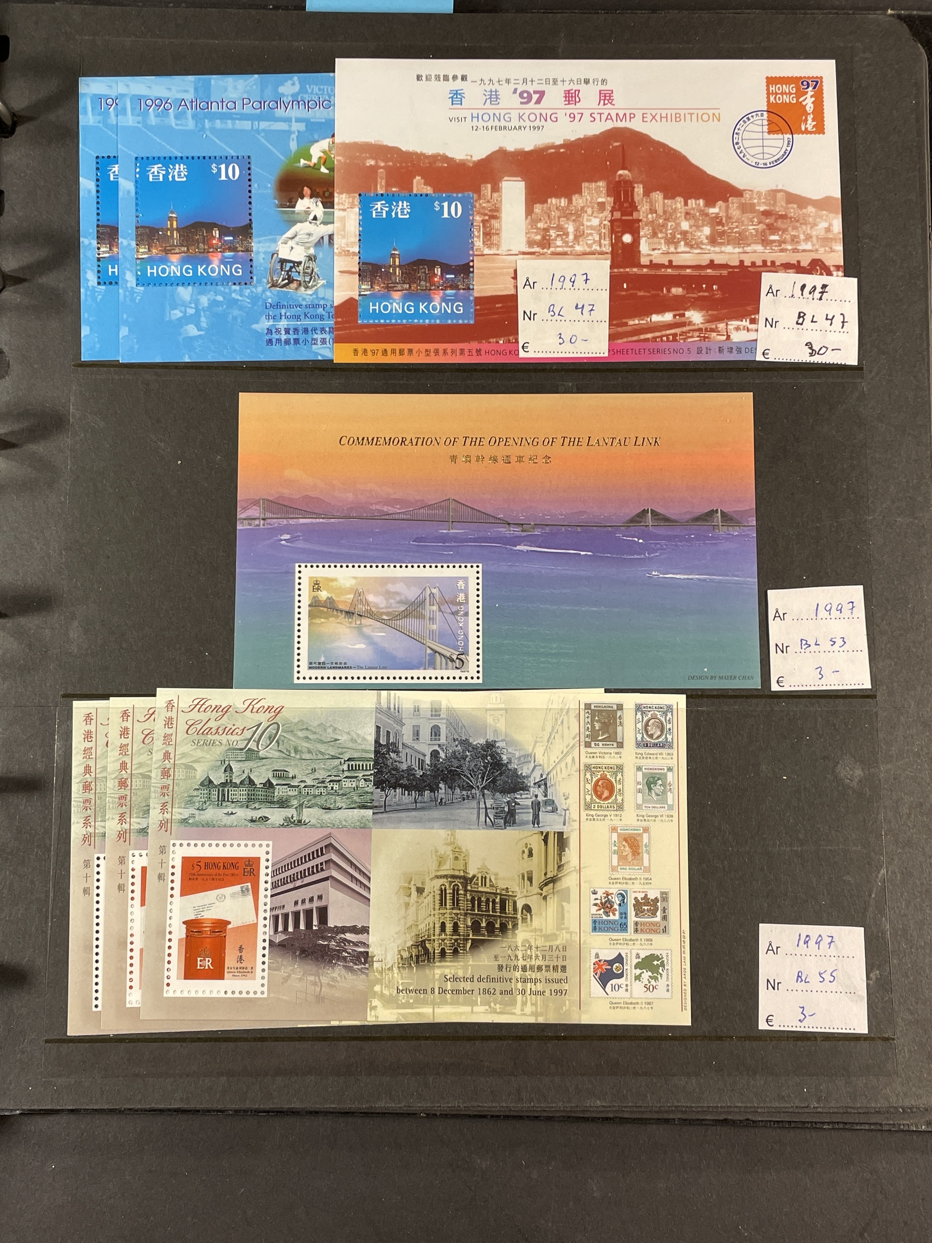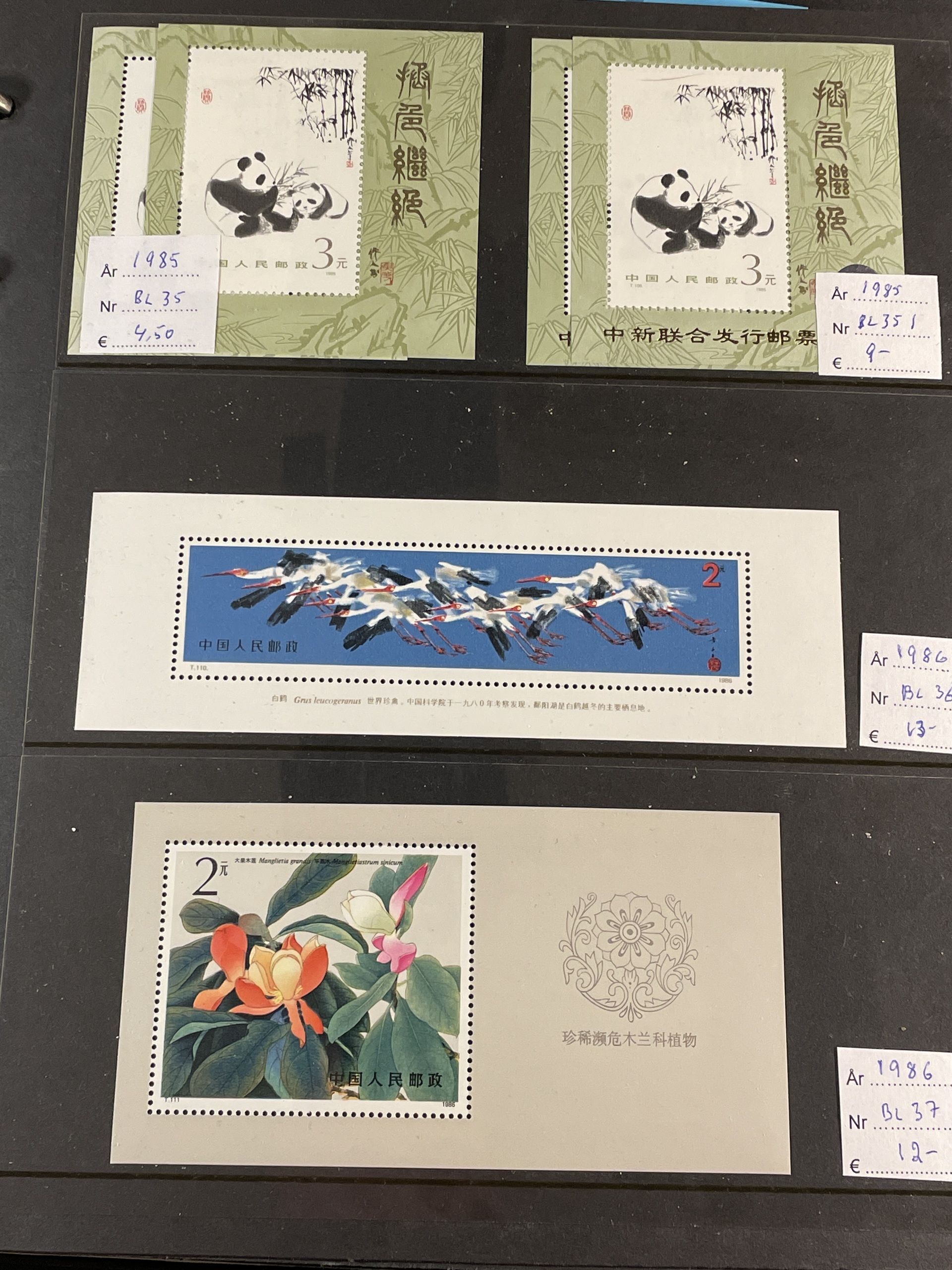 China, People’s Republic. ★★. Collection 1988–93 complete on Leuchtturm sheets, lot s/s 1984–2014 and lot mini sheets, all in three albums. Several a bit better as Emperor Qin Shi Huang set and s/s. Also some Hongkong and Macao s/s and Taiwan s/s 8 1960. Fine quality. Approx. 6 kg.