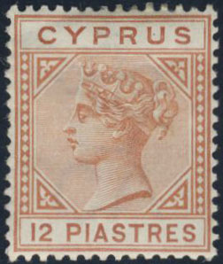 Cyprus. SG 37 ★, 1893 Queen Victoria 12 pi Orange-brown, watermark crown CA. GBP 200