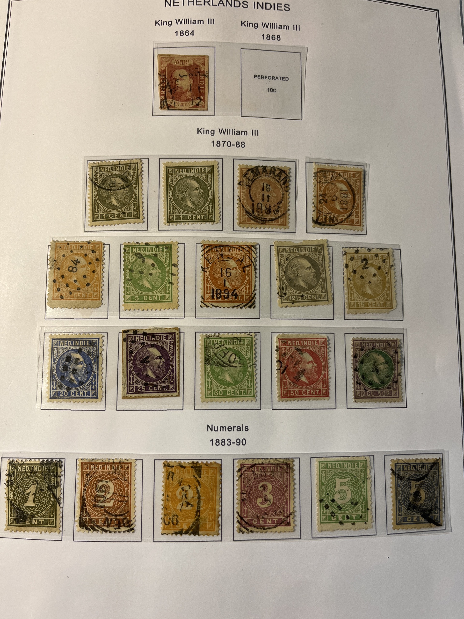 Dutch East Indies. Collection mostly used 1864–1948 on home-made fine leaves. Many stamps, some better. Please see a selection of scans at www.philea.se. Mostly fine quality.