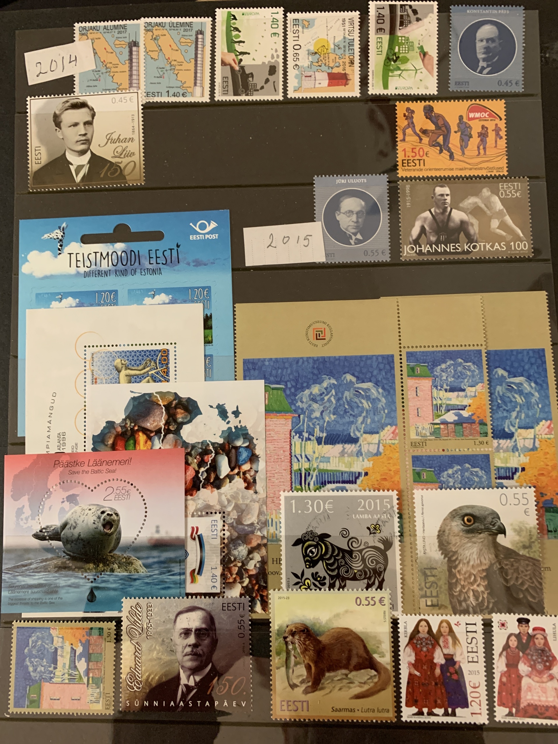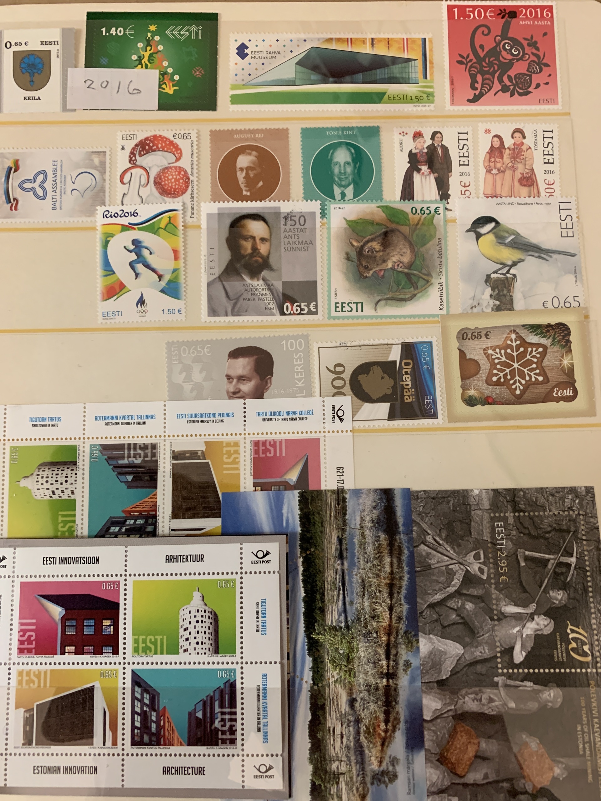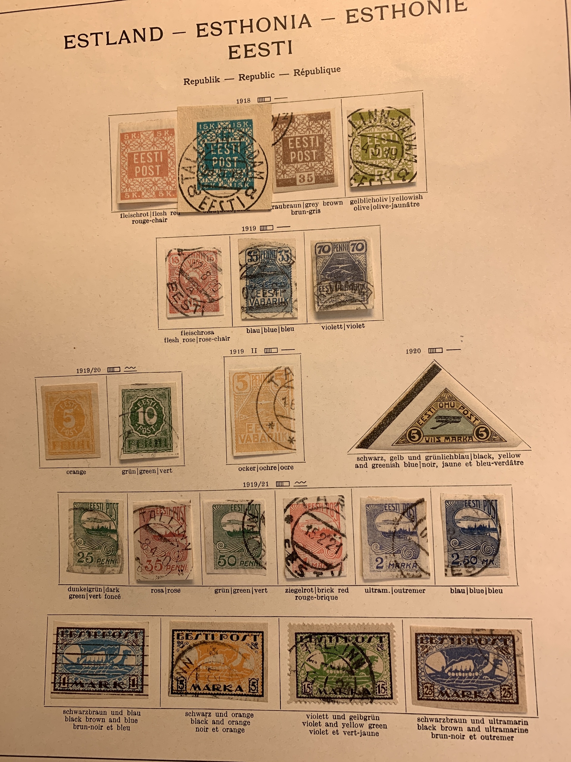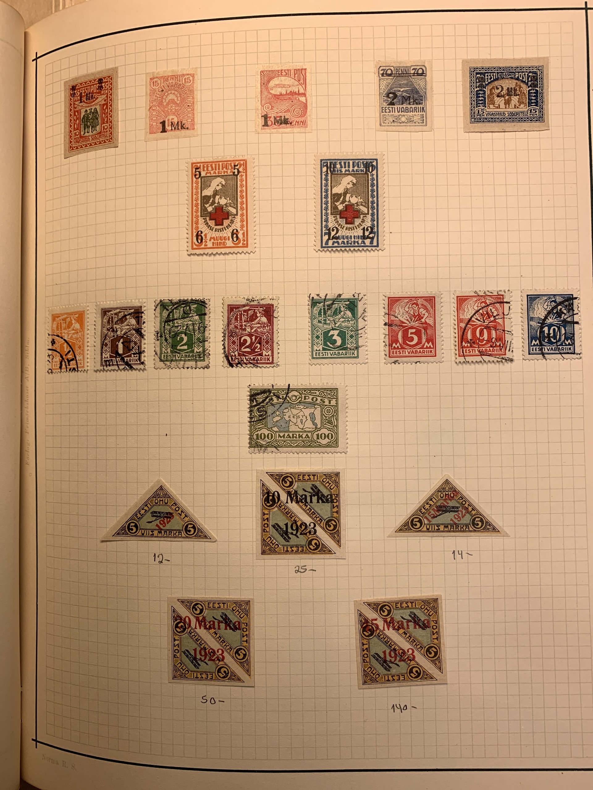 Estonia. ★★/★/⊙. Early material from 1918 onwards, cancelled, several varieties, also unused better sets from four older collections + Collection complete unmounted mint 1991-2013 (also 2014-2016 on loose leafs) in a black Davo album. Please see a selection of scans at www.philea.se.