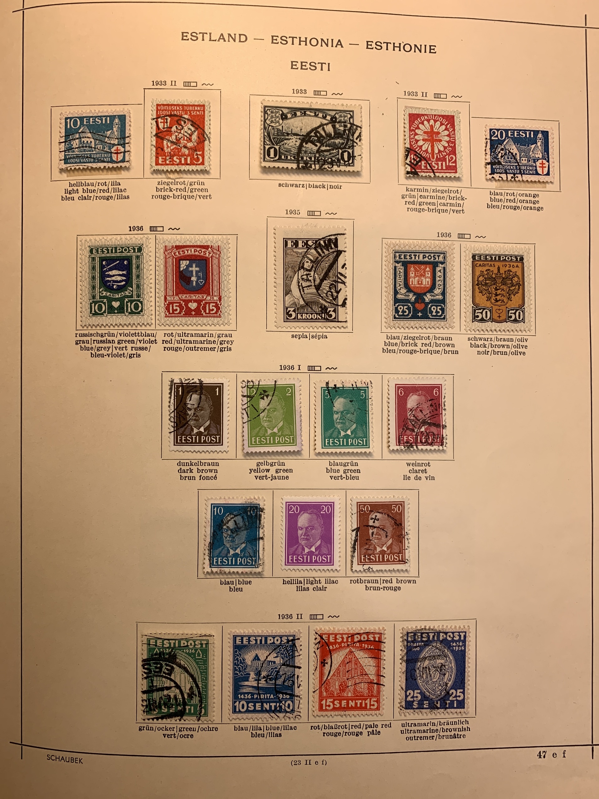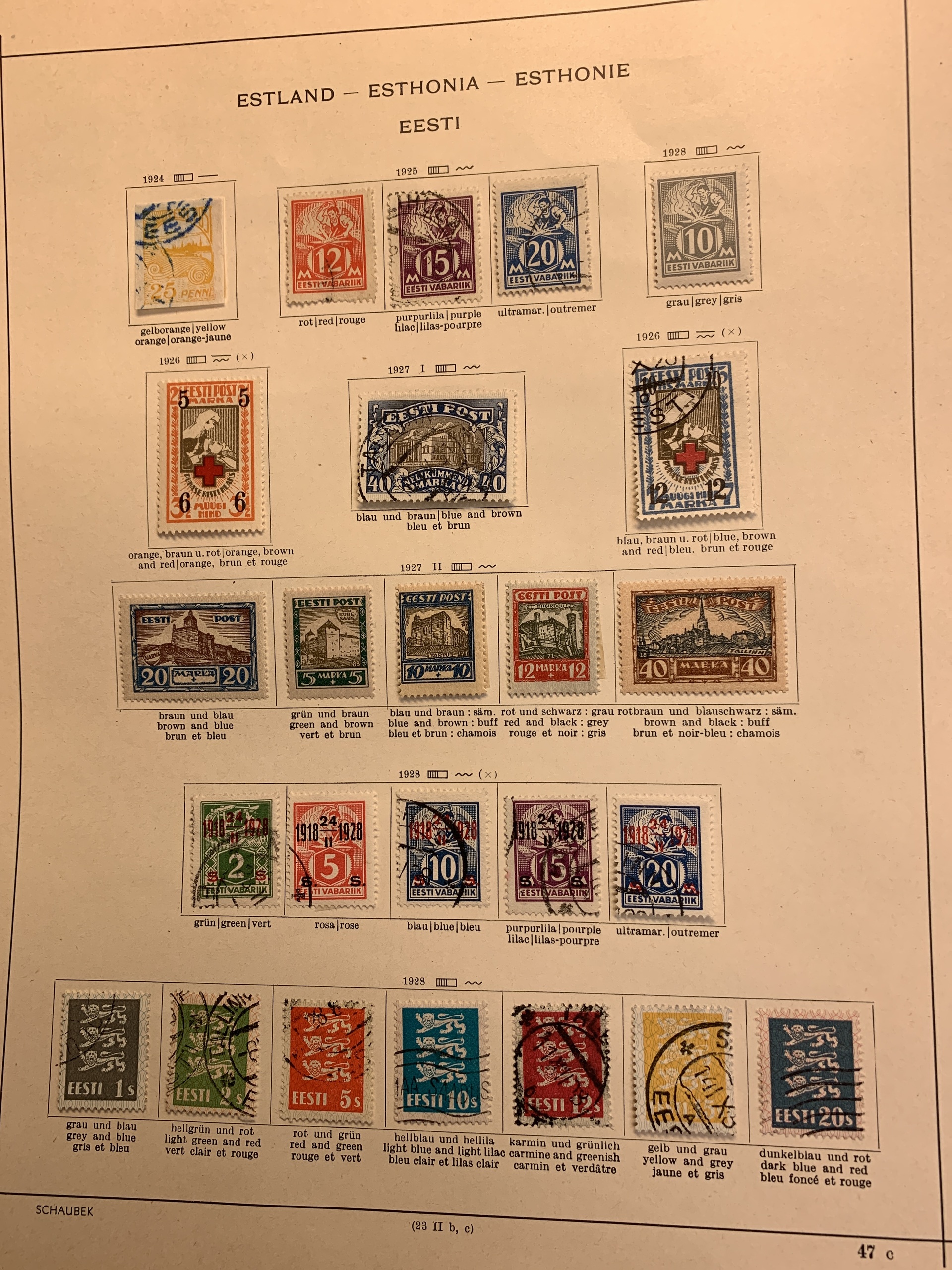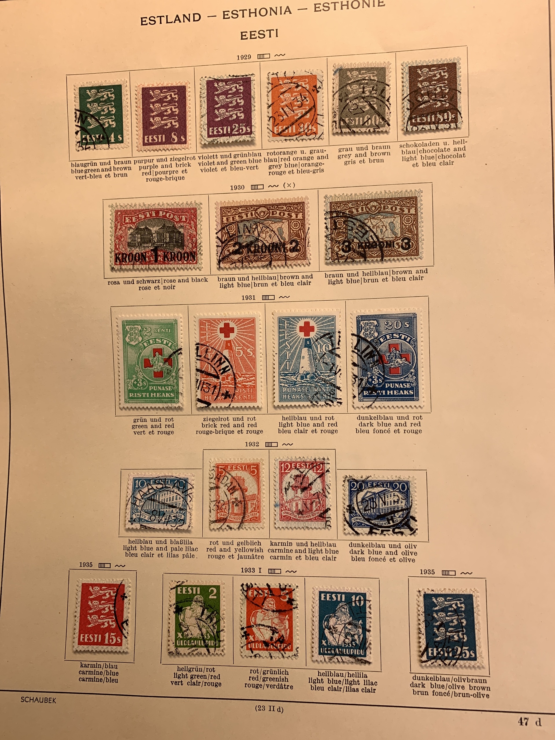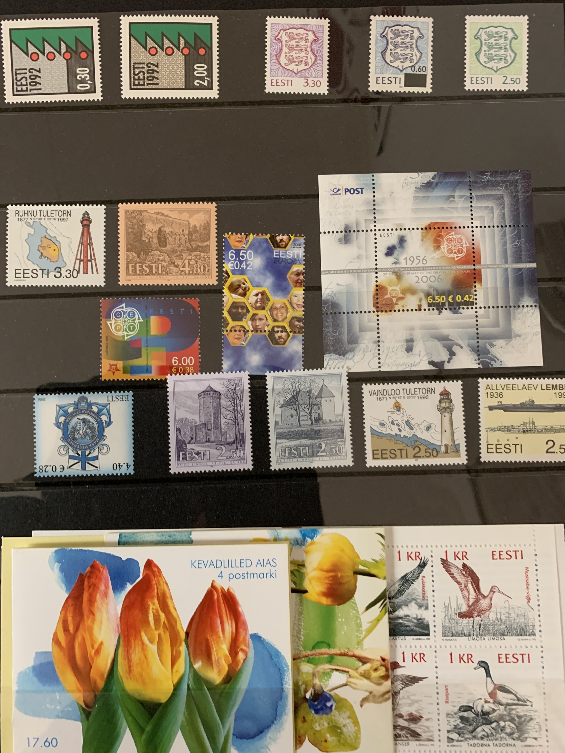 Estonia. ★★/★/⊙. Early material from 1918 onwards, cancelled, several varieties, also unused better sets from four older collections + Collection complete unmounted mint 1991-2013 (also 2014-2016 on loose leafs) in a black Davo album. Please see a selection of scans at www.philea.se.