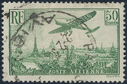 France. Michel 311a used, 1936 Aircraft 50 Fr yellow-green. EUR 320