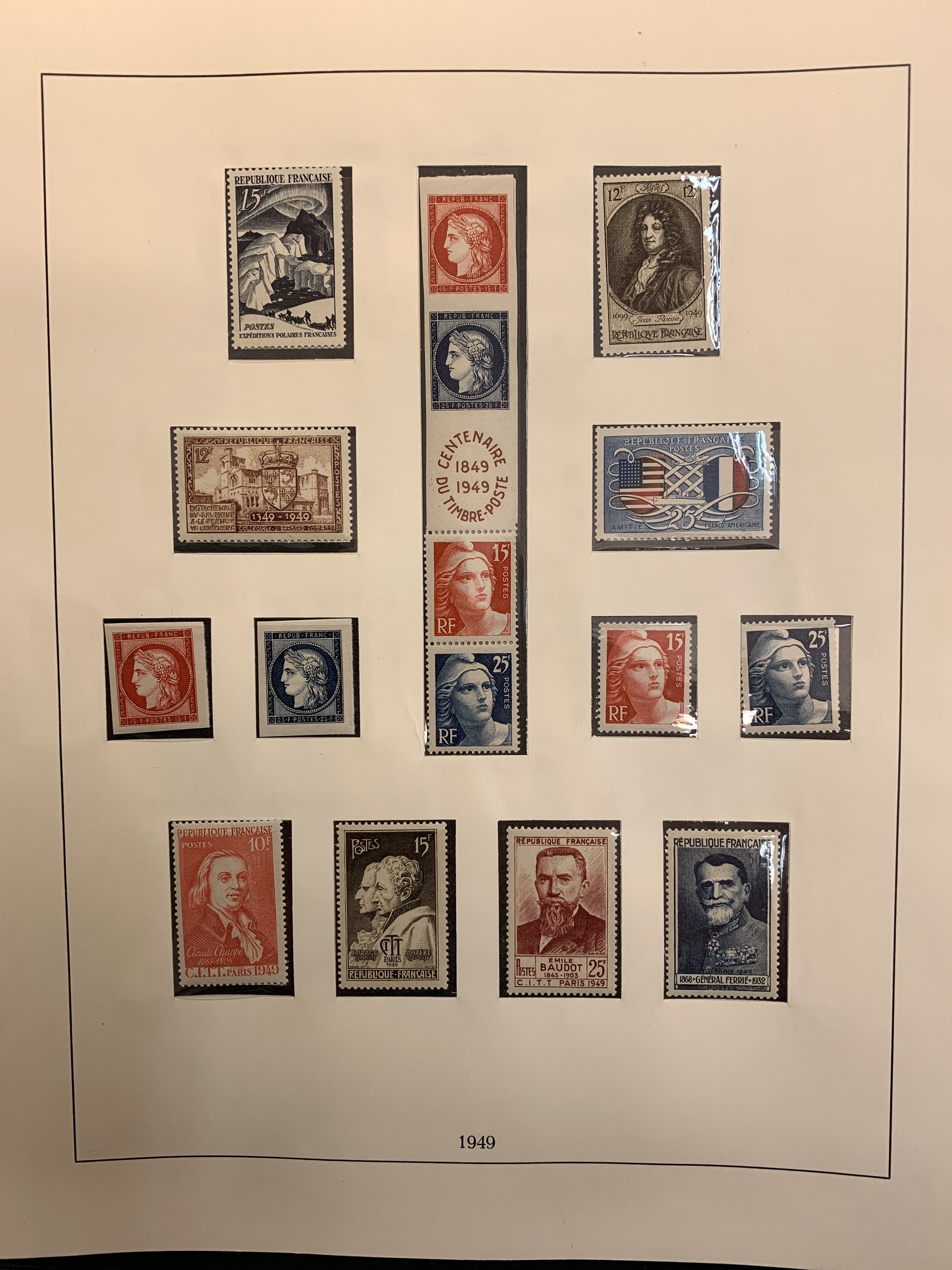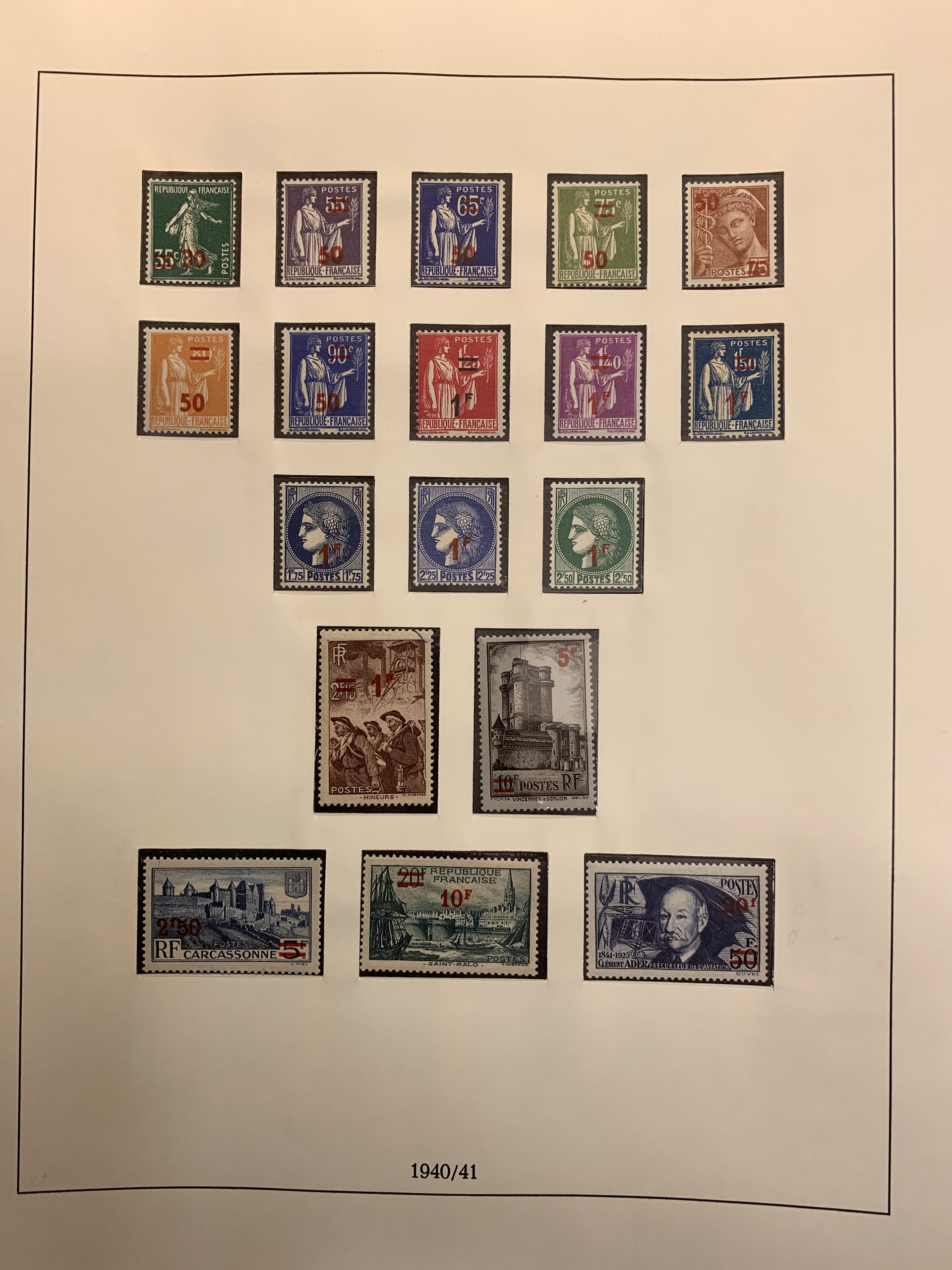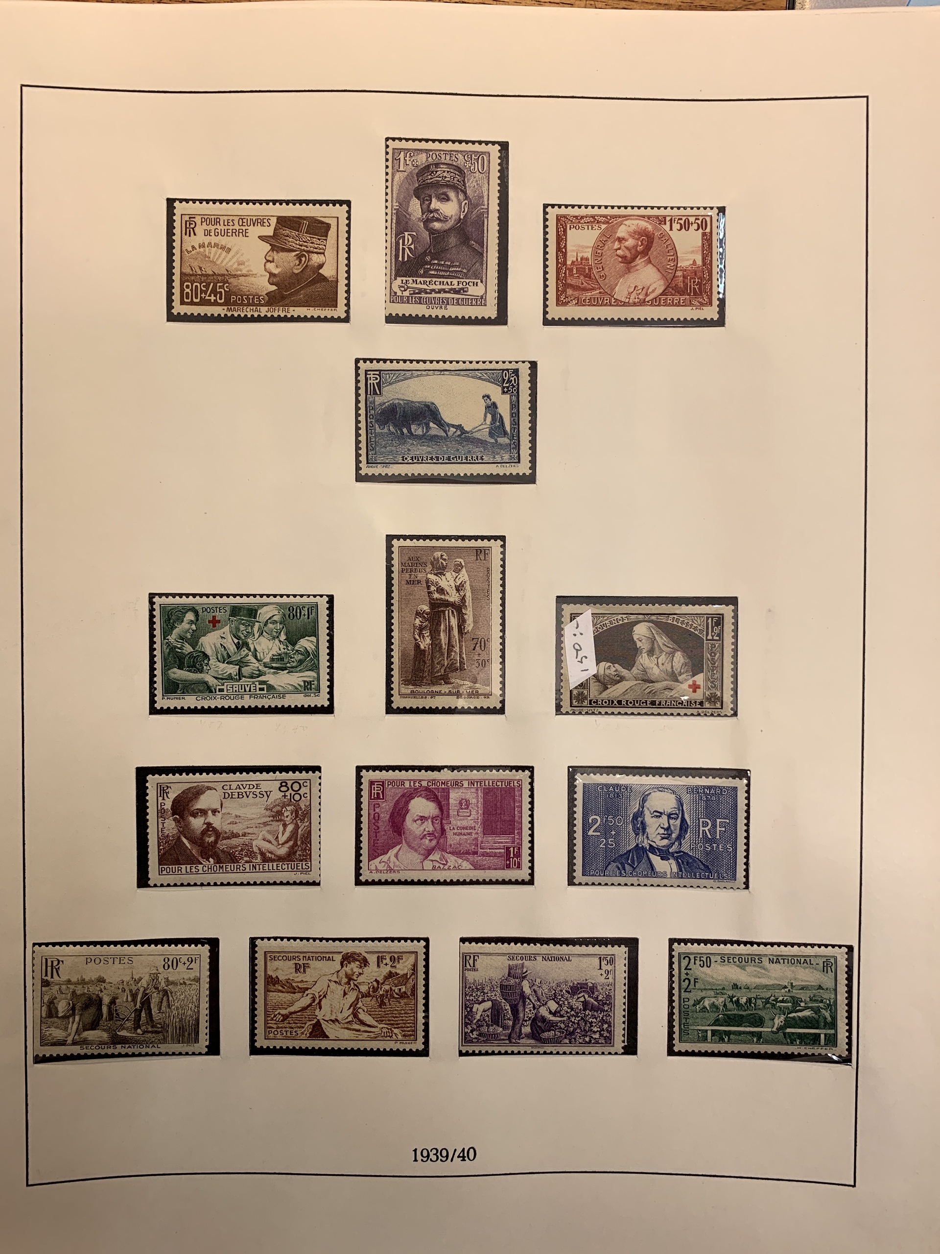 France. Collection mostly ★★ 1938–1954 in green Lindner album with pockets + small collection 1902–1936 unused *. Please see a selection of scans at www.philea.se.