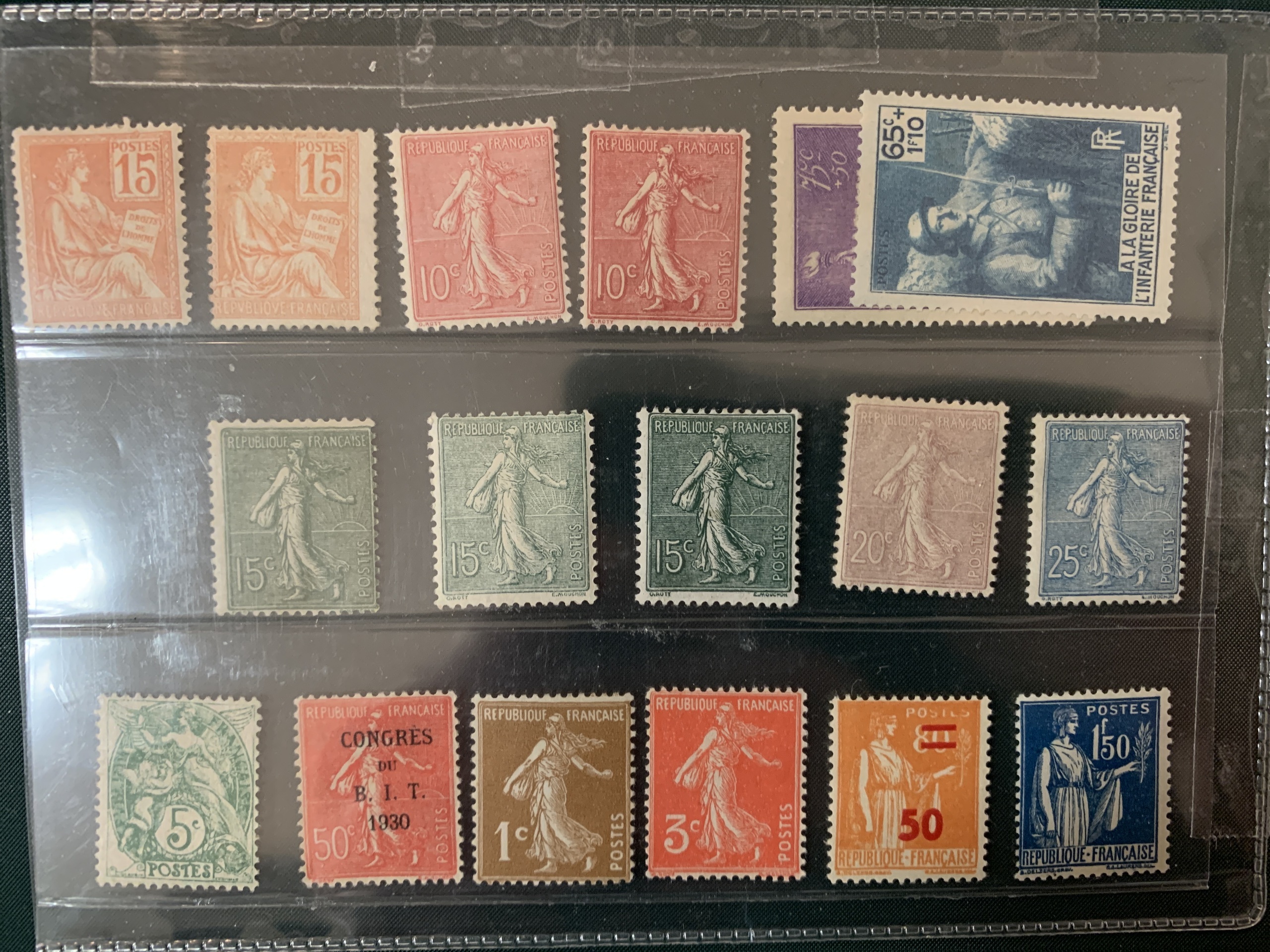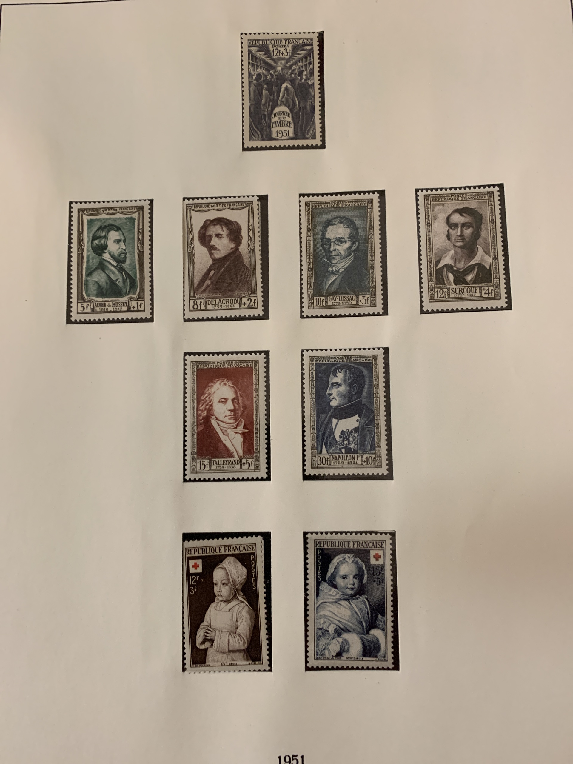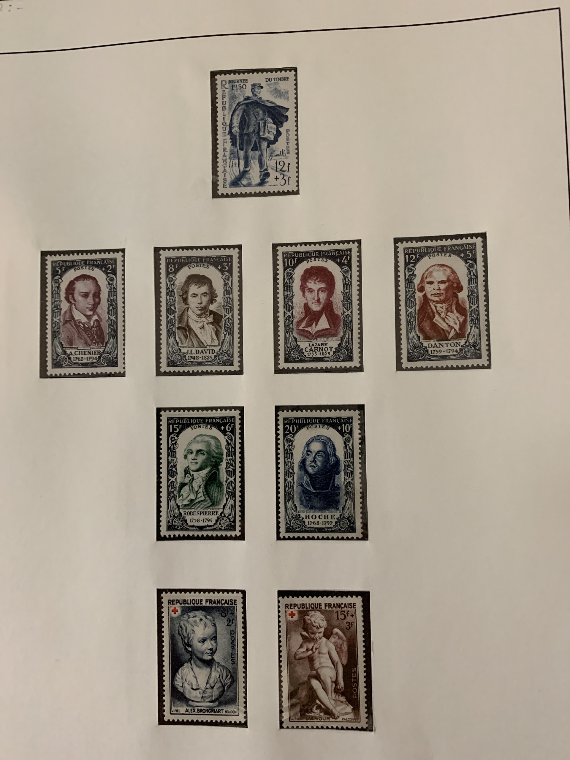 France. Collection mostly ★★ 1938–1954 in green Lindner album with pockets + small collection 1902–1936 unused *. Please see a selection of scans at www.philea.se.