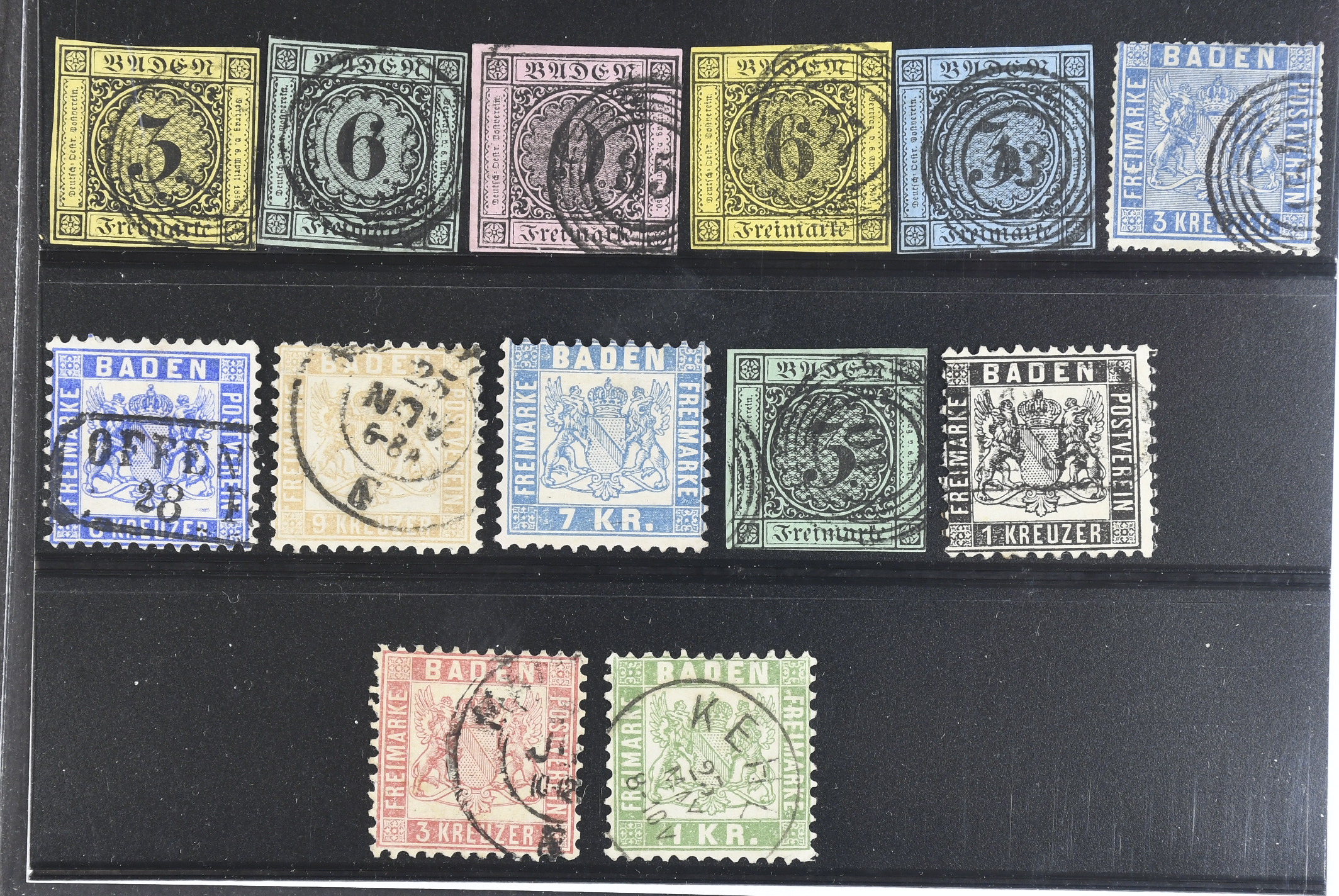 Germany, Baden. Used 1851-1868. All different, e.g. Mi 2-4, 7-8, 10, 14-15, 20, 25. Inferior quality. Mi € 500 (13)