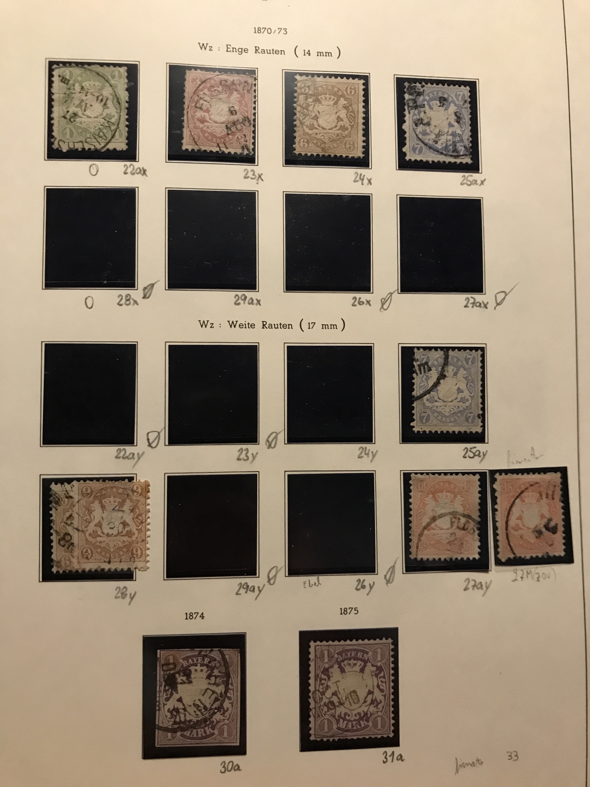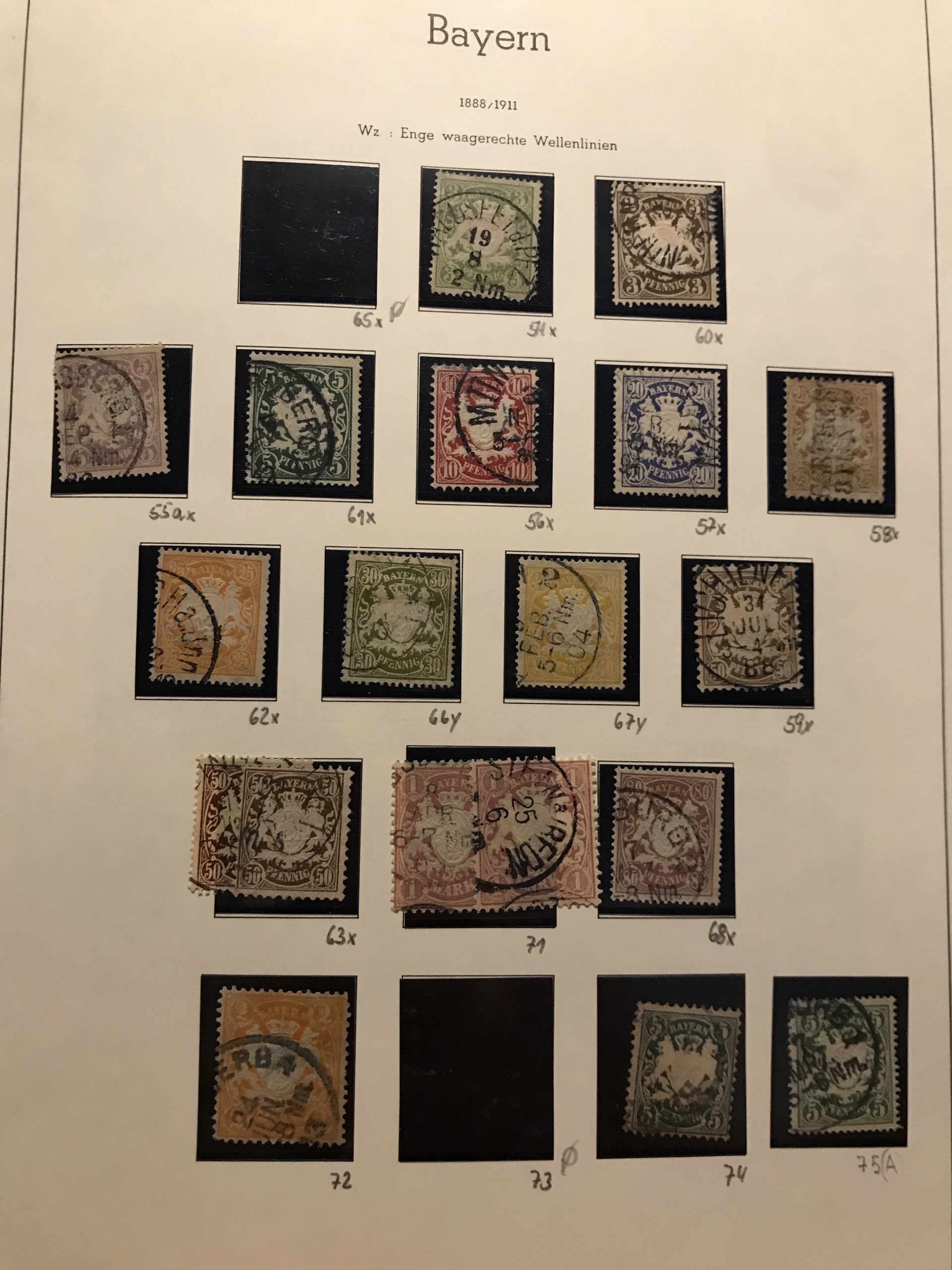 Germany, Bavaria. ★★/★/⊙. Collection 1849–1920 in Leuchtturm album. Mostly used but also often **/* parallell. Please see a selection of scans at www.philea.se. (>500)
