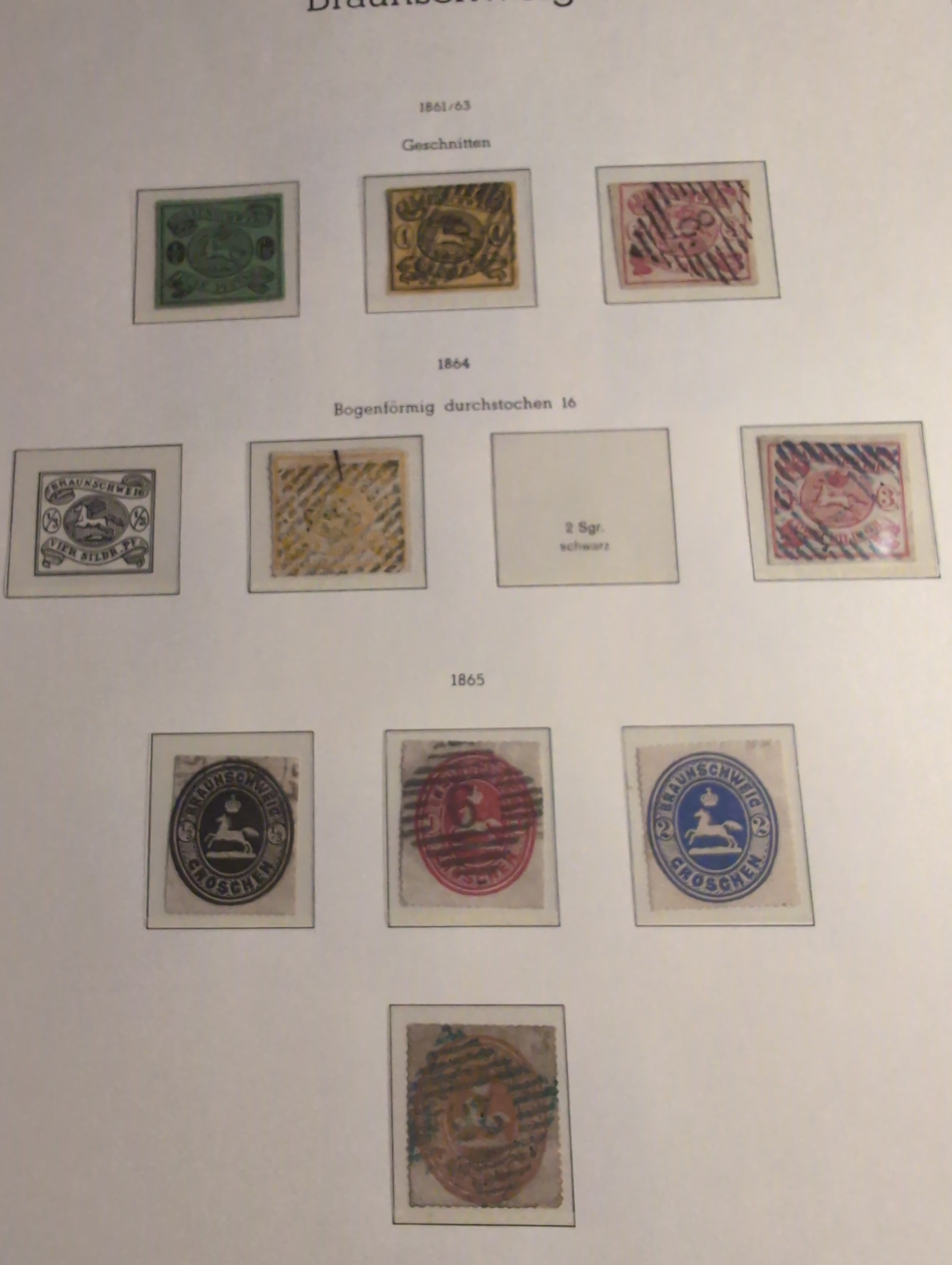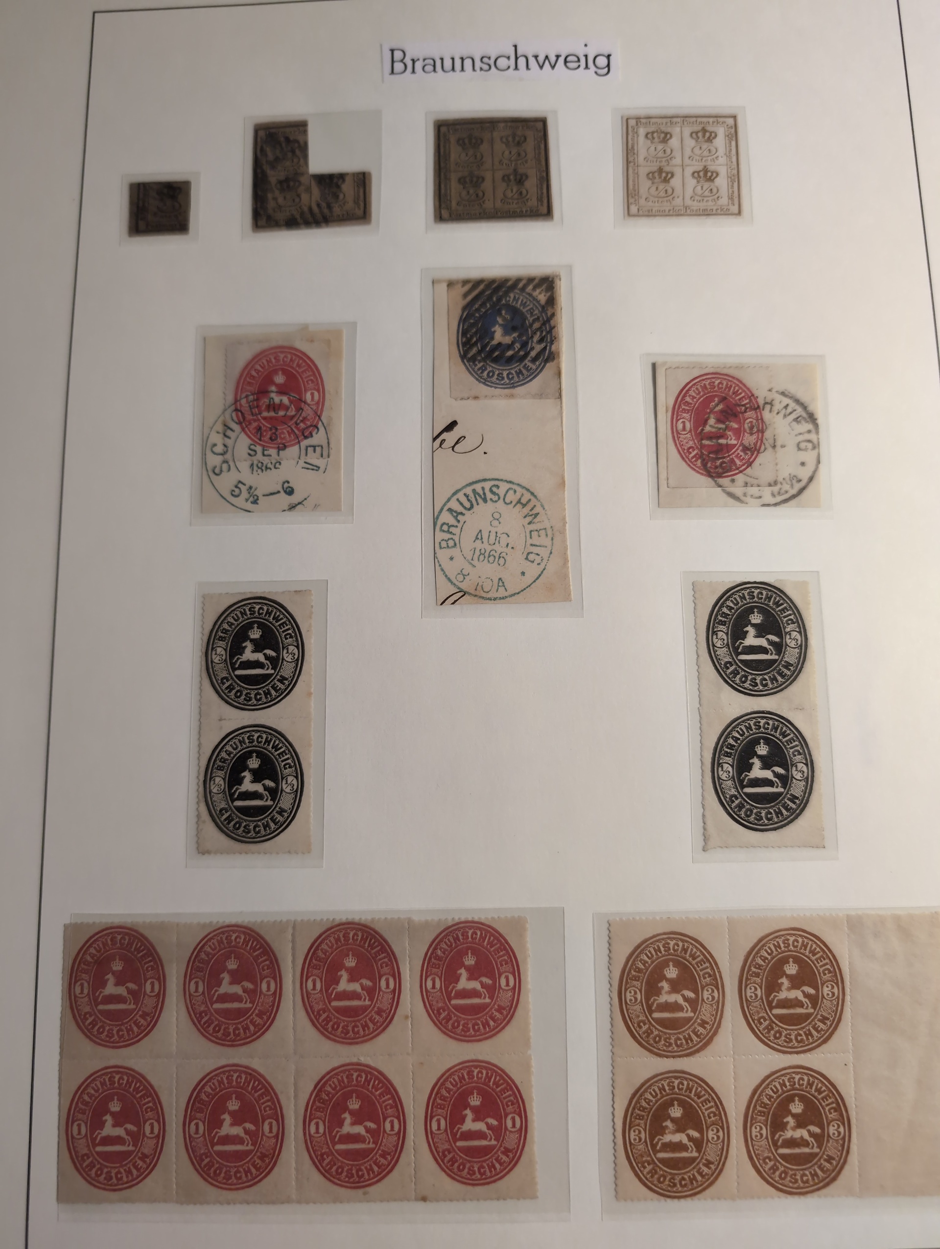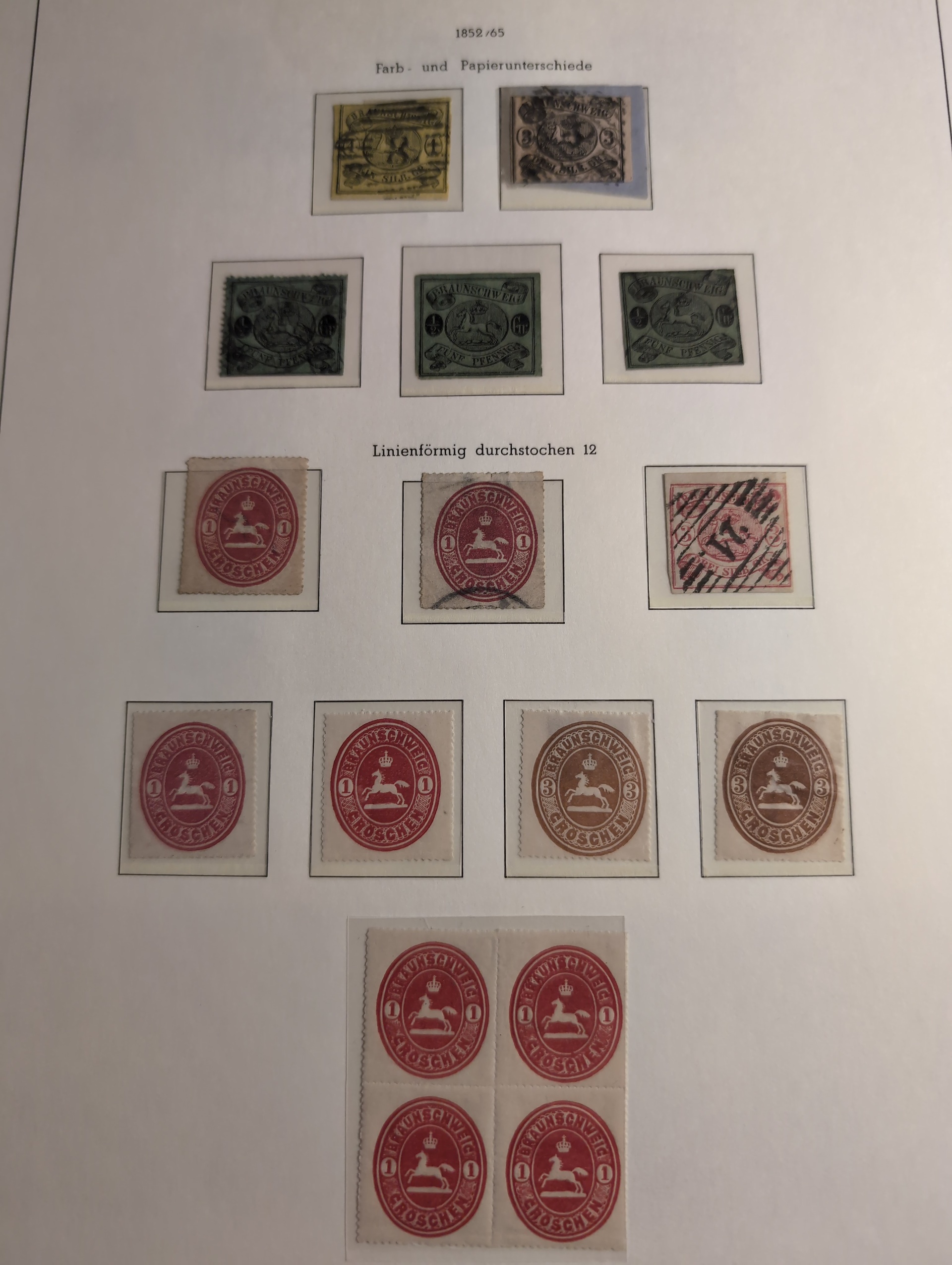 Germany, Braunschweig. Collection ★/⊙ 1852–1865 on leaves. Almost complete with some extra shedes and some units. The entire lot is presented at www.philea.se. Mixed quality. (c60)