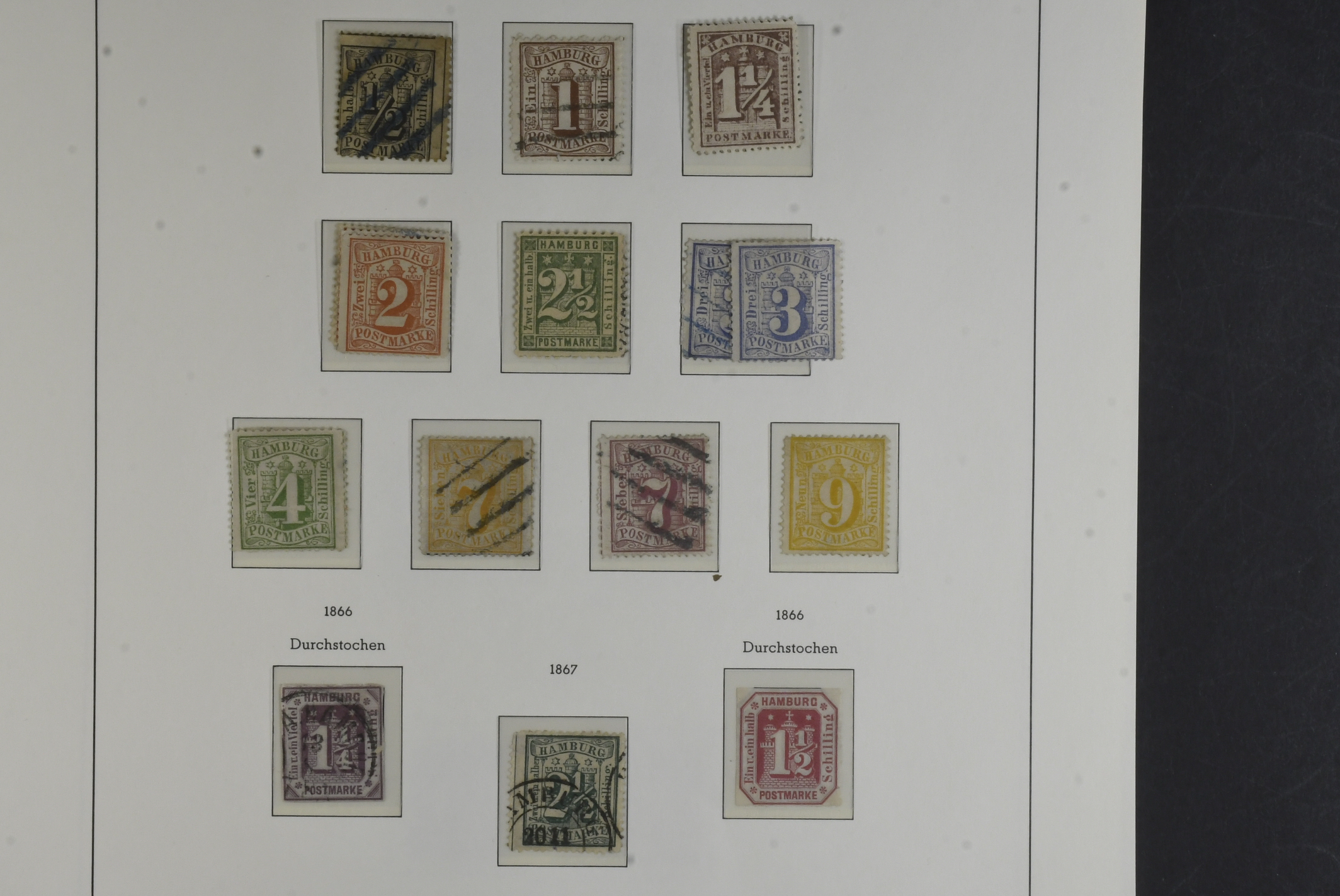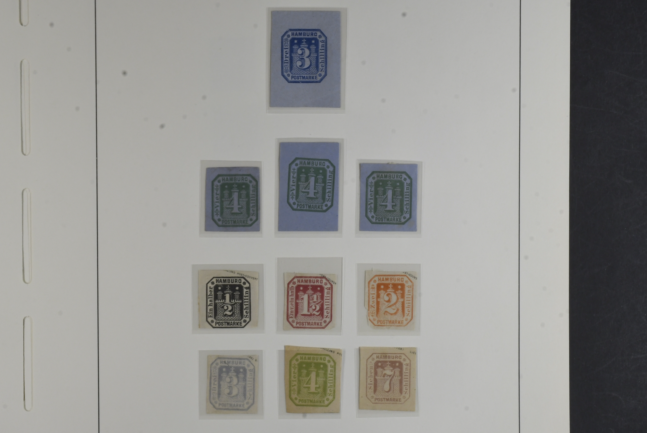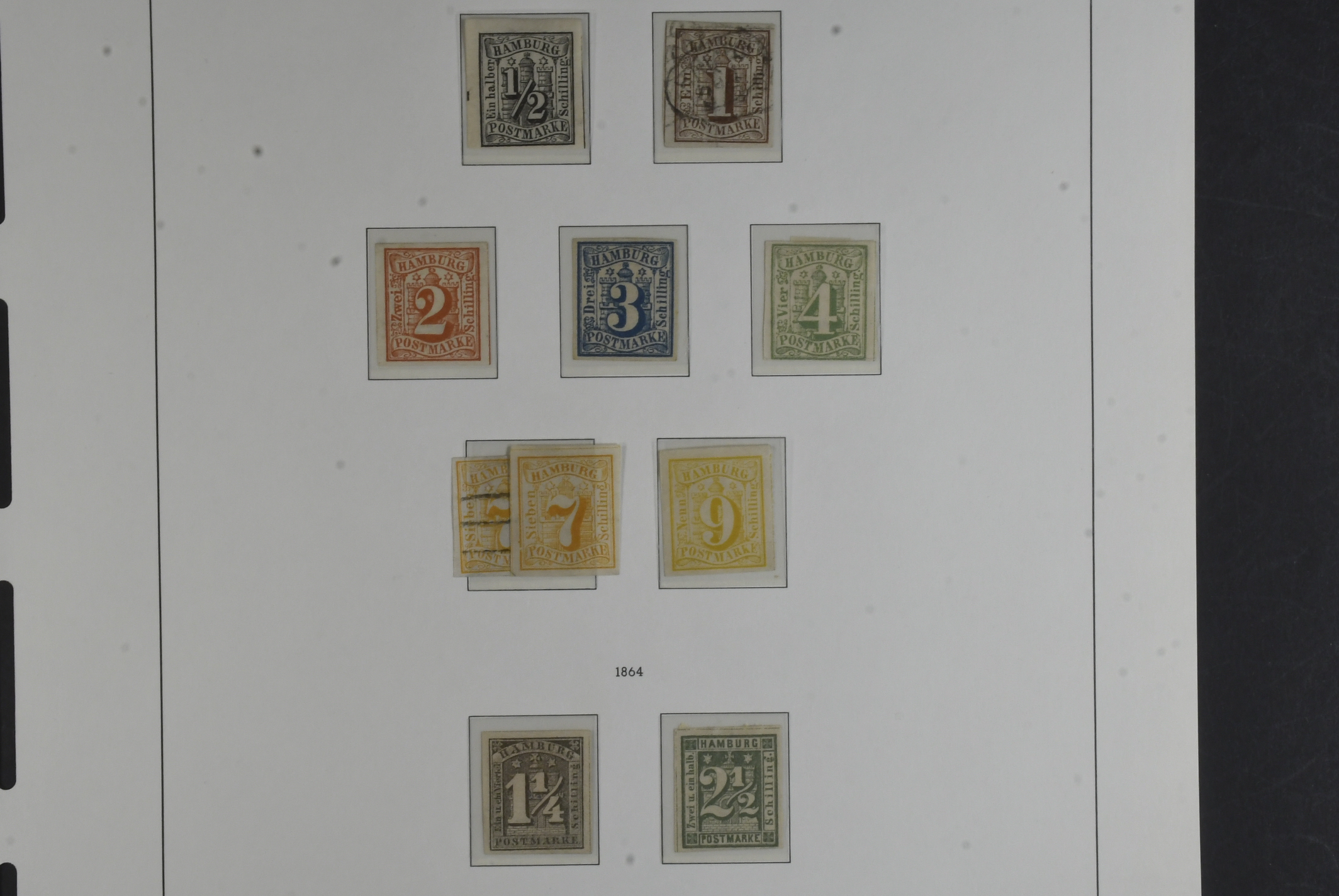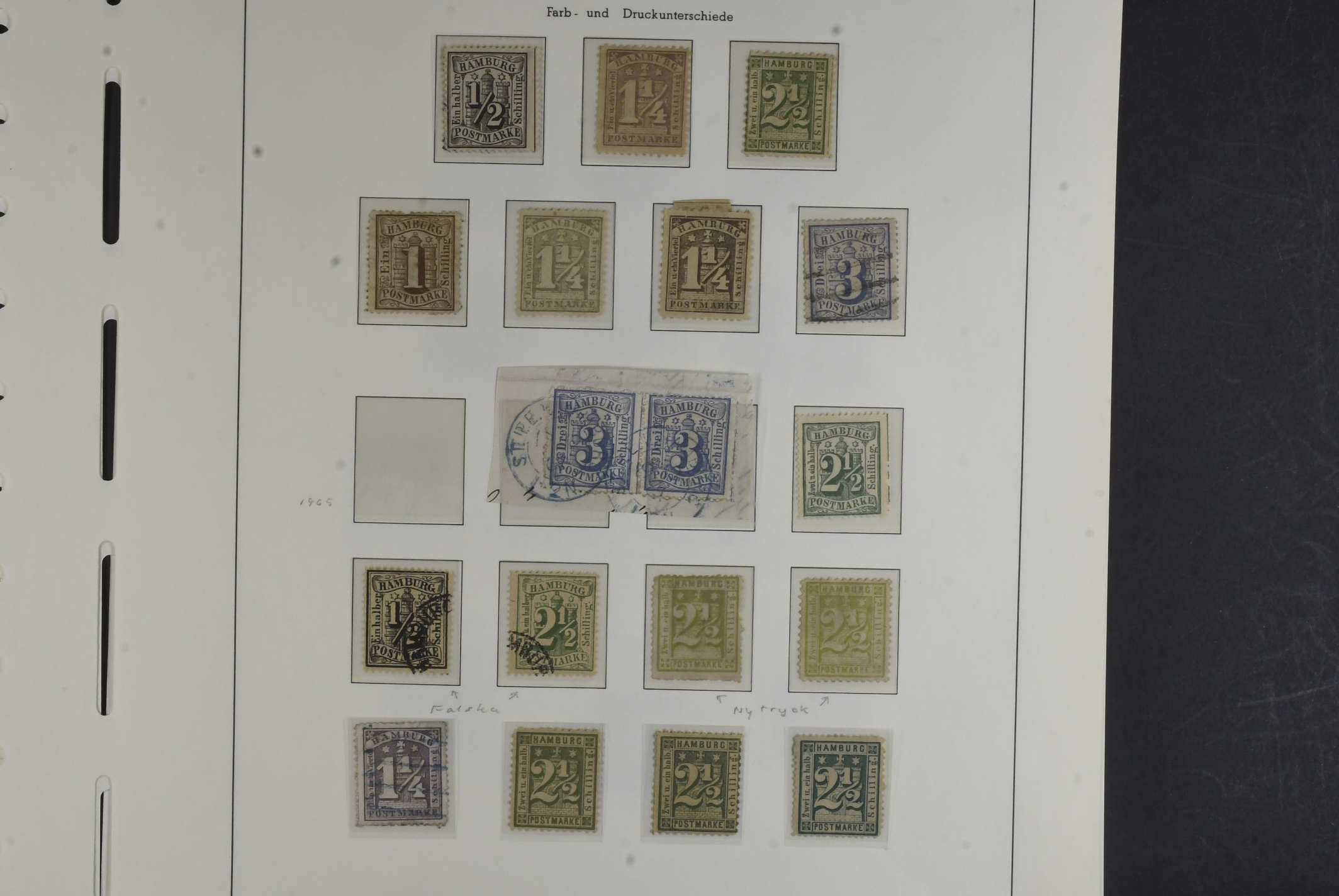 Germany, Hamburg. Collection ★/⊙ 1859–1867 in album. Well filled, incl. shades and reprints. Mostly good quality. (56+)