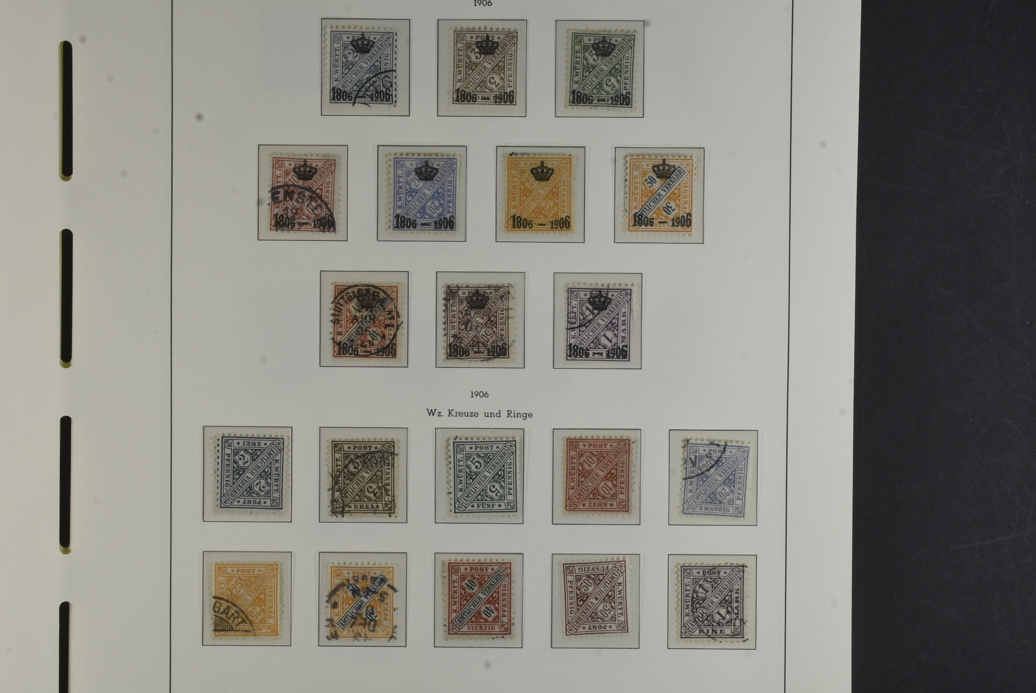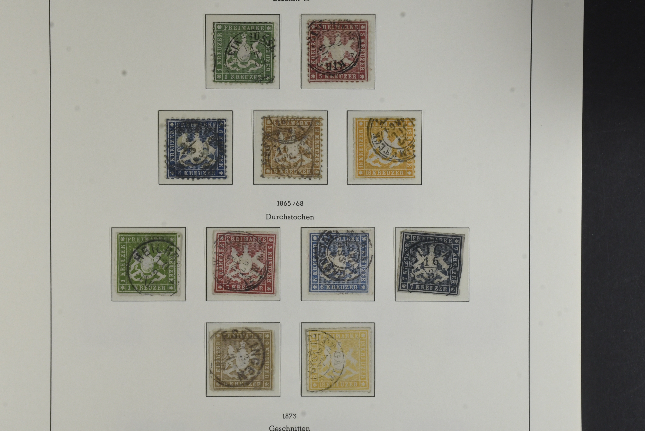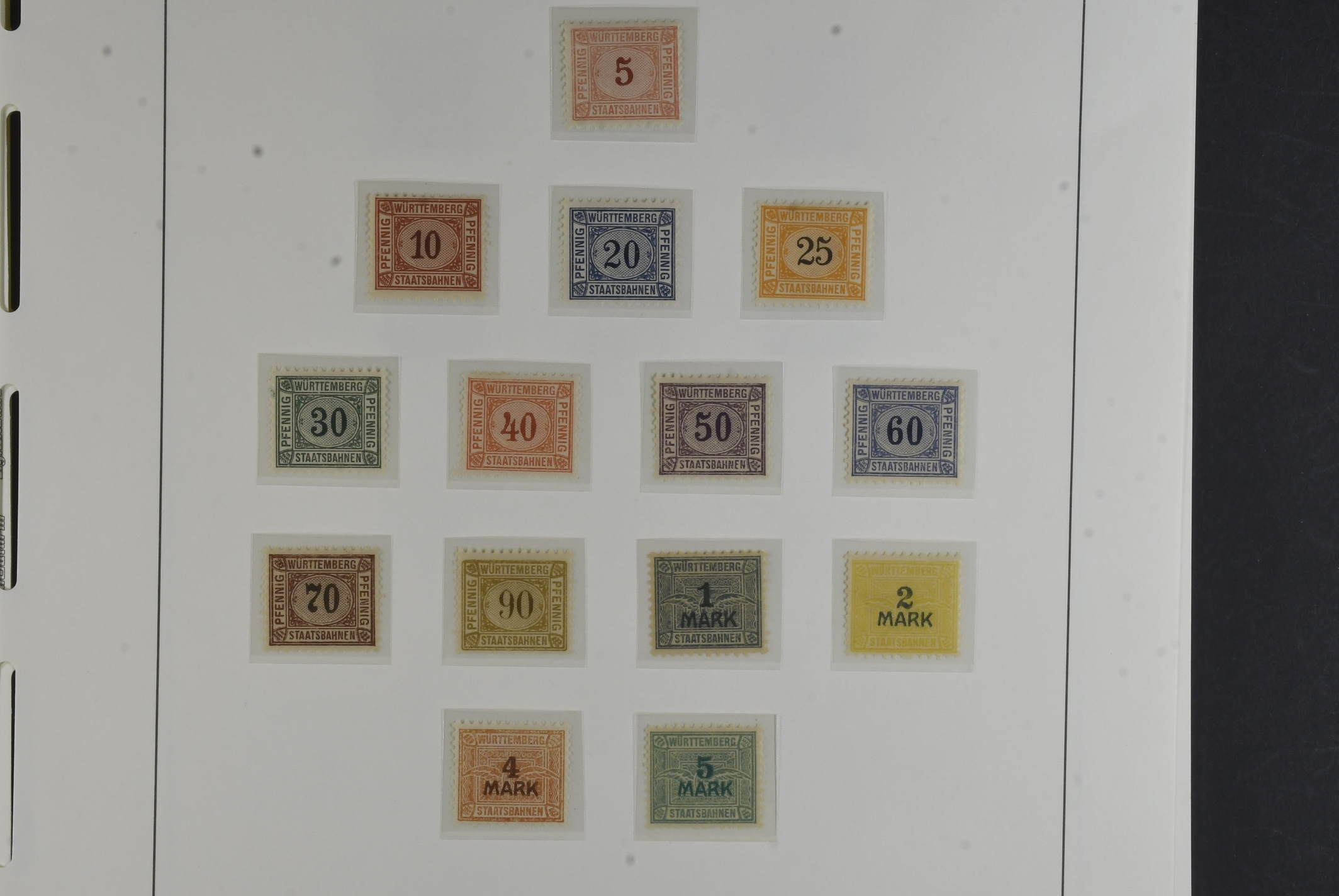 Germany, Württemberg. Collection ★★/★/⊙ 1851–1923 on Lechtturm leaves with stamp mounts. Well filled collection with just a few gaps. Incl. better stamps and sets. Please see a selection of scans at www.philea.se. Mostly good quality. (ca. 300)