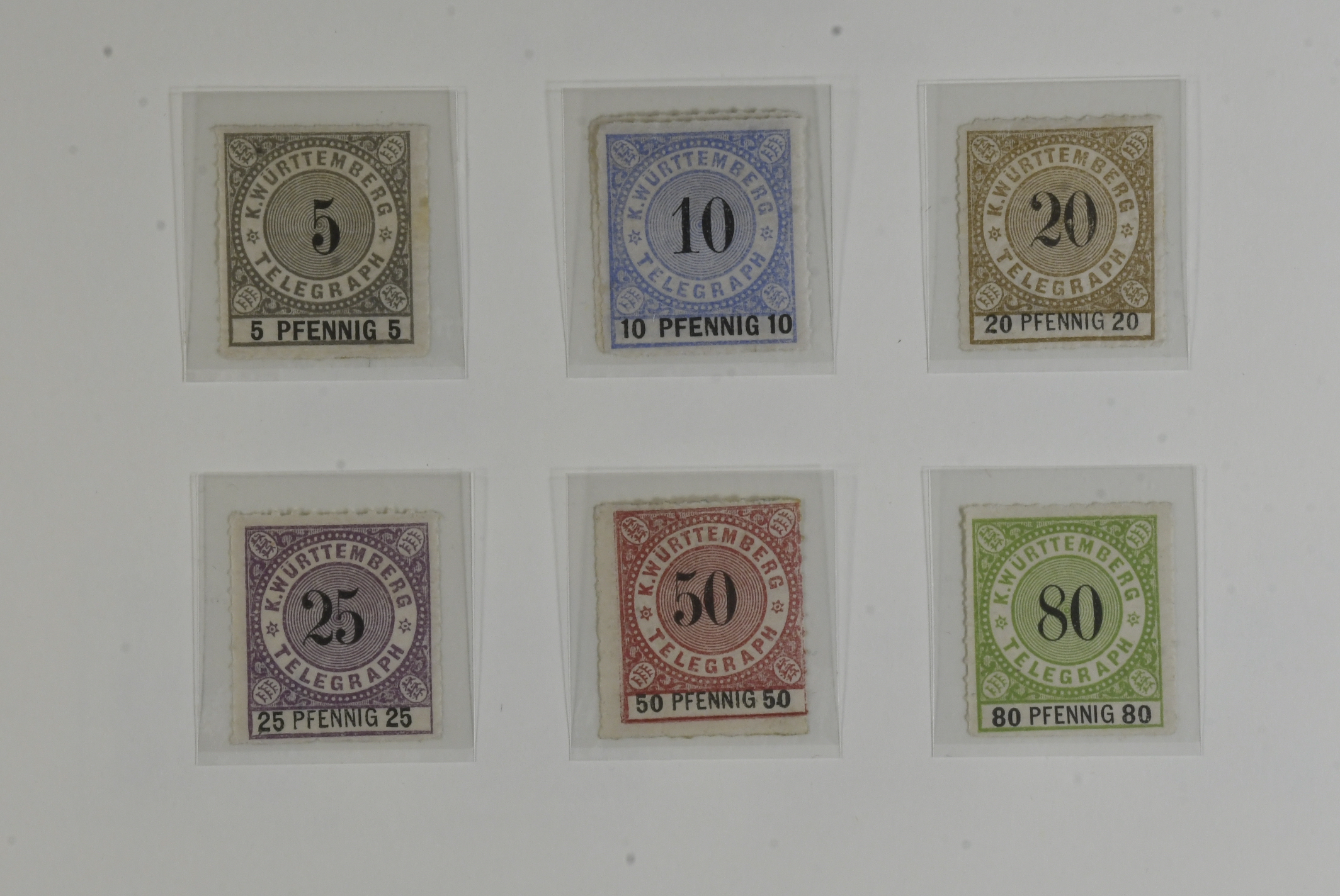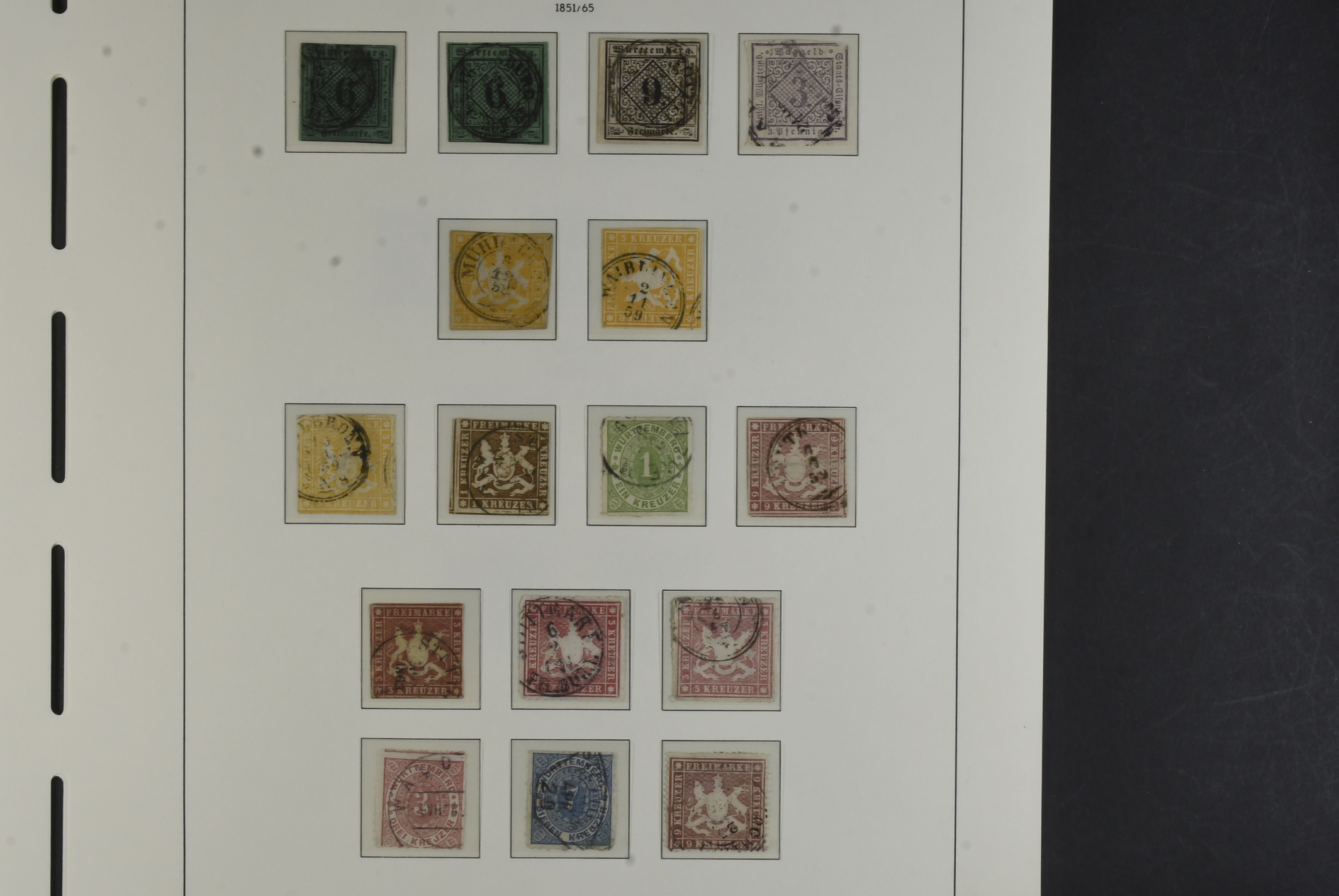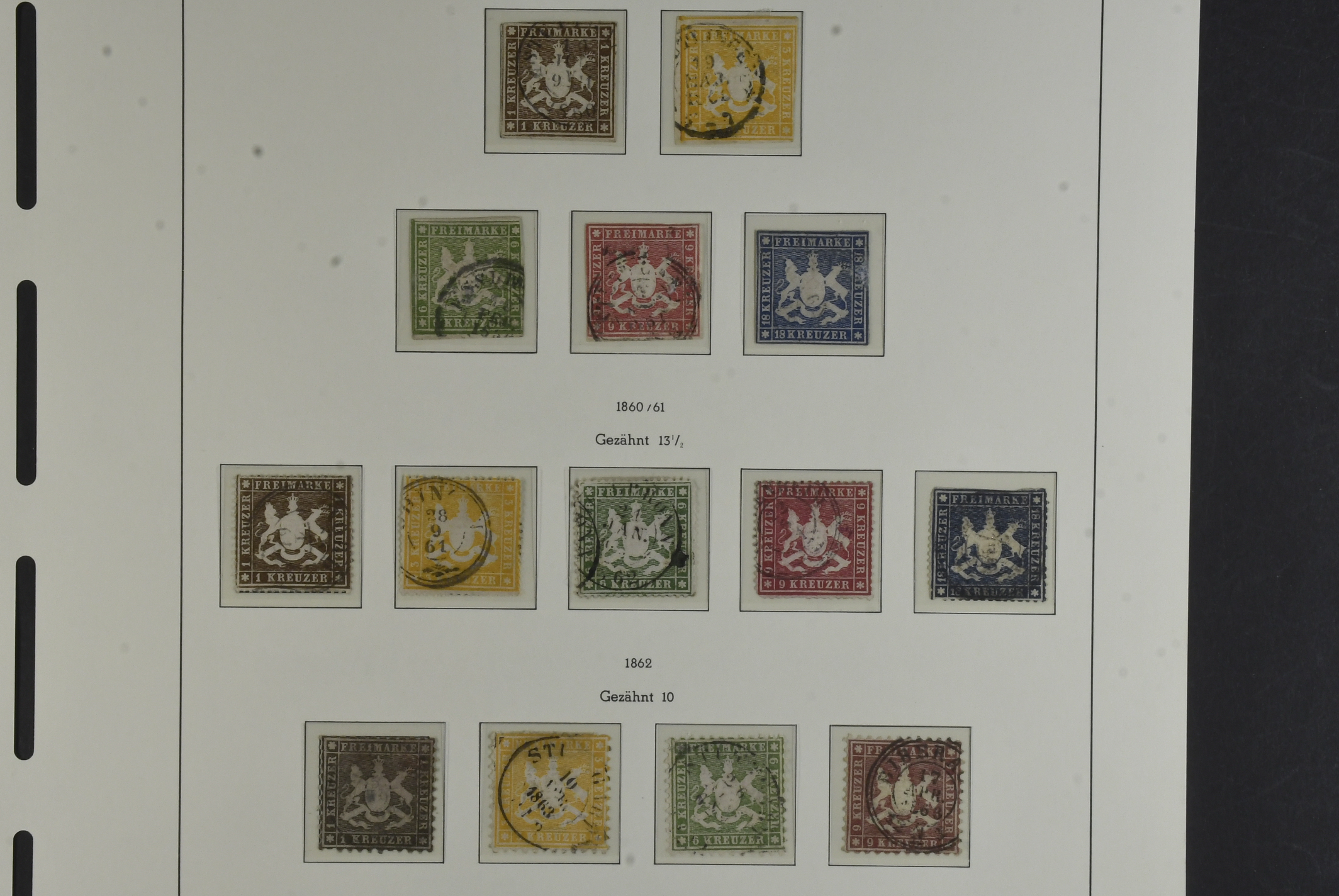 Germany, Württemberg. Collection ★★/★/⊙ 1851–1923 on Lechtturm leaves with stamp mounts. Well filled collection with just a few gaps. Incl. better stamps and sets. Please see a selection of scans at www.philea.se. Mostly good quality. (ca. 300)