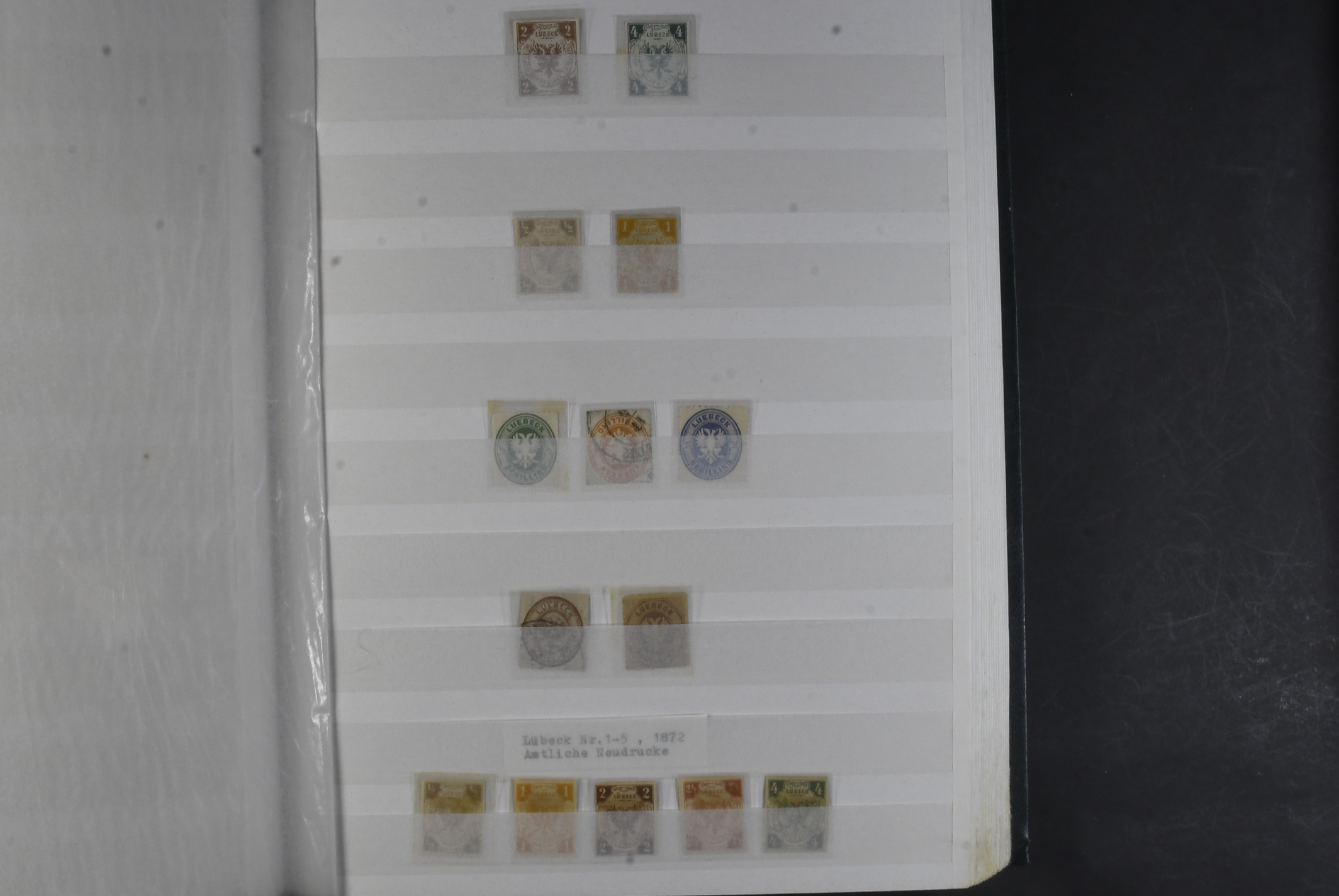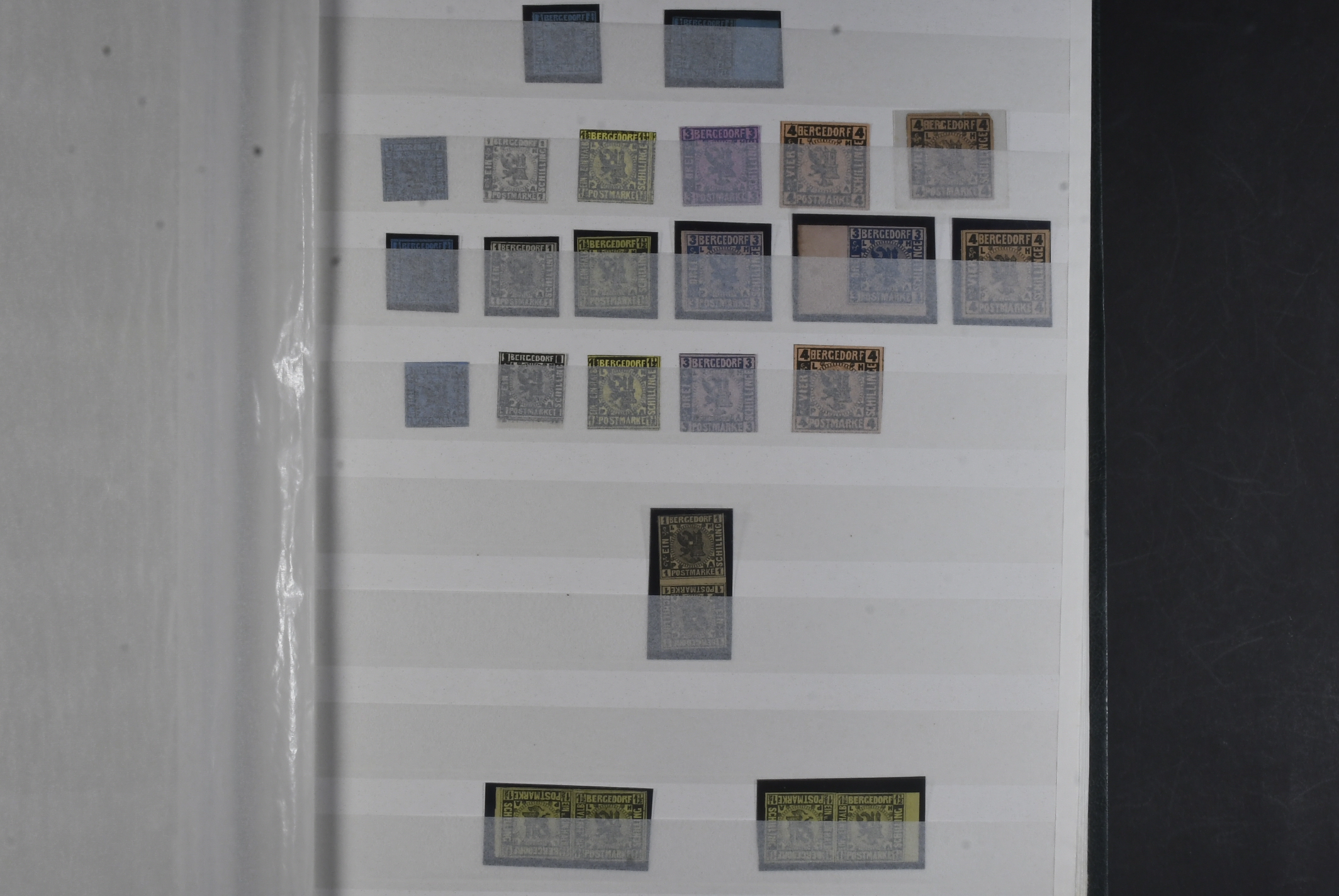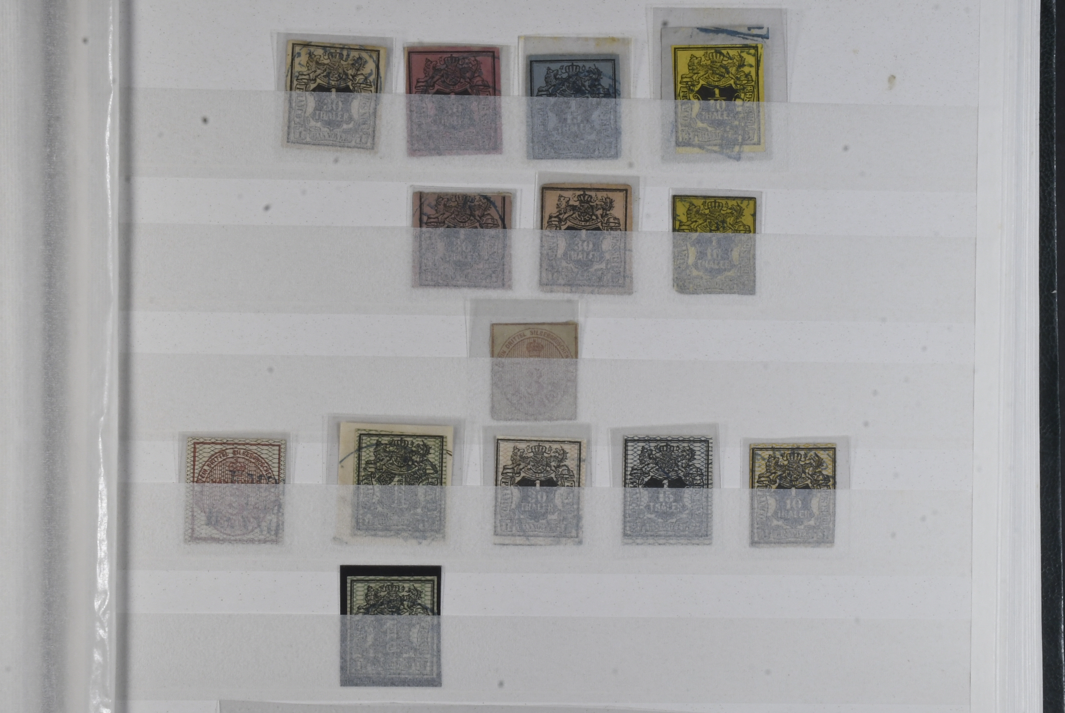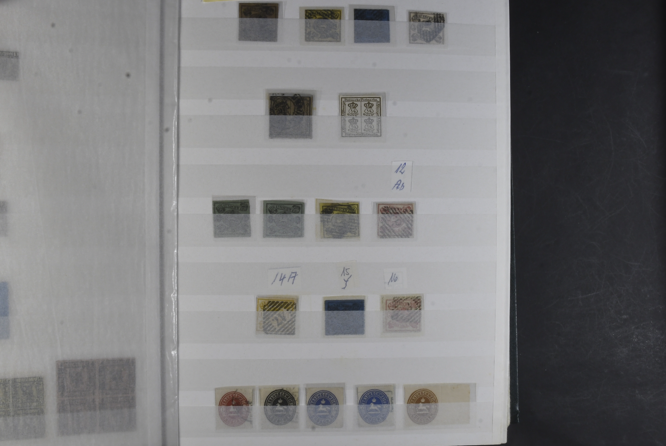 Germany, states. Collection ★★/★/⊙ 1850–1923 in large stockbook. Baden, Braunschweig, Hamburg, Hannover, Helgoland, Oldenburg Prussia and much more. Better stamps, some with signs but also falsaries and new prints. Please see a selection of scans at www.philea.se. Somewhat mixed quality.