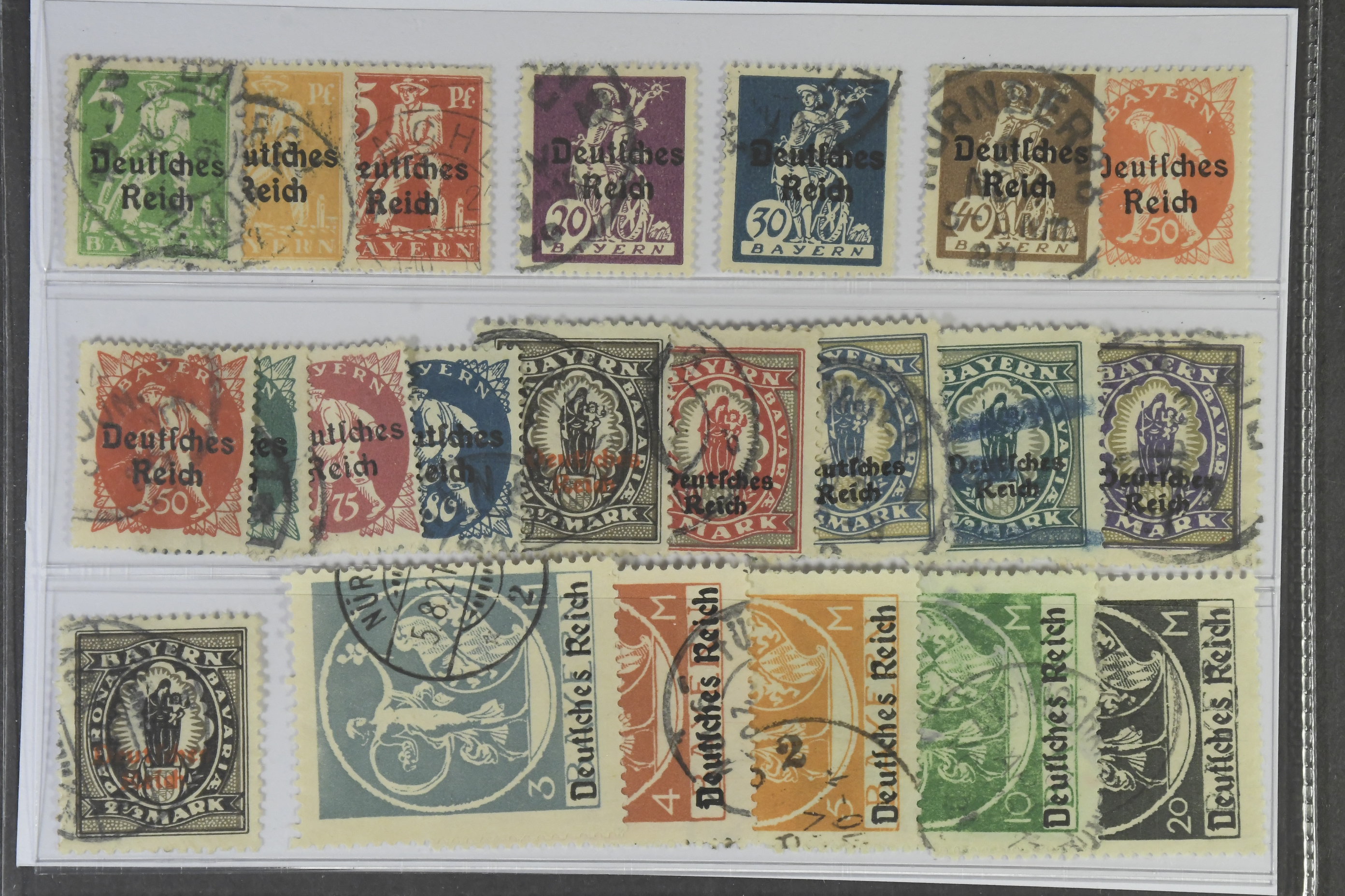 Germany, Reich. Michel 119–38 used, 1920 Overprint on Bavarian stamps SET (21 incl 133 II). EUR 240