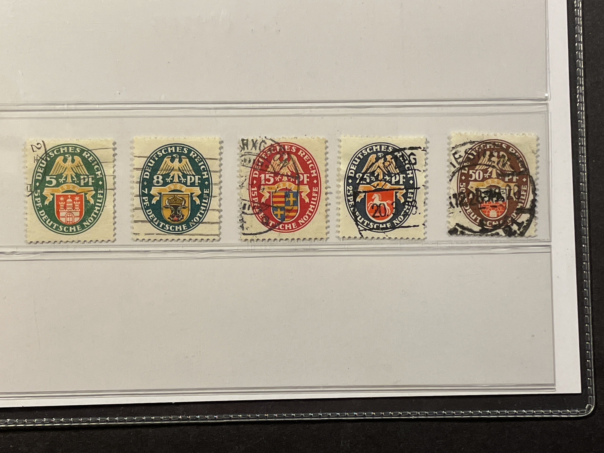 Germany, Reich. Michel 425–29 used, 1928 Charity – Coat-of-Arms III SET (5). EUR 200