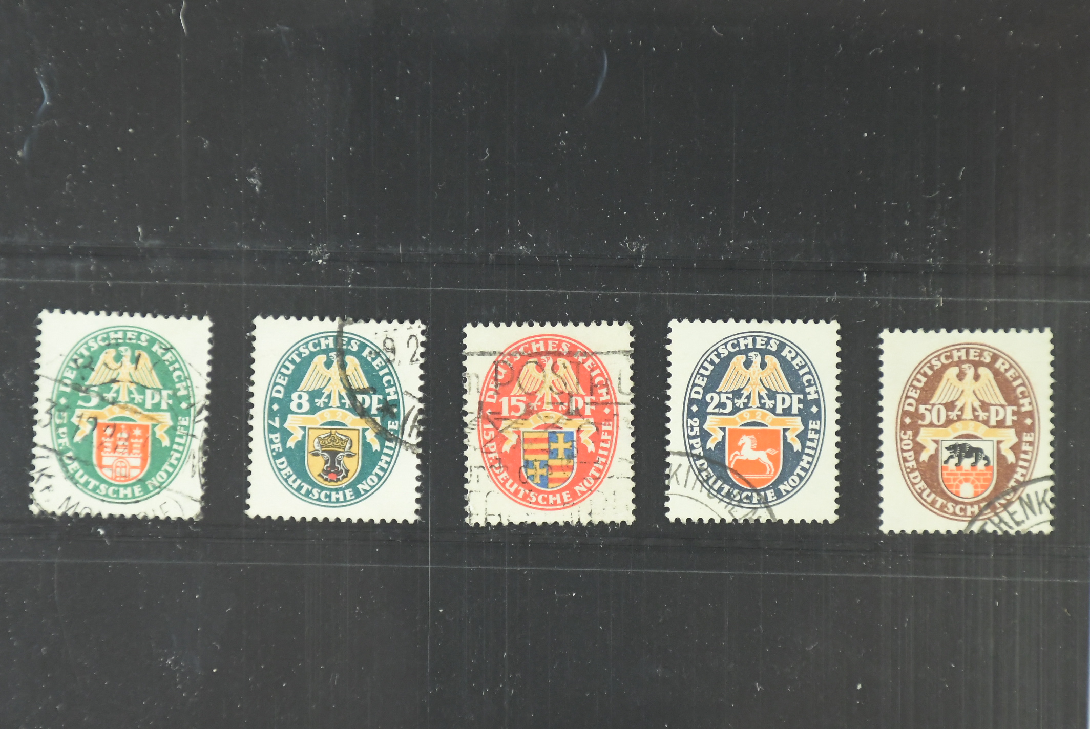Germany, Reich. Michel 425–29 used, 1928 Charity – Coat-of-Arms III SET (5). EUR 200