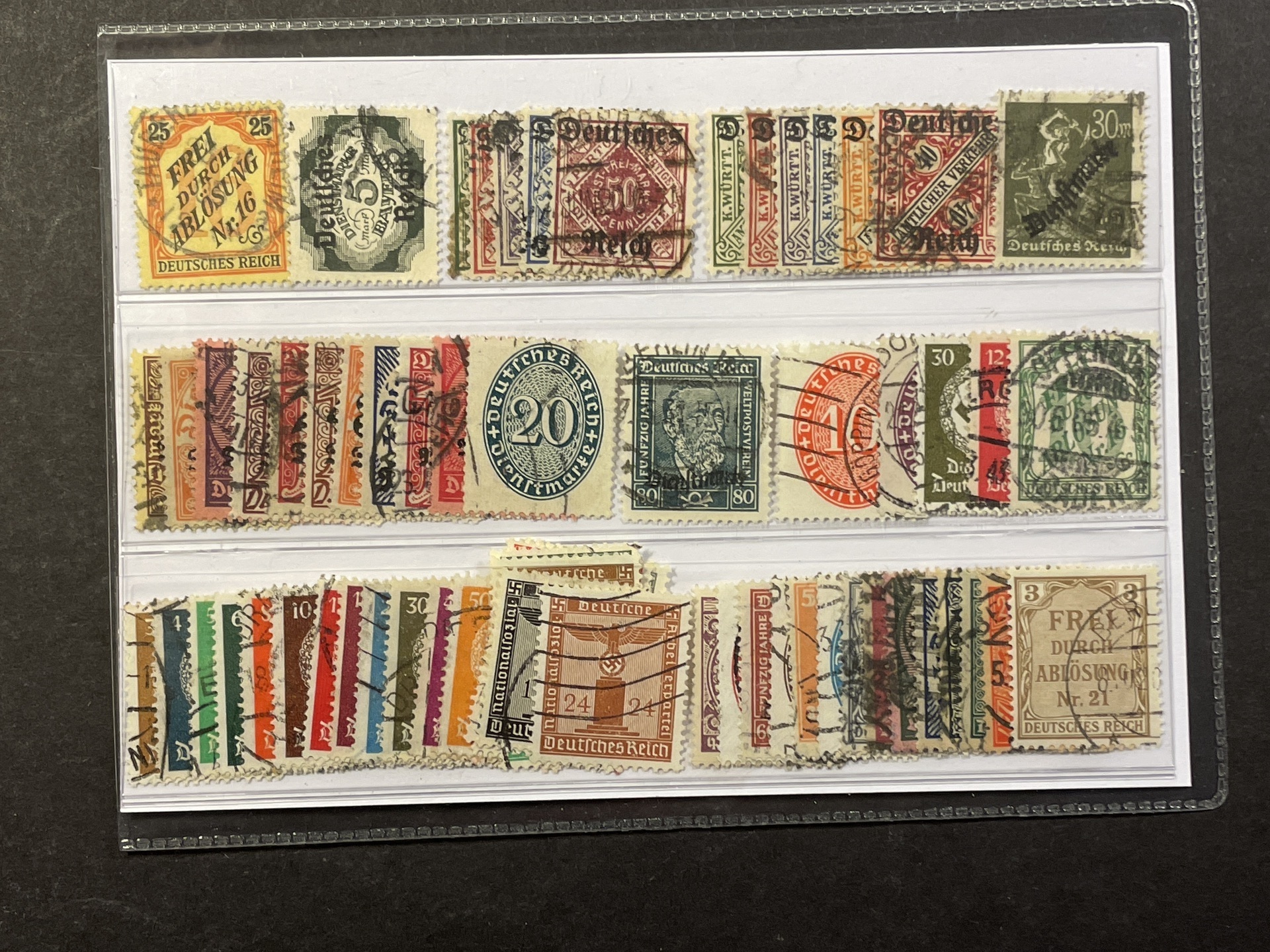 Germany, Reich. Used 1903–1944. Offials. All different, e.g. Mi 14, 51–64, 76 (gepruft), 89–98, 113, 119y, 121, 123, 132–60, 163. Mostly good quality. Mi € 835 (Ca. 50)