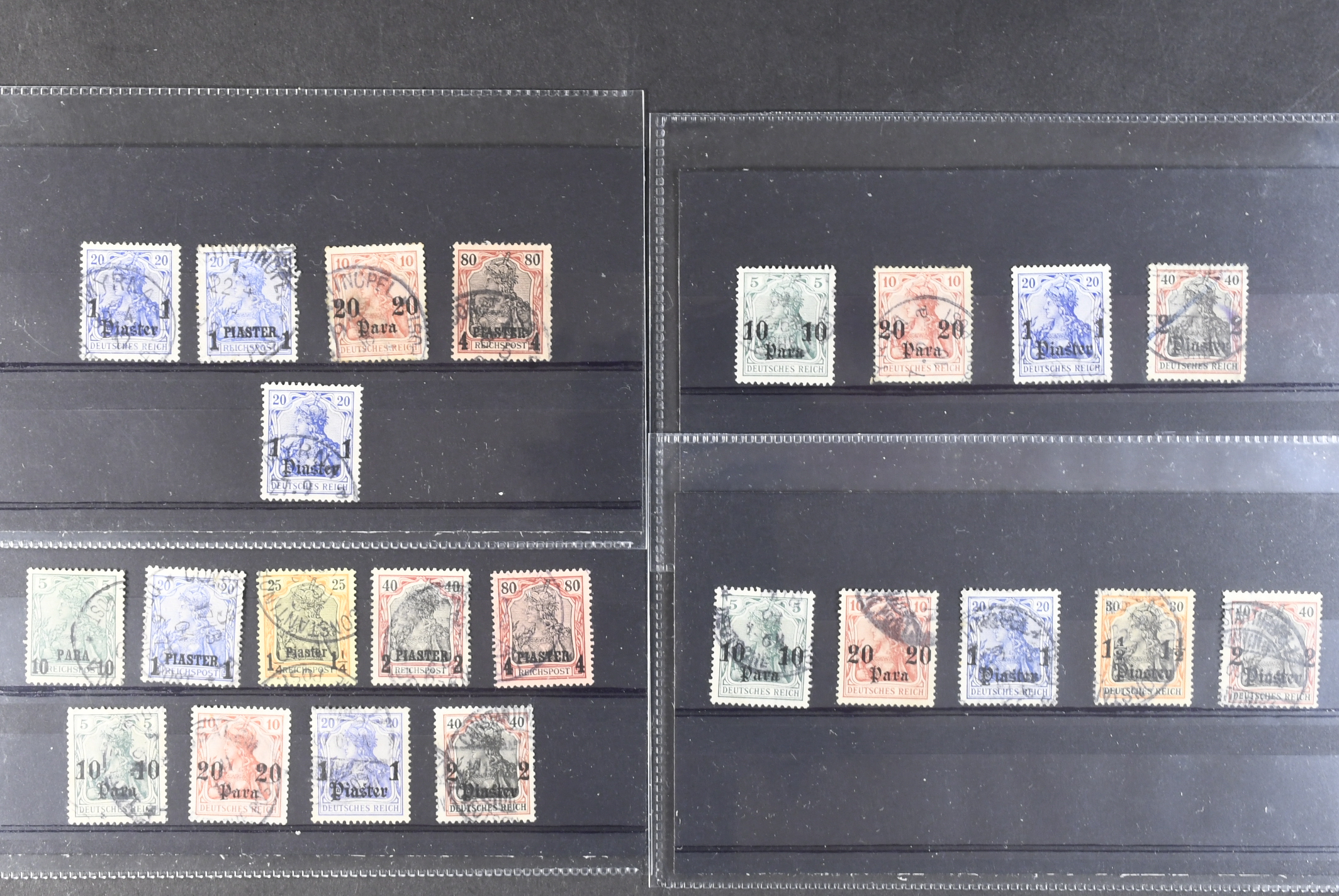 Germany, post in Turkey. ★★/★/⊙ on 20 cards. Very attractive range of Kaiser's Yachts & earlier Eagle and Shield Issues, including high values mint and used, occasionally MNH when you would least expect it. All the used are postal cancels. Great lot, completely uncatalogued, please inspect. The entire lot is presented at www.philea.se.