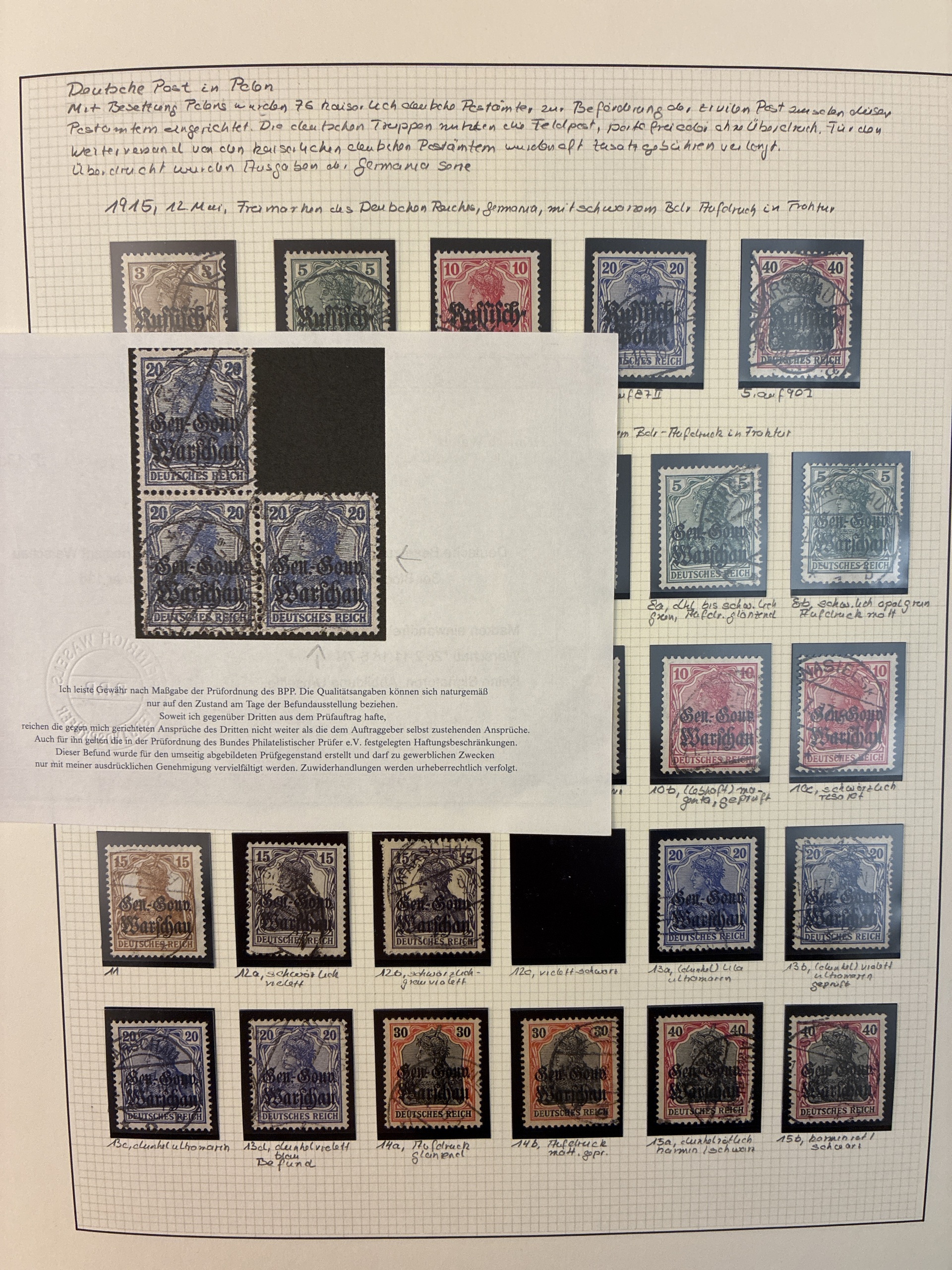 German occupation during WW2. Collection used 1914–1920 in album. Nice collection occupied areas WW1, some certificates. Please see a selection of scans at www.philea.se. Mostly fine quality. (ca. 500)