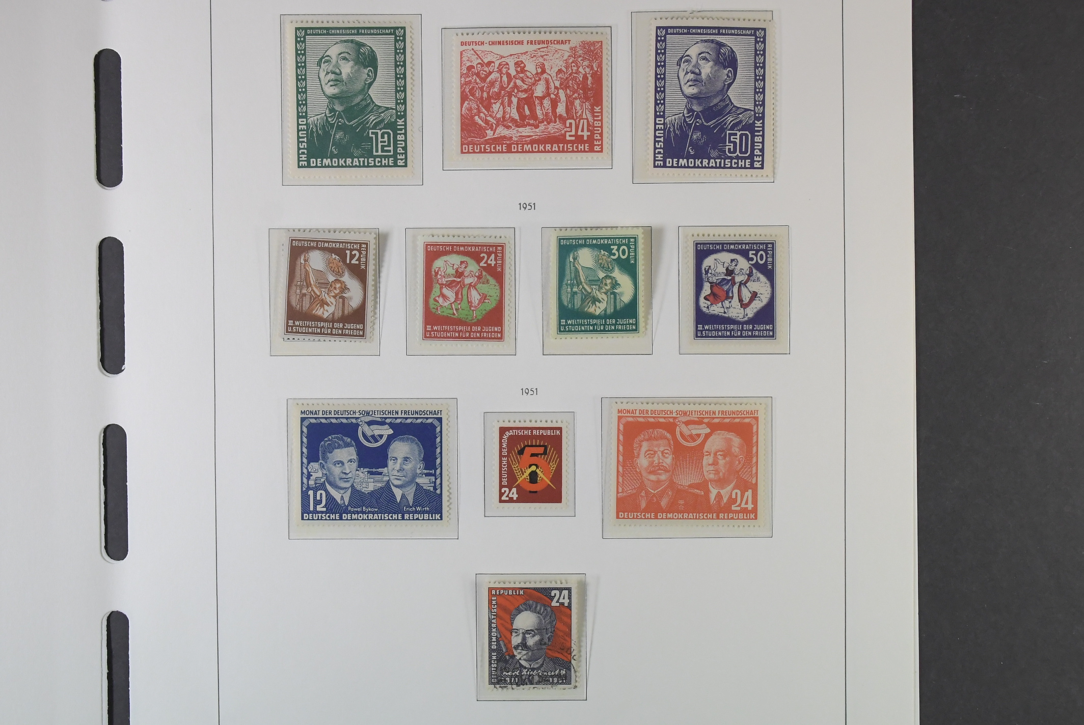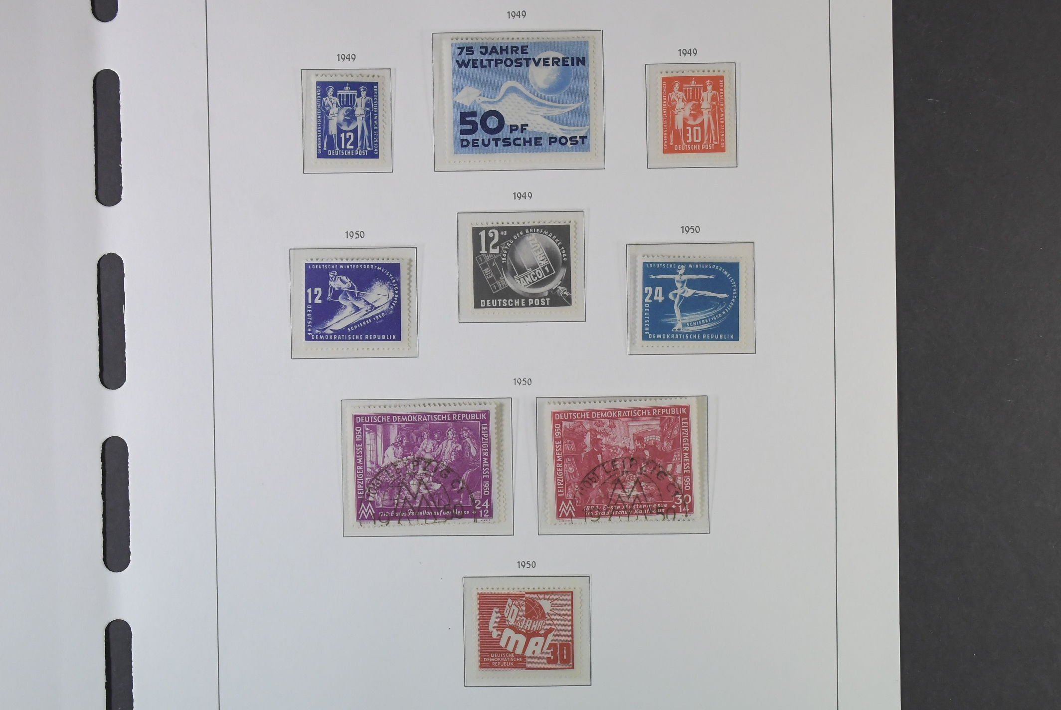Germany, GDR (DDR). Collection ★★/⊙ 1949–1958 on leaves with stamp mounts. Complete but a bit mixed ** and used. Please see a selection of scans at www.philea.se. Mostly good quality. (650)