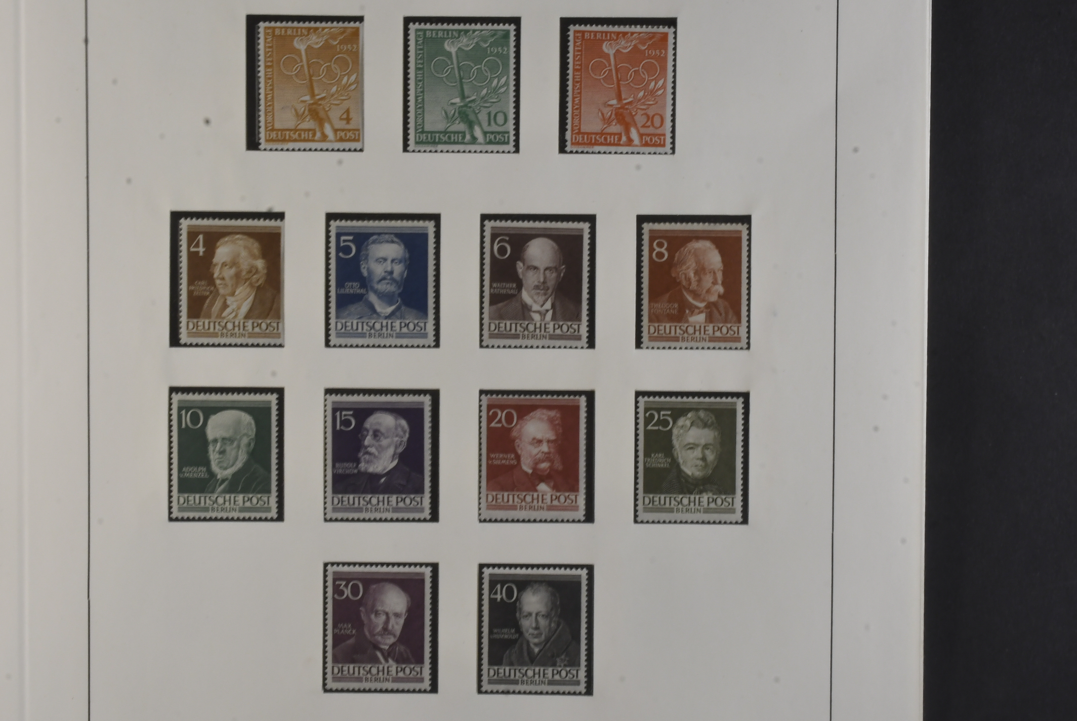 Germany, Berlin. Collection mostly ★★ 1948–1959 on SAFE leaves with stamp mounts. Only a few stamps missing. Fine quality.